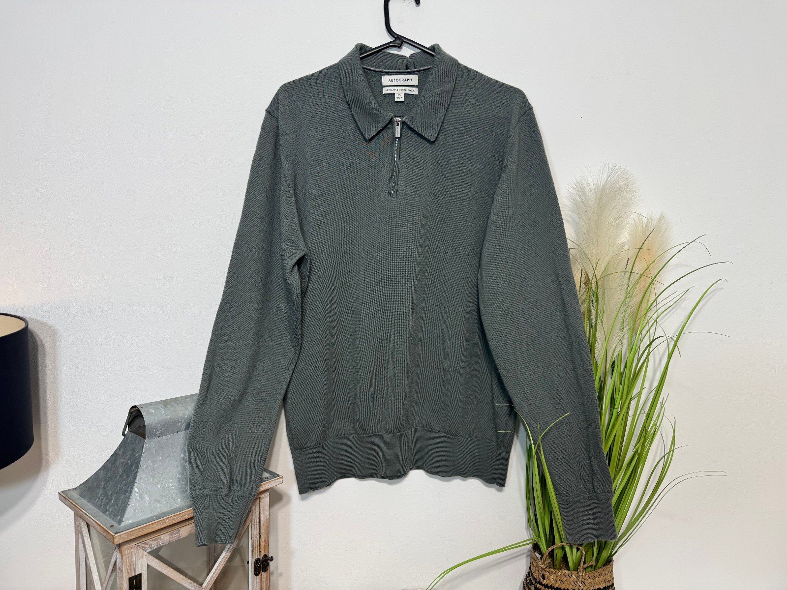 Autograph Sage 1/4 Zip Extra Fine Merion Wool Jumper Size XL