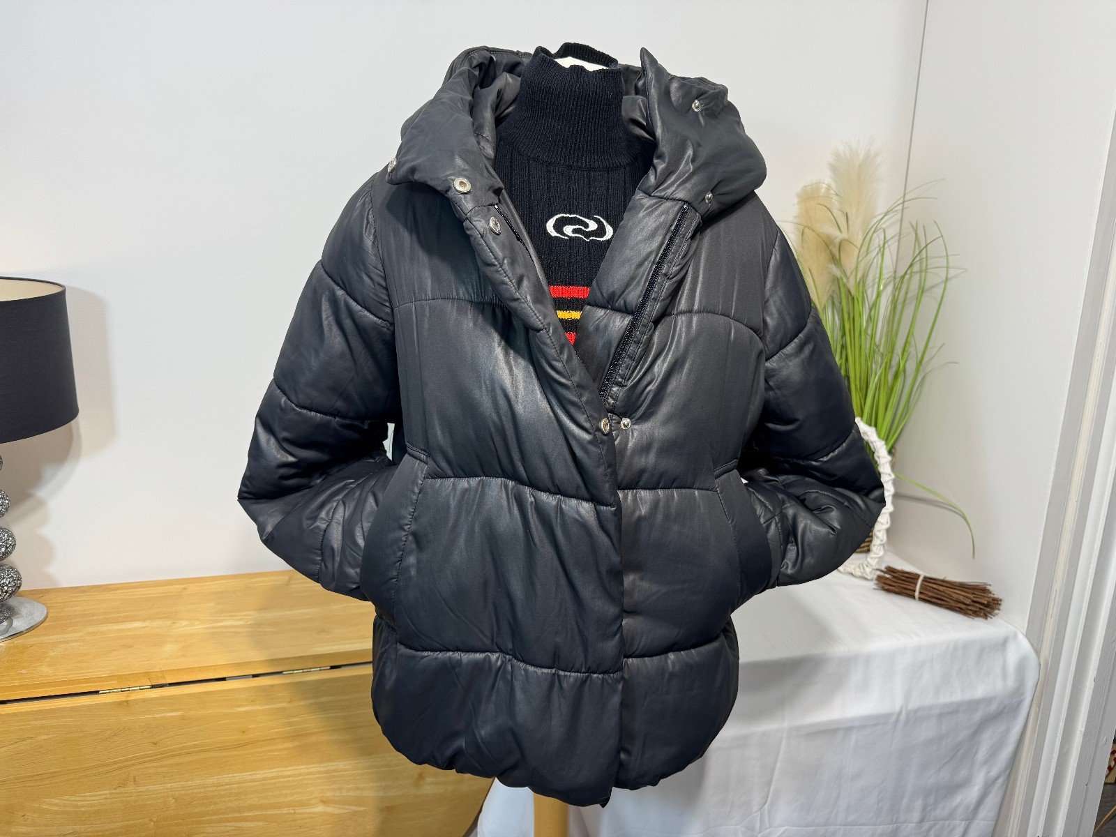 Steve Madden Black Puffer Jacket Hood Pockets Zip/popper Close Size L