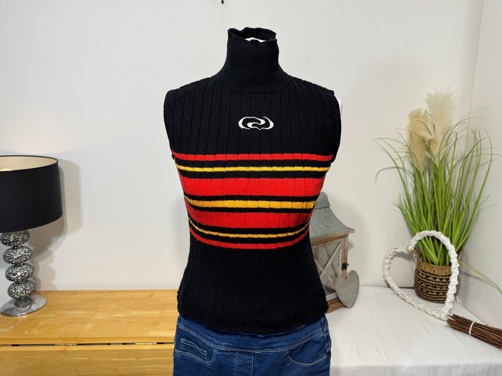 Resume Black Embossed Logo Ribbed High Neck Tank Top Size S