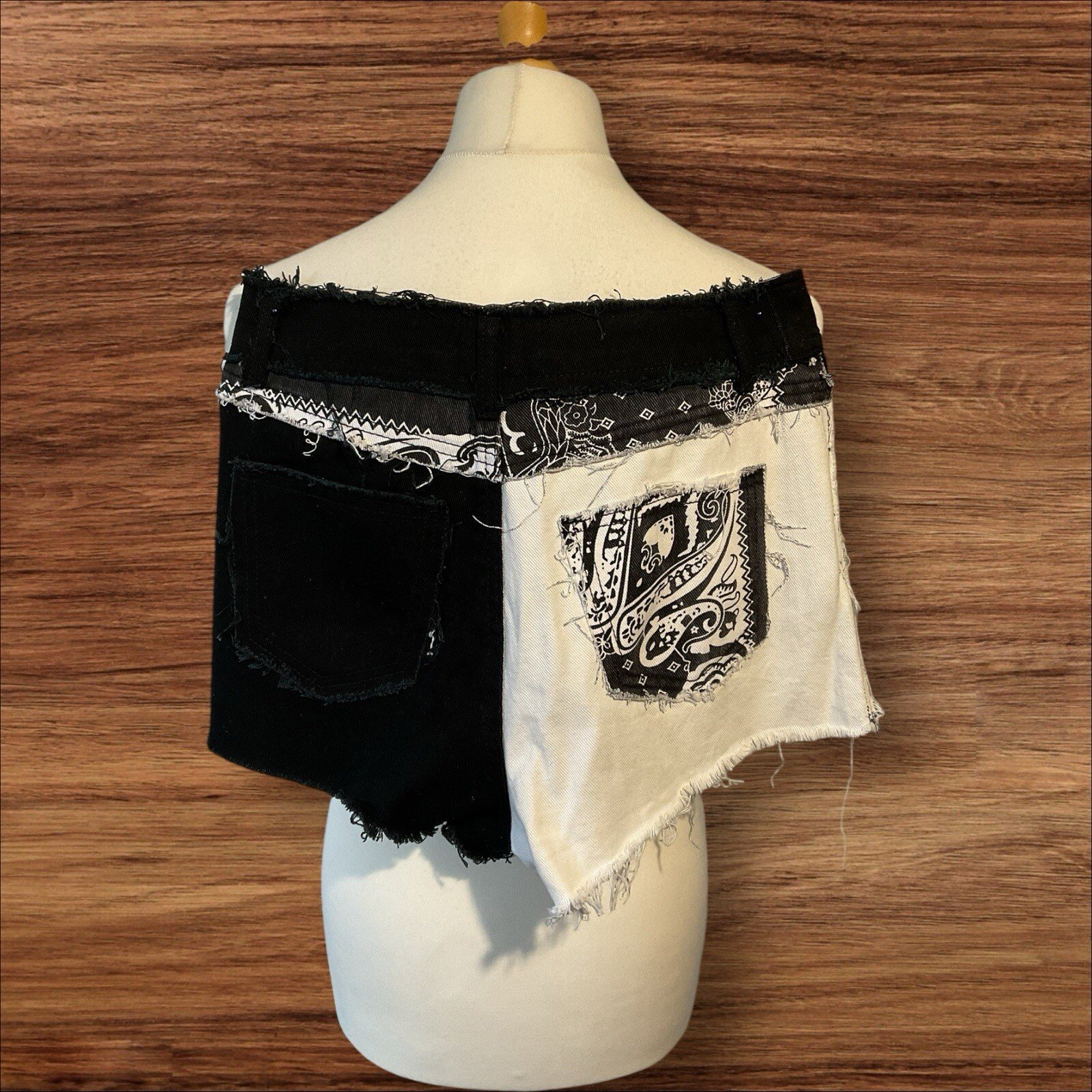 Add a touch of style to your wardrobe with these black and white cut-off shorts from Shein. Featuring a zip and button closure, these shorts are perfect for any occasion. The high-rise waist provides a comfortable fit for all-day wear. Made from a blend of polyester and cotton, these shorts are lightweight and breathable. The cut-off style adds a trendy touch to your outfit. The shorts are available in size S with a waist size of 30 inches. The black and white colour combination is versatile and can be paired with any top. From a smoke and pet free home