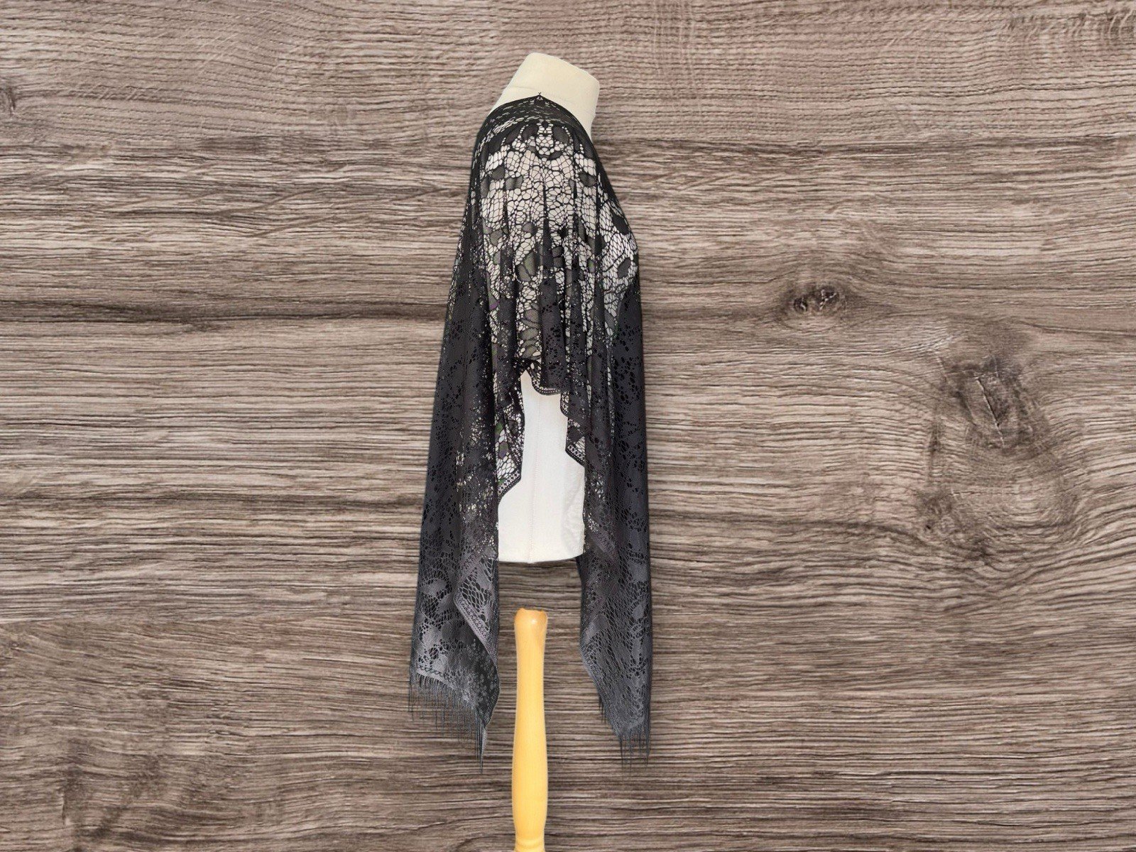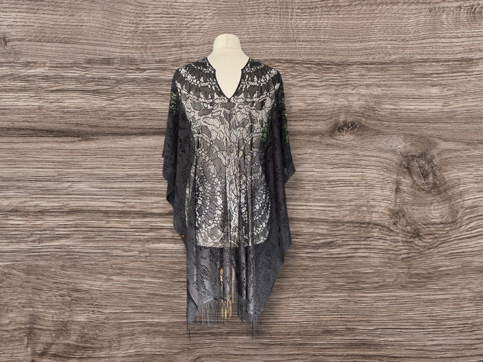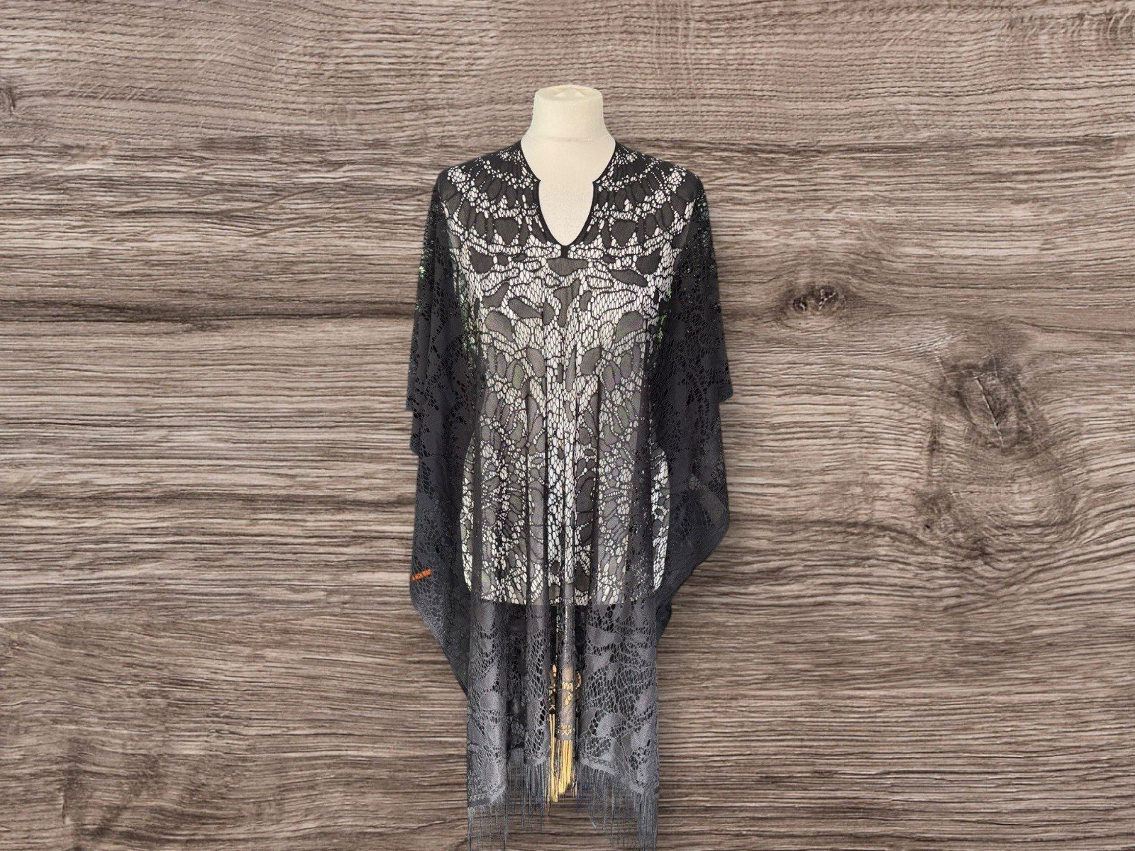 Elevate your beach day ensemble with this chic Black Lace Effect Beach Cover Up. Designed with a one-size-fits-all approach, this garment is a versatile addition to any summer wardrobe. Its delicate lace accents and tassel bottom detail add a touch of elegance to your swimwear, ensuring you look effortlessly stylish as you soak up the sun.The cover up features an open-sided design, allowing for ease of movement and a breezy feel. Ideal for those warm, sunny days, it's a must-have for any woman who wants to make a subtle yet sophisticated statement at the beach or by the pool.