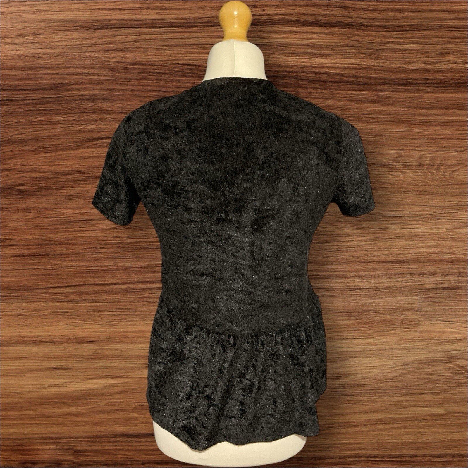 This black velour top from Pep&Co is a stylish addition to any wardrobe. Featuring short sleeves and a round neckline, it is perfect for any casual occasion. The frill hem adds a touch of femininity to the blouse, making it suitable for any woman who wants to feel stylish and confident. Made from polyester, this top is soft and comfortable to wear. The velour fabric type adds a luxurious touch, while the black colour is versatile and easy to match with other clothes. This top is suitable for women who wear size 8 and want a regular fit. Get ready to feel confident and stylish in this lovely black velour top. Excellent condition From a smoke and let free home
