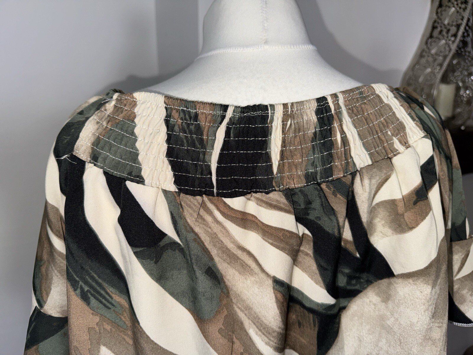 This beautiful green blouse with an elastic neckline and bell sleeves is a must-have for any fashion-forward woman. The blouse features a charming frill design, adding a touch of femininity to the overall look. It is made of high-quality polyester material, ensuring comfort and durability. The blouse is perfect for any casual occasion and can be paired with jeans or shorts. It is available in size 12, making it an ideal fit for women of all sizes. The character Belle is portrayed in this blouse, making it a perfect addition to any wardrobe.