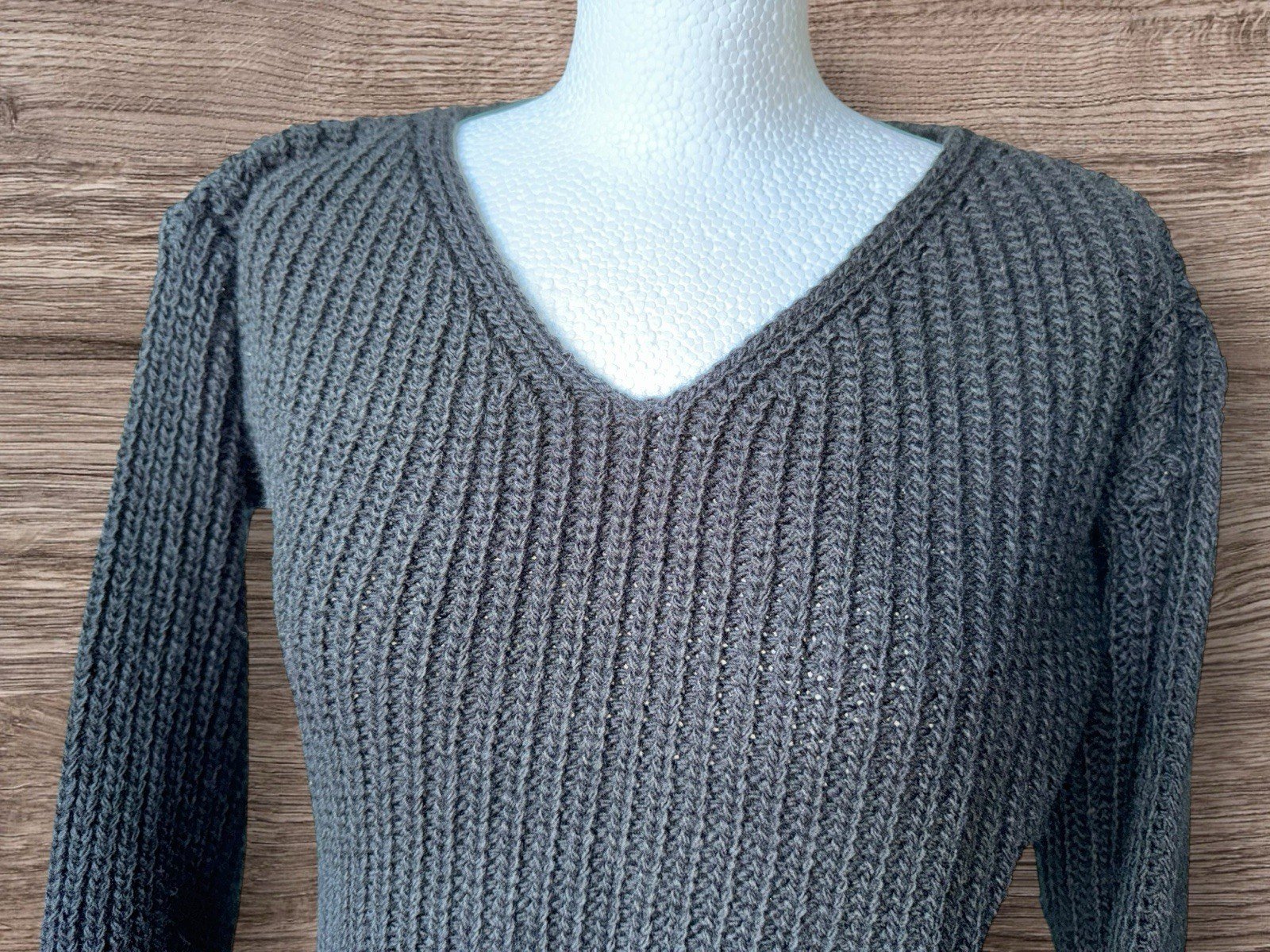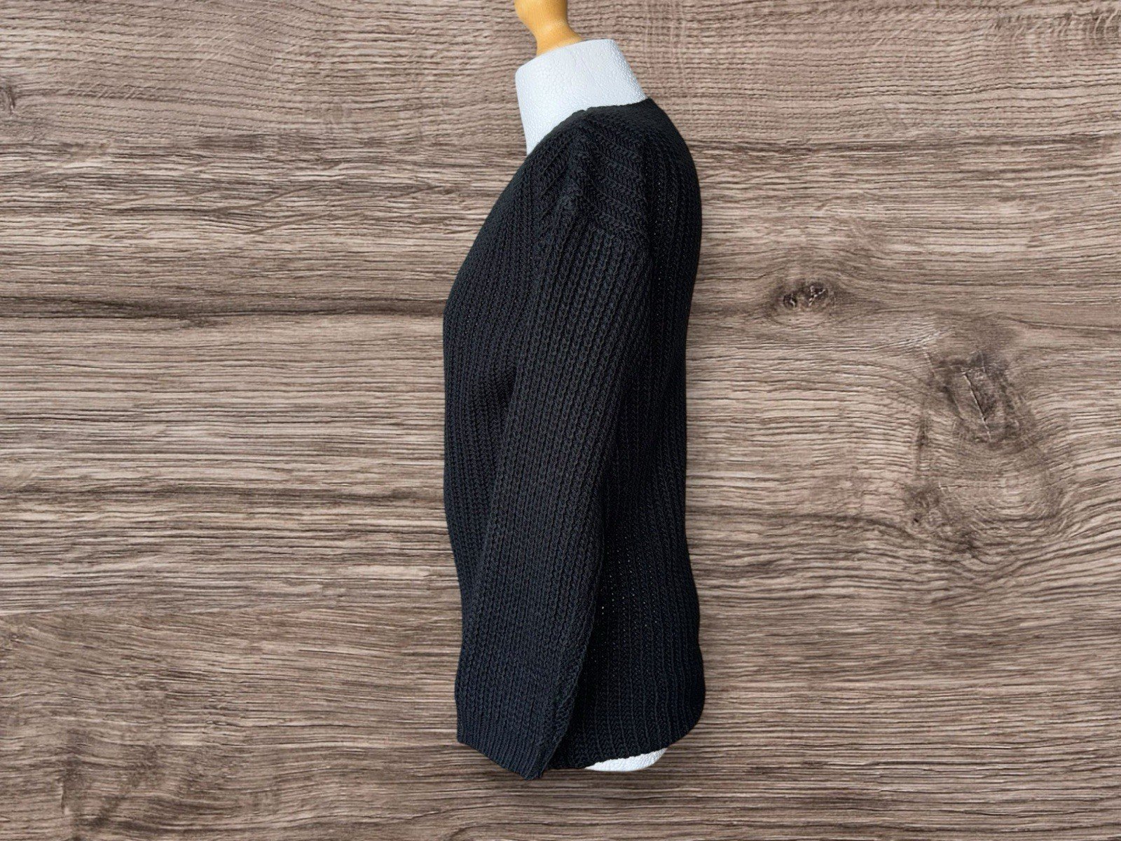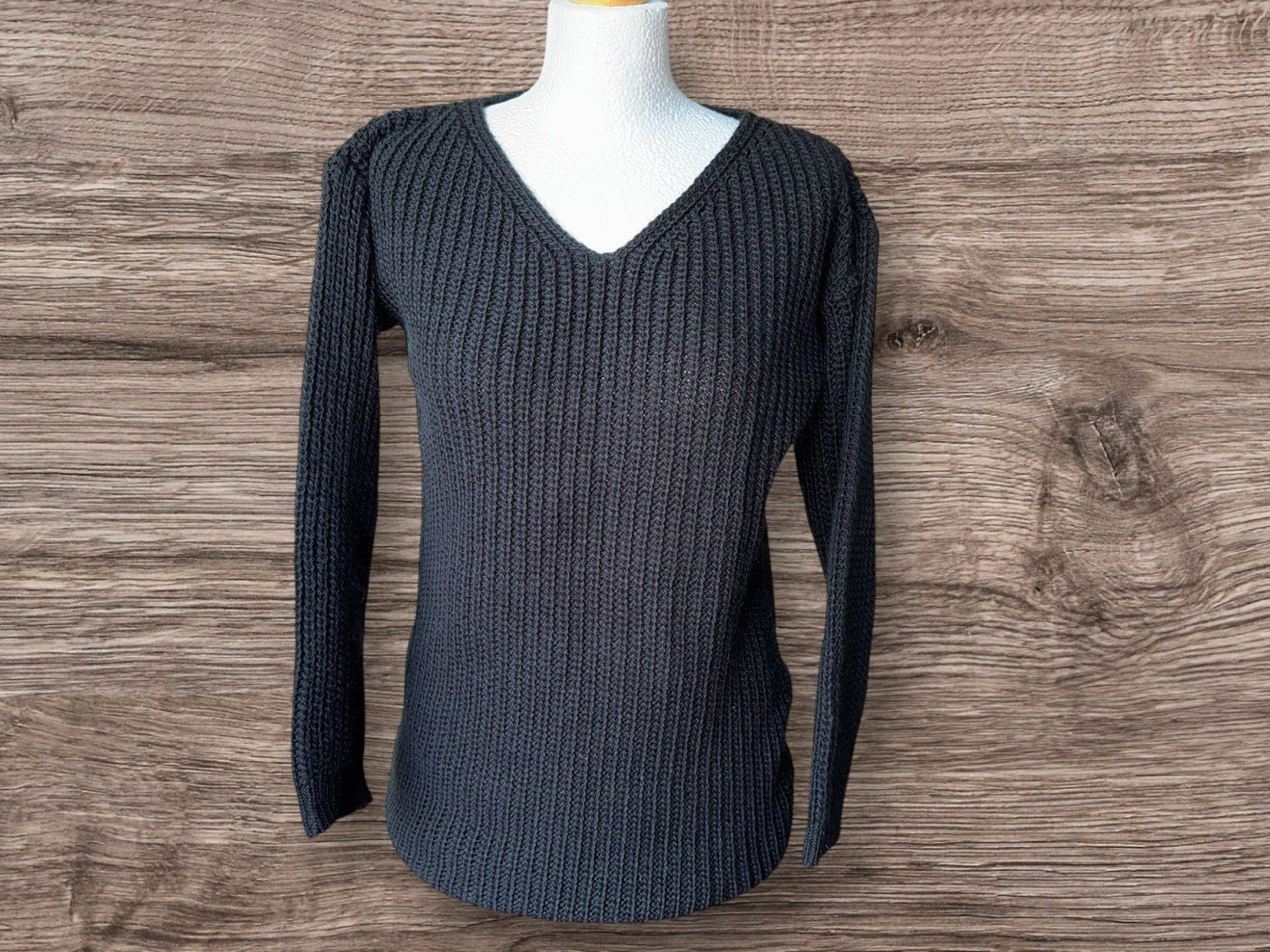 Pit-pit 20in. Length 30inThis Boohoo black chunky knit V-neck jumper in size 4 is a stylish and versatile addition to any woman's wardrobe. Made from acrylic material, this pullover jumper features a trendy chunky knit style that adds a touch of texture and warmth to any outfit. The V-neck neckline adds a touch of sophistication, making it perfect for both casual and more formal occasions. In classic black, this jumper is easy to pair with jeans, trousers, or skirts, making it a must-have staple for any fashion-conscious woman.
