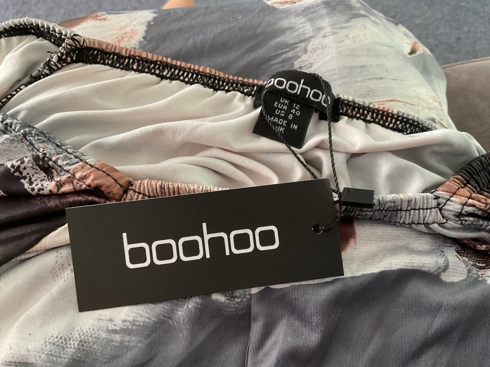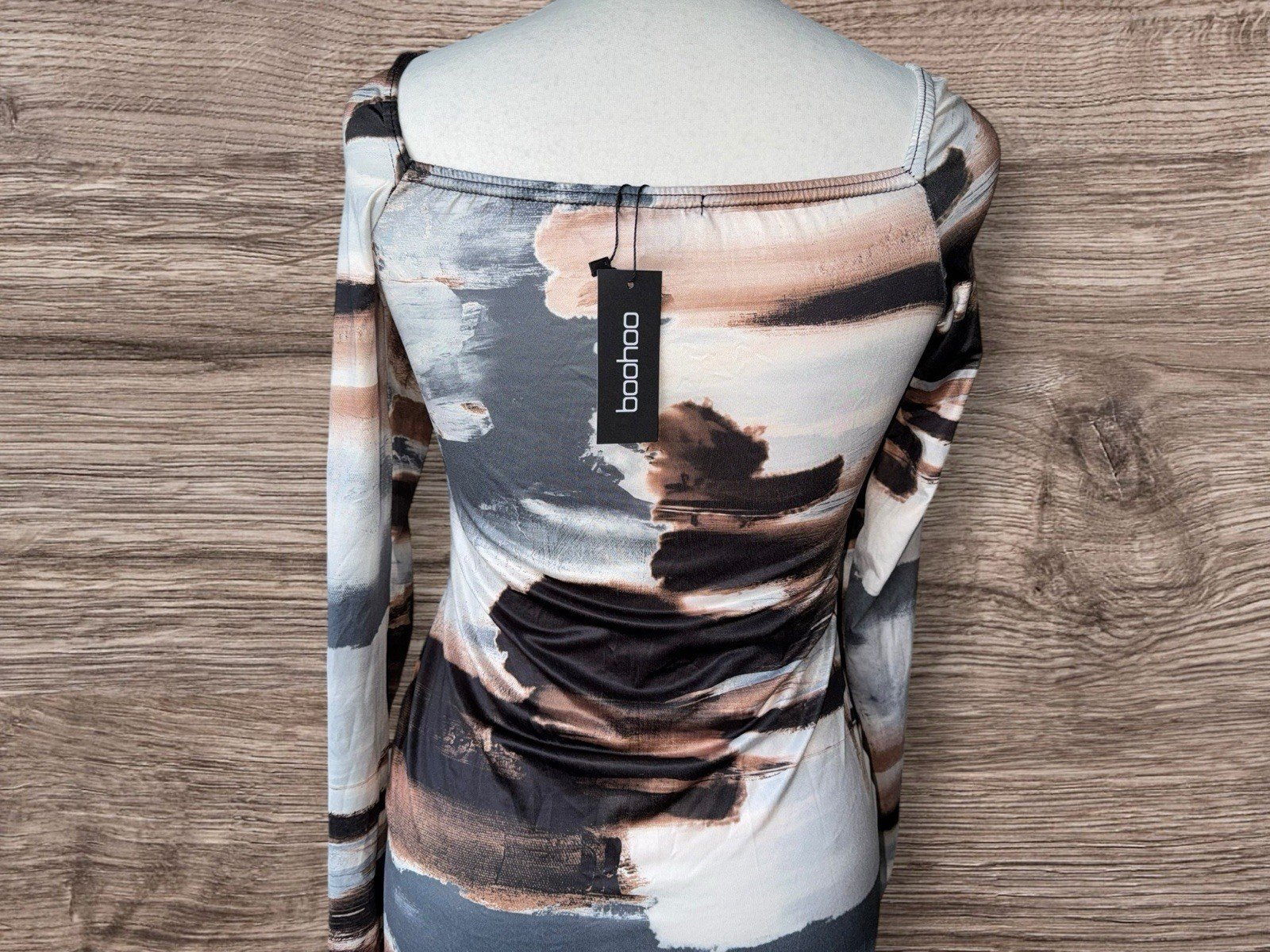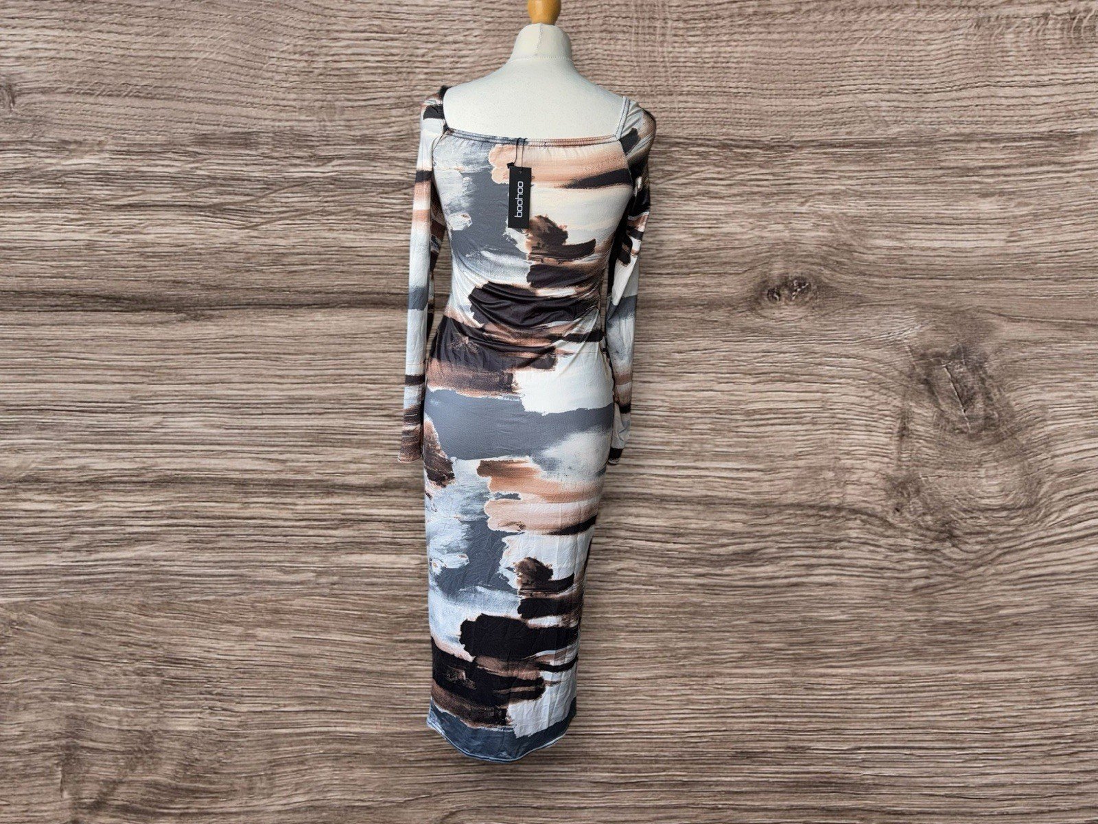 Boohoo Cold Shoulder Patterned Stretch Midi Dress Size 12