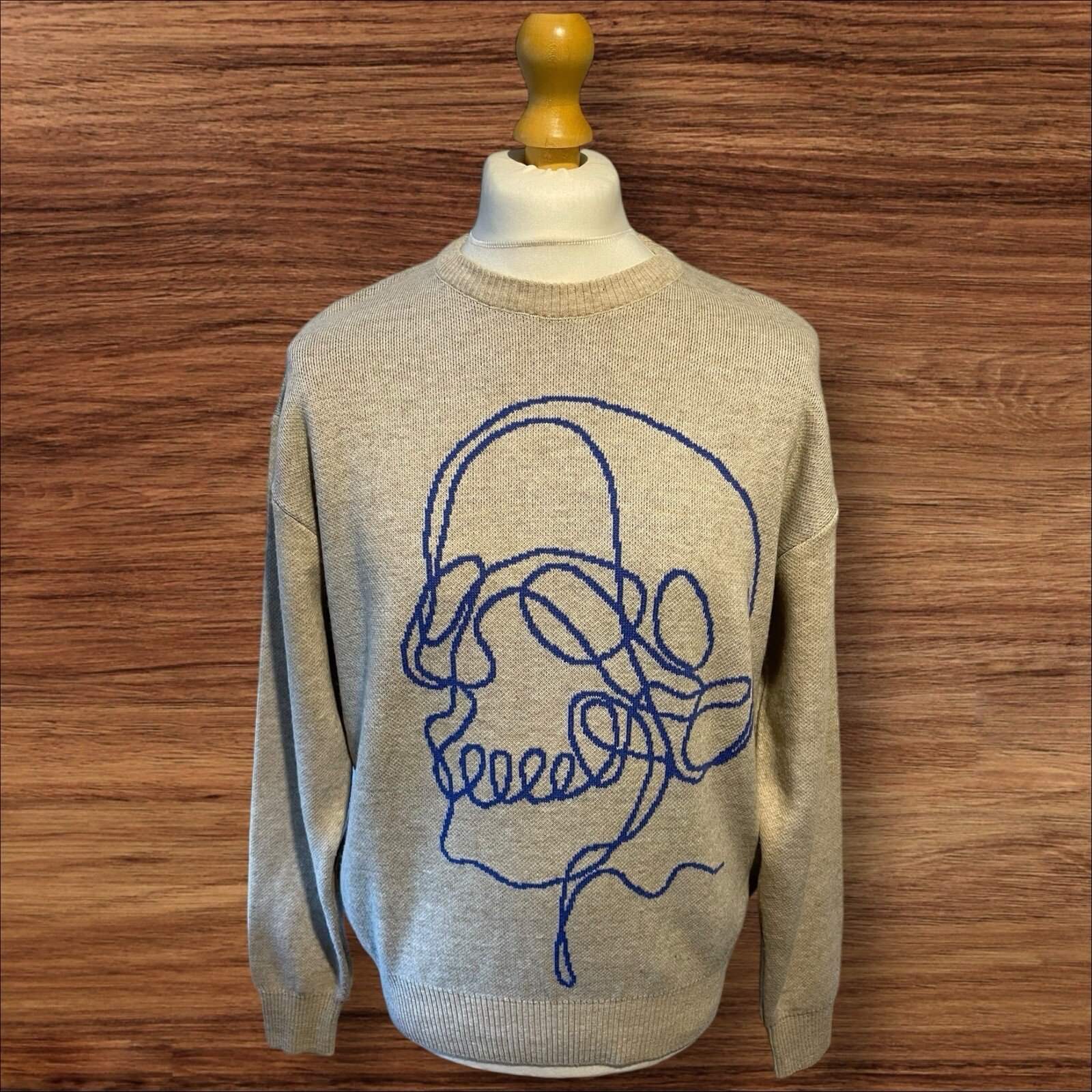 Read the pit to pit as this dosent look like XS!!!! Elevate your wardrobe with this stylish Boohoo Man jumper. The beige crew neck design features a skull theme, adding a touch of edginess to your outfit. The long sleeves provide comfort and versatility, making it perfect for any occasion. Crafted from high-quality acrylic material, this pullover is both soft and durable. The size XS is suitable for regular-sized men, and the brand's attention to detail is evident in the Boohoo Man logo. Ideal for casual wear, this jumper is a must-have for any fashion-forward man. Pit to pit 25in Excellent condition From a smoke and pet free home