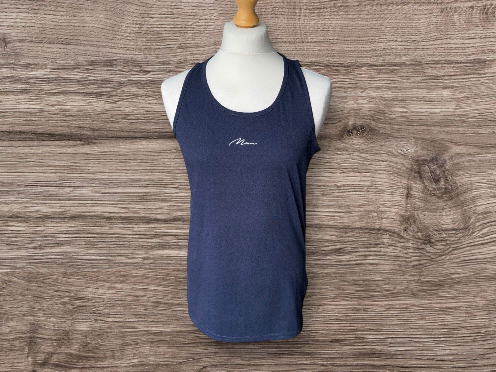 Elevate your summer wardrobe with this stylish navy vest from Boohoo Man. Made from high-quality cotton, this regular fit vest is perfect for staying comfortable and looking trendy during hot summer days. The sleeveless design and scoop neck add to its casual appeal, while the bold front graphic makes it a standout piece.Ideal for men who wear size S, this vest is a must-have for any fashion-conscious individual. Whether you're going out for a casual lunch or a day at the beach, this Boohoo vest is the perfect addition to your outfit. So, add it to your collection today and enjoy the ultimate style and comfort this summer.Pit-pit 20in. Length 28.5in