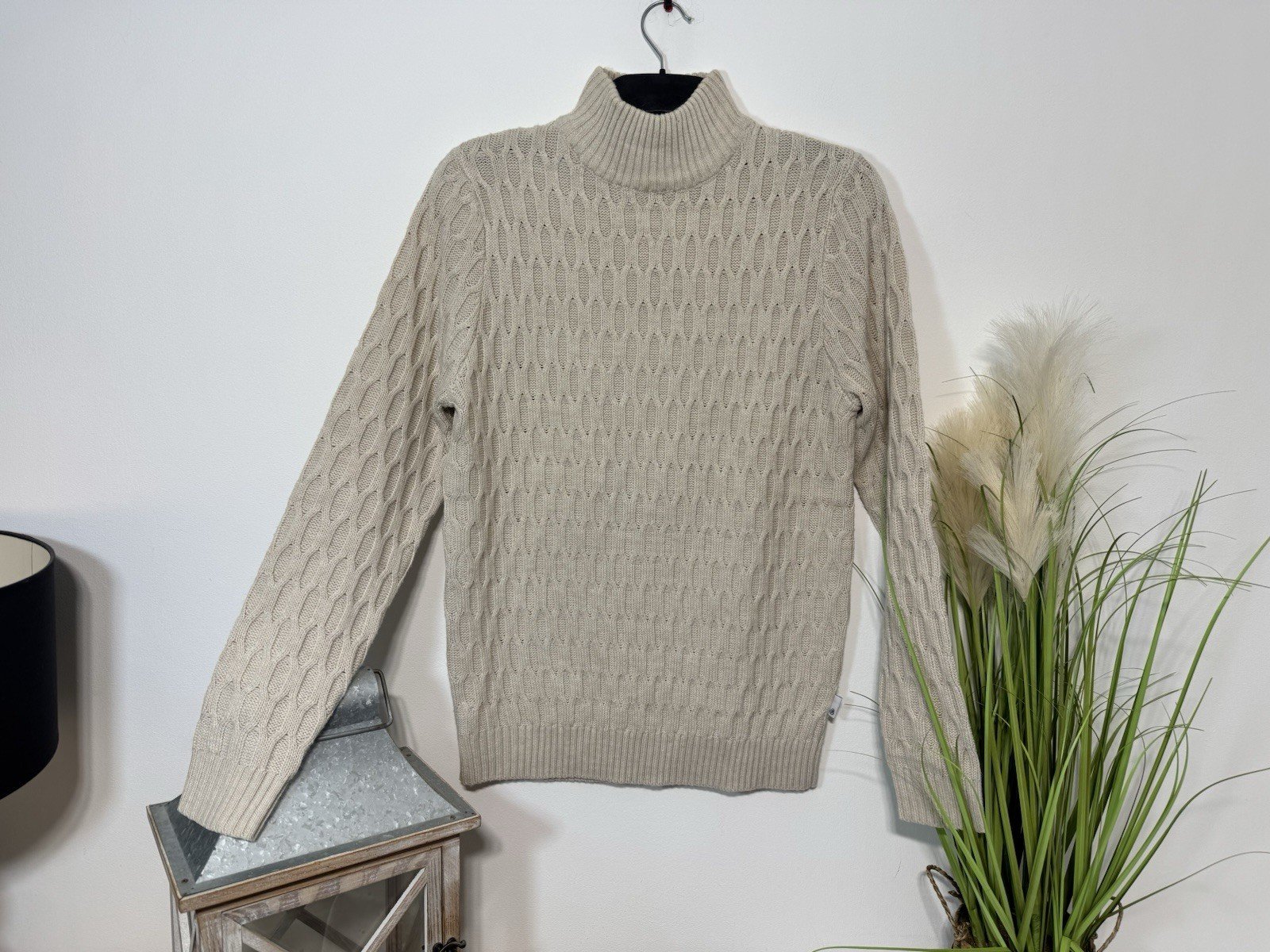 The Burtons Beige Textured Knit Turtleneck Jumper in size M is a stylish and versatile piece for men’s winter wardrobe. Made from acrylic knit fabric, this long sleeve pullover jumper is perfect for casual occasions. It features a regular fit and is machine washable for easy care. The beige colour adds a touch of sophistication, while the Burton Menswear London brand ensures quality and style. Perfect for keeping warm and fashionable during the colder months.