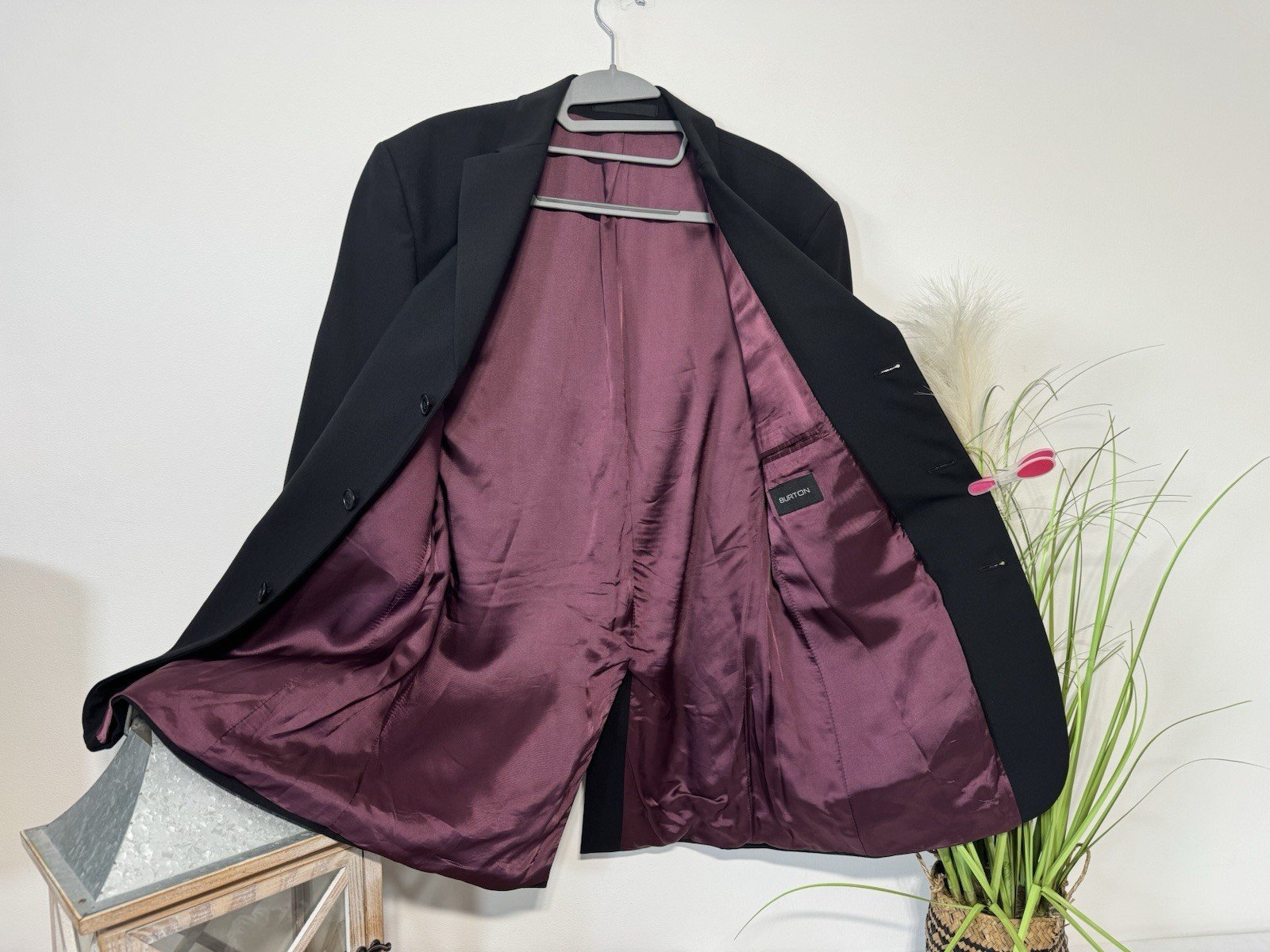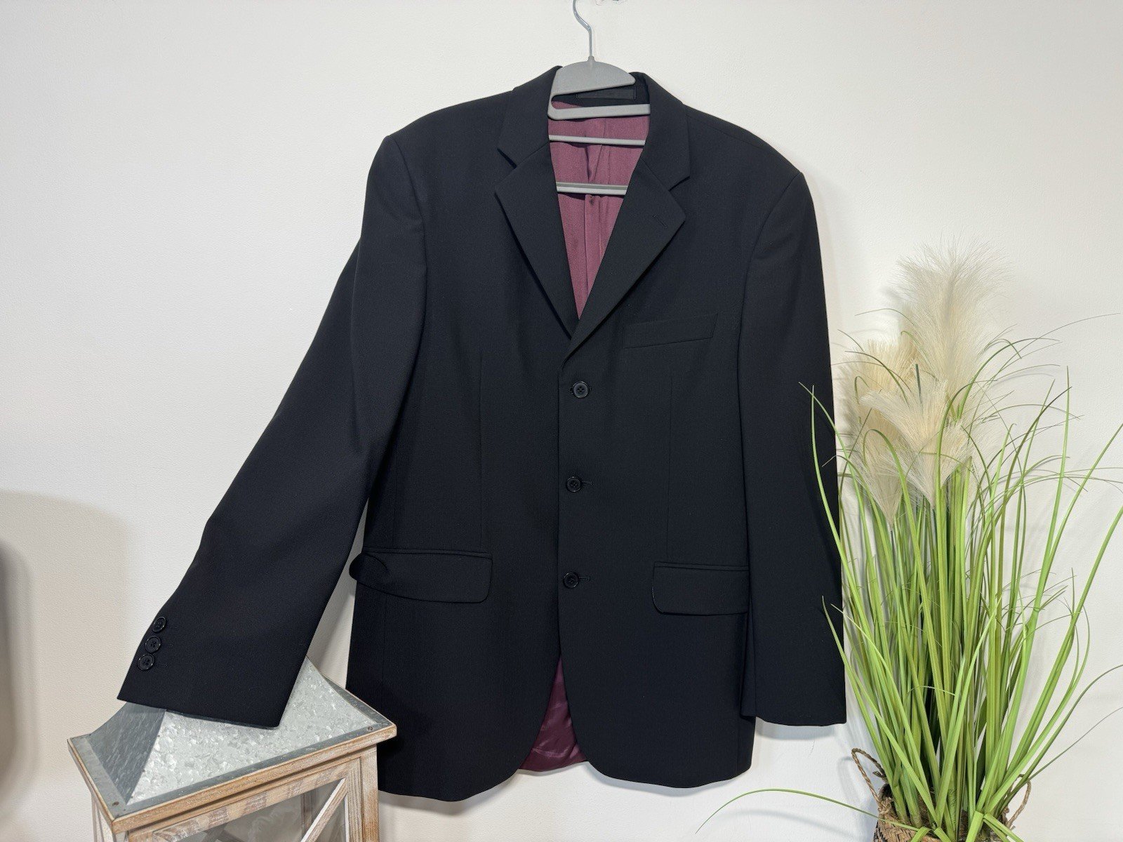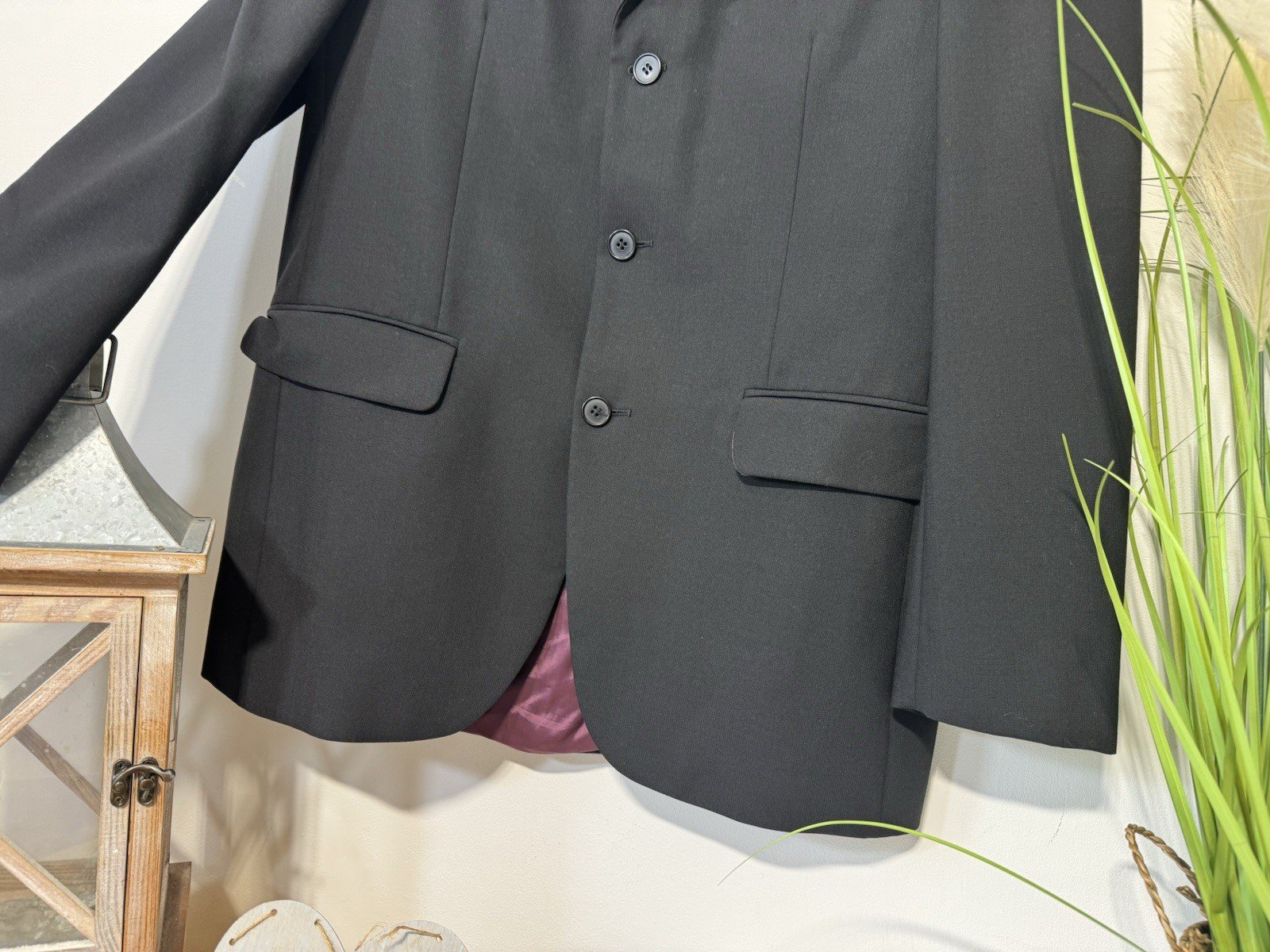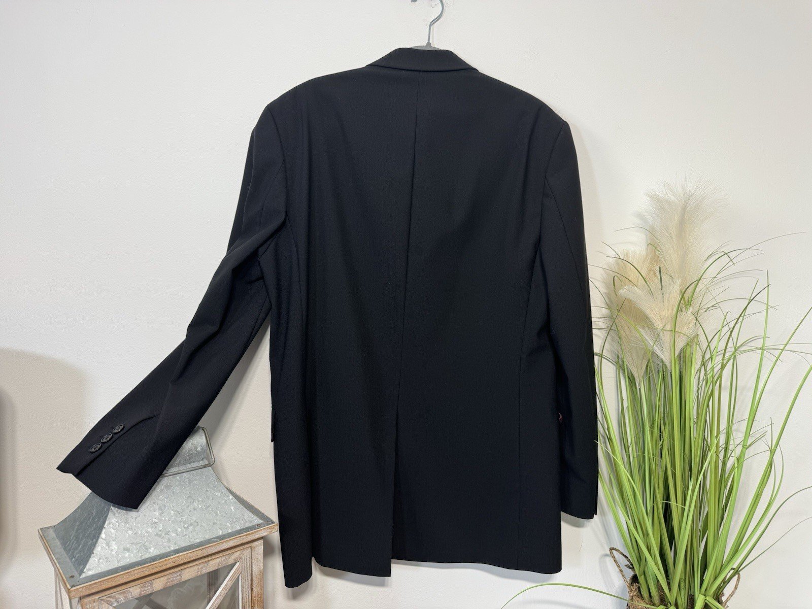 Pit-pit 21”This Burtons Black Wool Blend Single Breasted Line Blazer is a classic and formal piece perfect for any special occasion. With a chest size of 38 inches and a regular fit, it is designed for a comfortable and tailored look. The flat front design and tuxedo style make it an elegant choice for autumn events. Made from high-quality wool blend, this blazer exudes sophistication and style, making it a timeless addition to any man’s wardrobe.