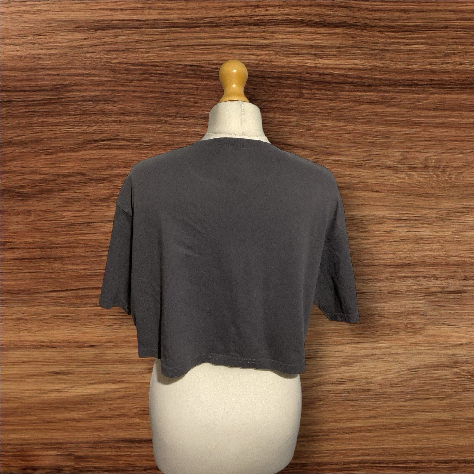 This stylish charcoal grey cotton crop T-shirt in size S is a must-have for any fashion-conscious woman. Featuring short sleeves and a flattering cropped style, it is perfect for warmer weather. Made from 100% cotton, it is both comfortable and breathable, ensuring you stay cool and stylish all day long. With its Divided brand name, you know you're getting a quality piece of clothing that will last. The T-shirt is versatile and can be dressed up or down, making it ideal for any occasion. Add this T-shirt to your wardrobe today and step out in style! Pit to pit 22in Length 15.5in Used in New Condition Thanx for looking