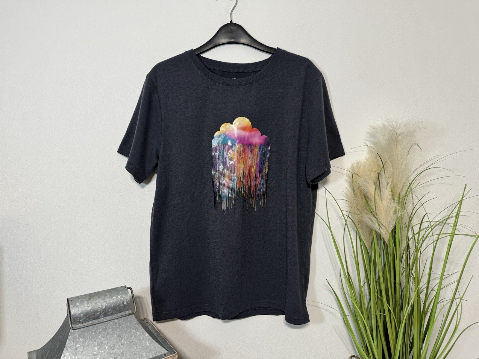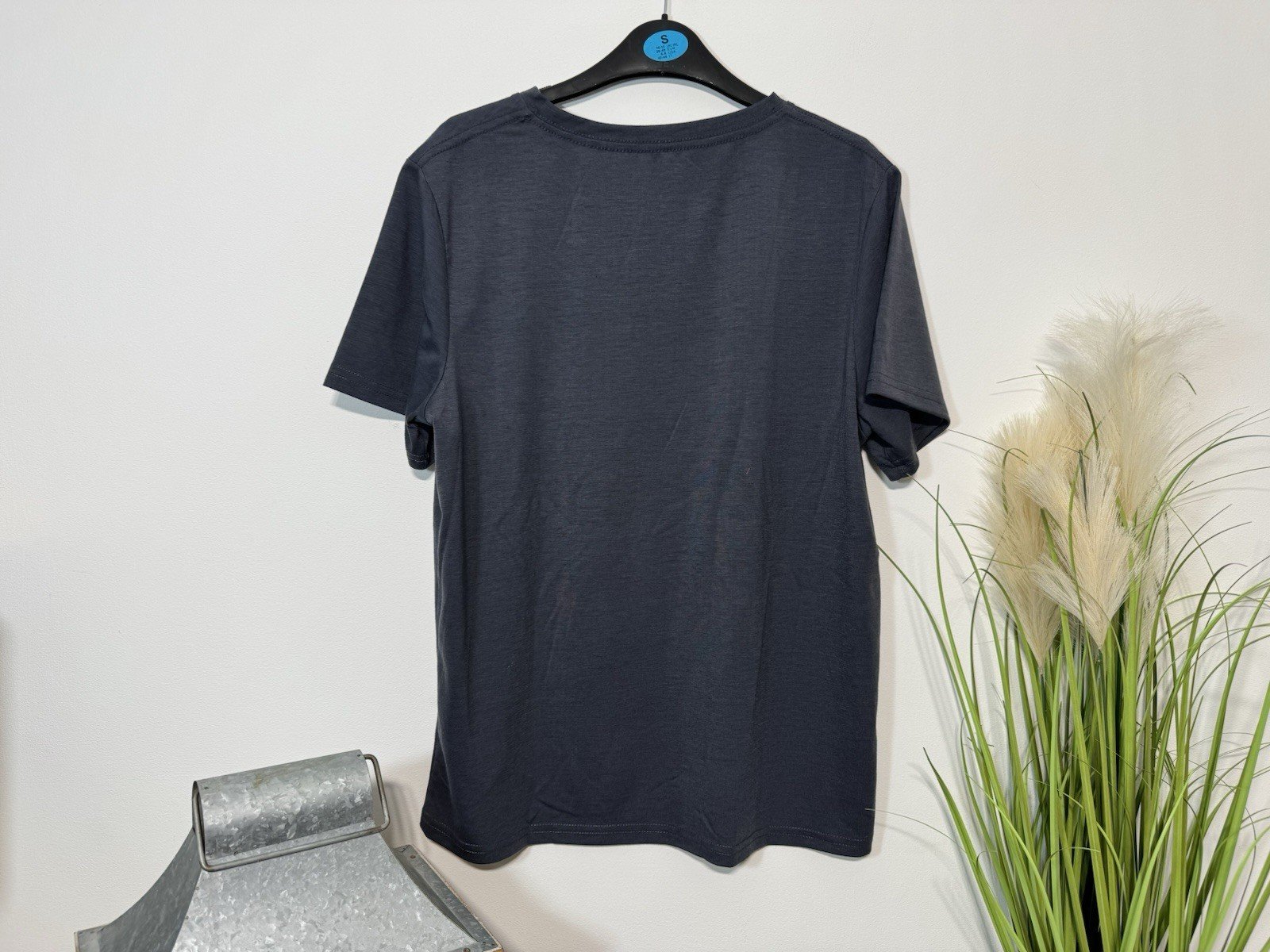 This Charcoal Grey Graphic Short Sleeve T-Shirt in size M is a versatile and stylish addition to any woman’s wardrobe. Made from a comfortable blend of polyester and elastane, it features a classic round neckline and pullover closure, making it easy to wear for casual occasions. The regular fit and basic style of this Shein brand t-shirt ensure that it is both practical and flattering for everyday wear. Machine washable for easy care, this grey t-shirt is a timeless essential for any fashion-forward woman.