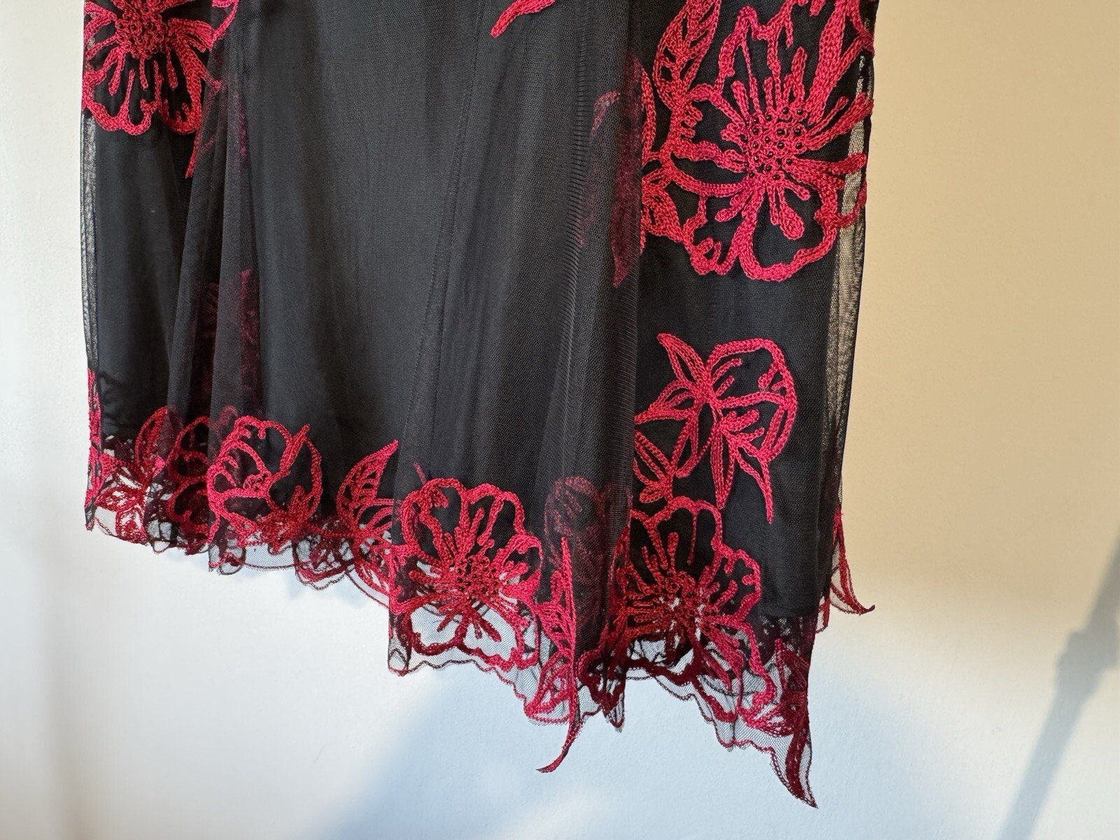 Excellent condition. Beautiful bead detail on flowers. Detailed waistband. Side zip. Waist 28in.