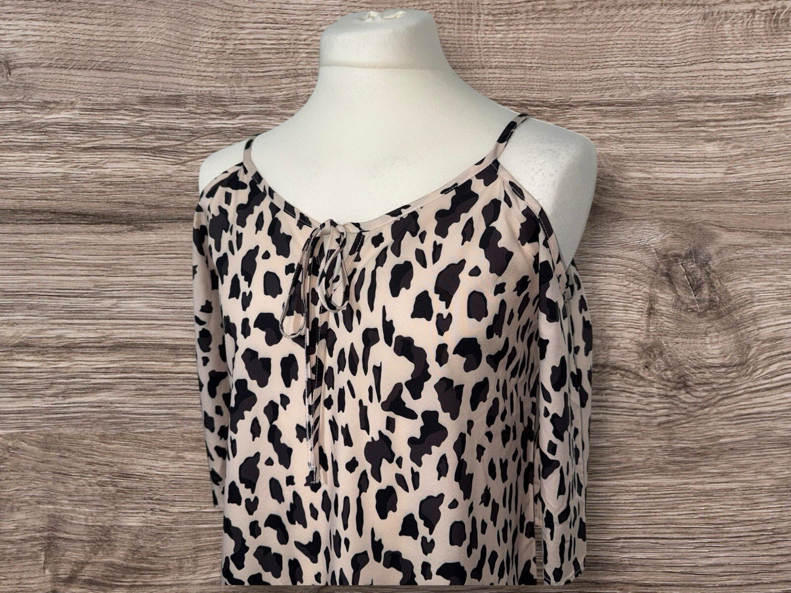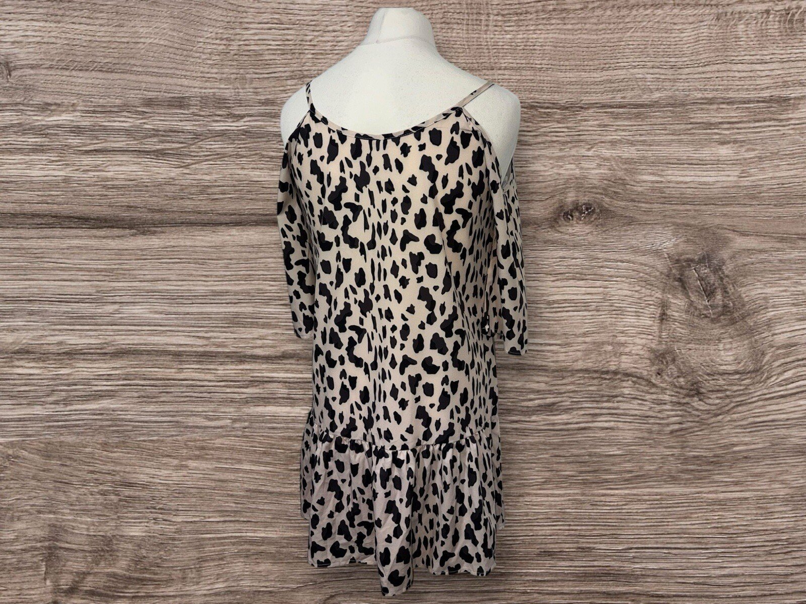 This leopard print tunic t-shirt is a stylish addition to any wardrobe. The black and beige colour scheme is perfect for any occasion, and the frill hem adds a touch of femininity. Available in size 10, this t-shirt is suitable for women of all ages and sizes. The short dress length makes it perfect for summer, and the regular size type ensures a comfortable fit. Ideal for casual wear or a night out, this t-shirt is versatile and fun. Excellent condition