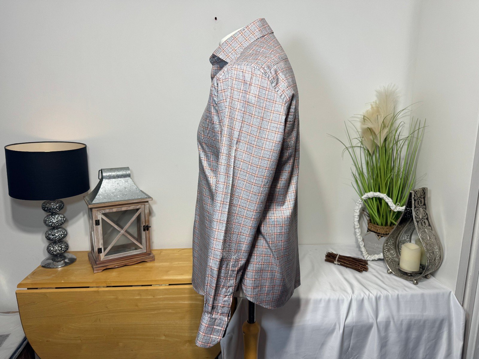 PIT-PIT 22IN.  LENGTH 30IN. The Collezione Tailored Fit Check Long Sleeve Shirt in size M is a stylish and versatile addition to any man’s wardrobe. Made from woven cotton fabric with a rust mix colour, this shirt features a collared neckline, button closure, and regular fit. Perfect for casual occasions, this button-up shirt from the Collezione brand offers a classic and sophisticated look that can be easily paired with jeans or trousers for a smart-casual style.R9