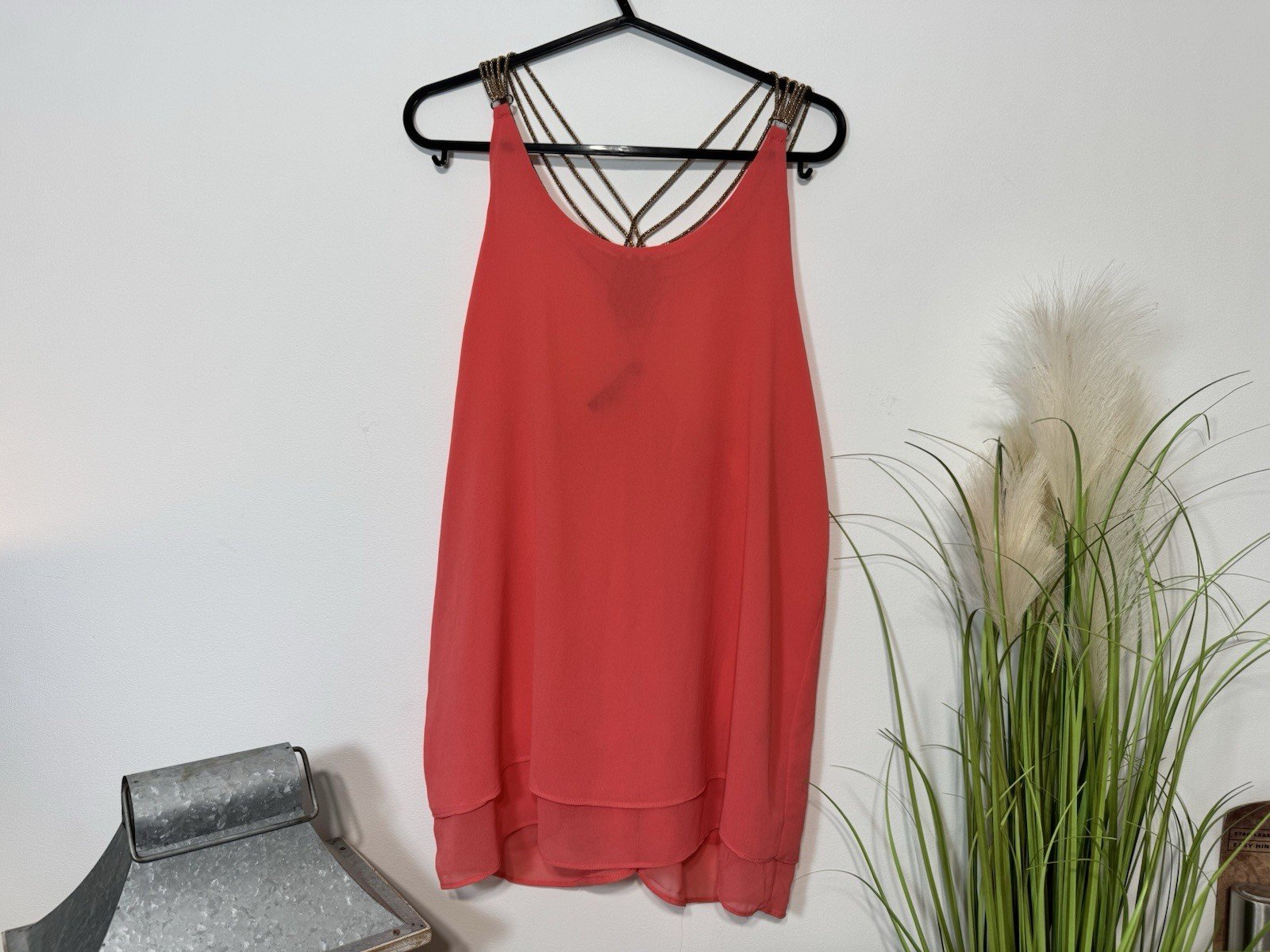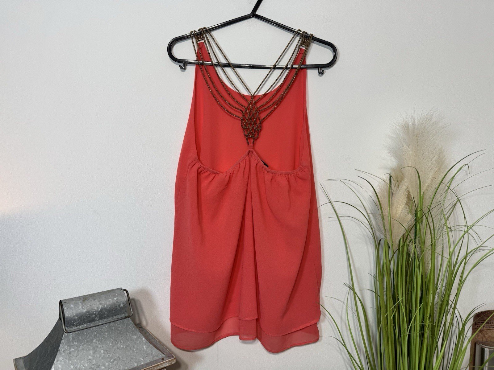 Coral Chiffon Effect Flowy Sleeveless Top With Gold Strap Size S