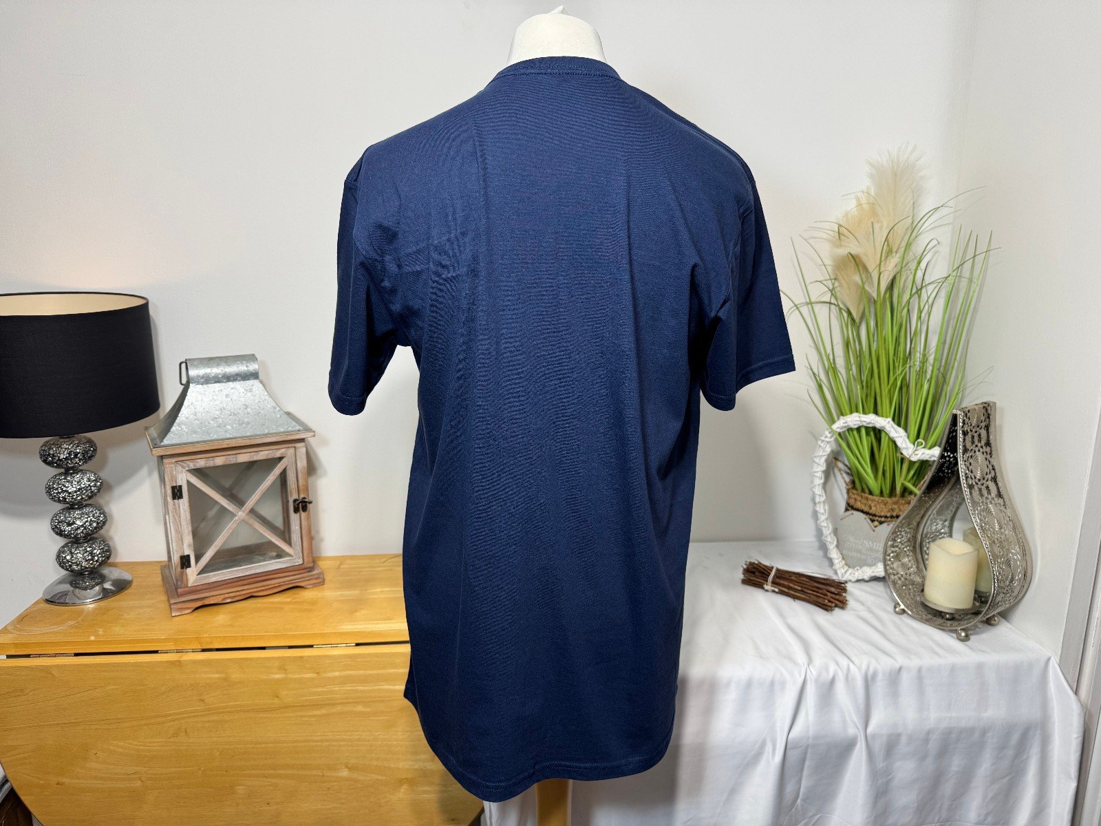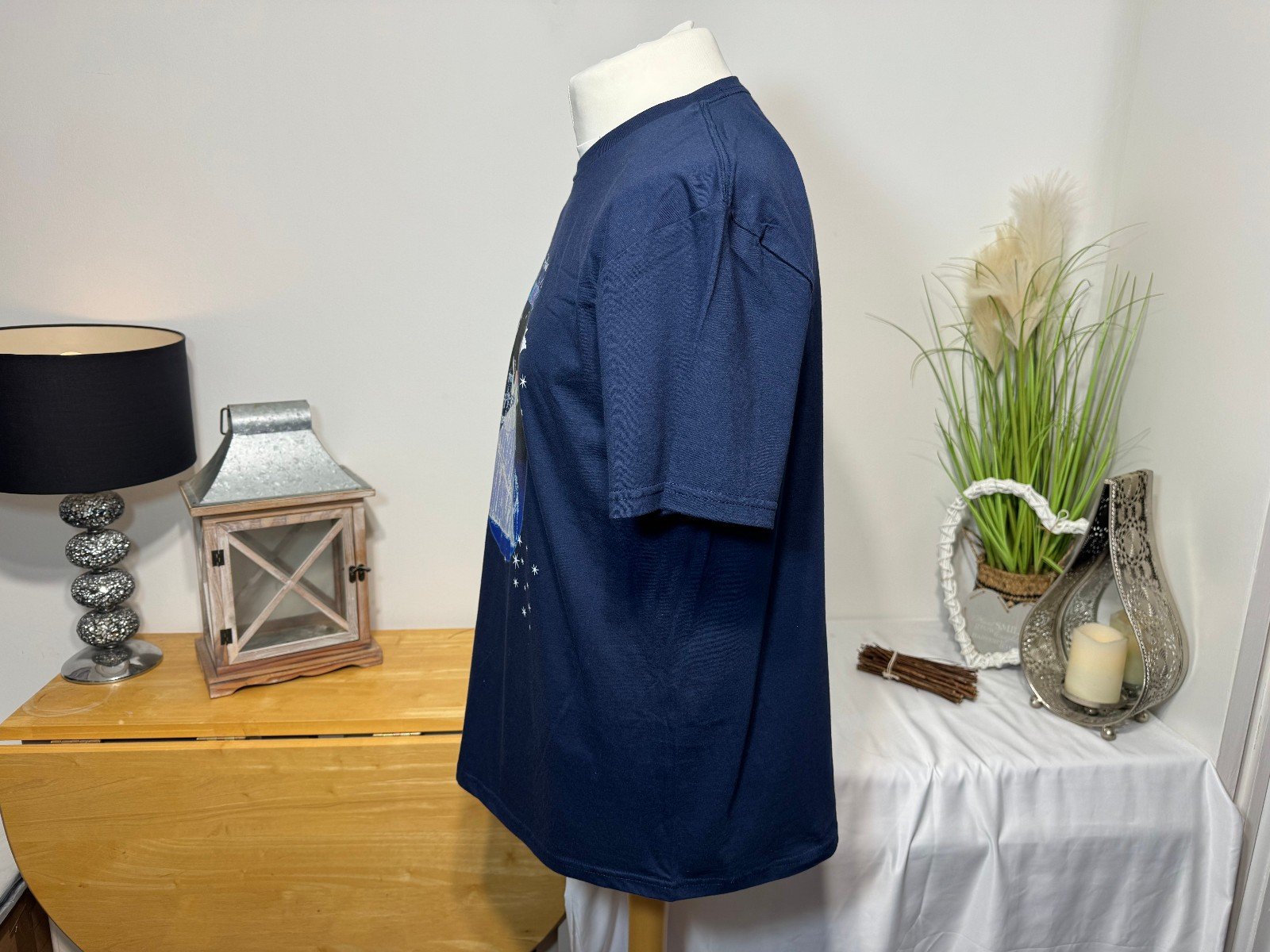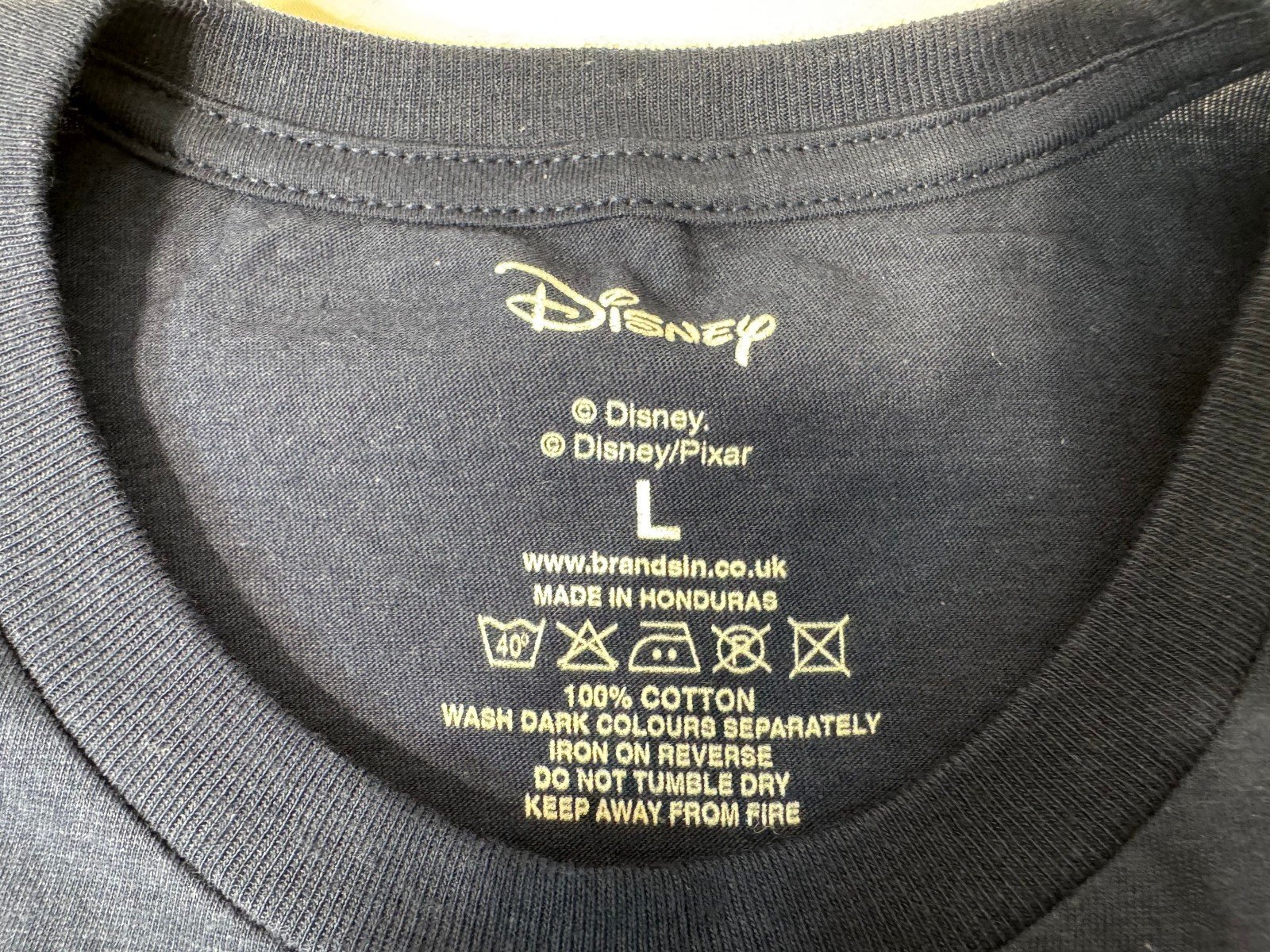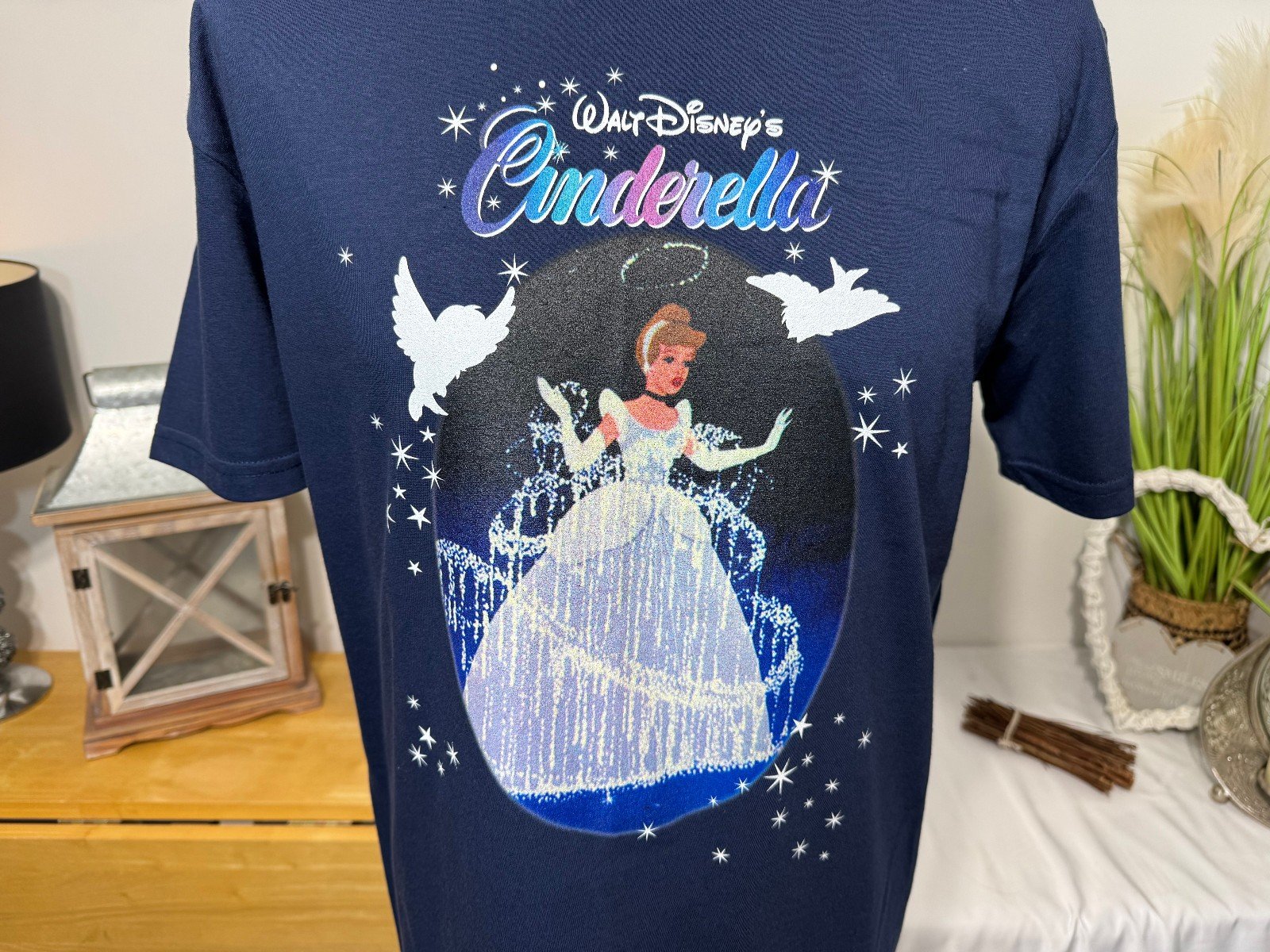 PIT-PIT 22IN. LENGTH 30INThis Disney Navy Cinderella Graphic Cotton T-Shirt in size L features a classic round neck and short sleeves, making it a versatile addition to any wardrobe. Made from soft cotton jersey fabric, this regular fit T-shirt is comfortable to wear and has a blue colour with a Cinderella logo accent, perfect for fans of the Disney character. Machine washable for easy care, this unisex shirt is suitable for both men and women who love the Disney family.R9