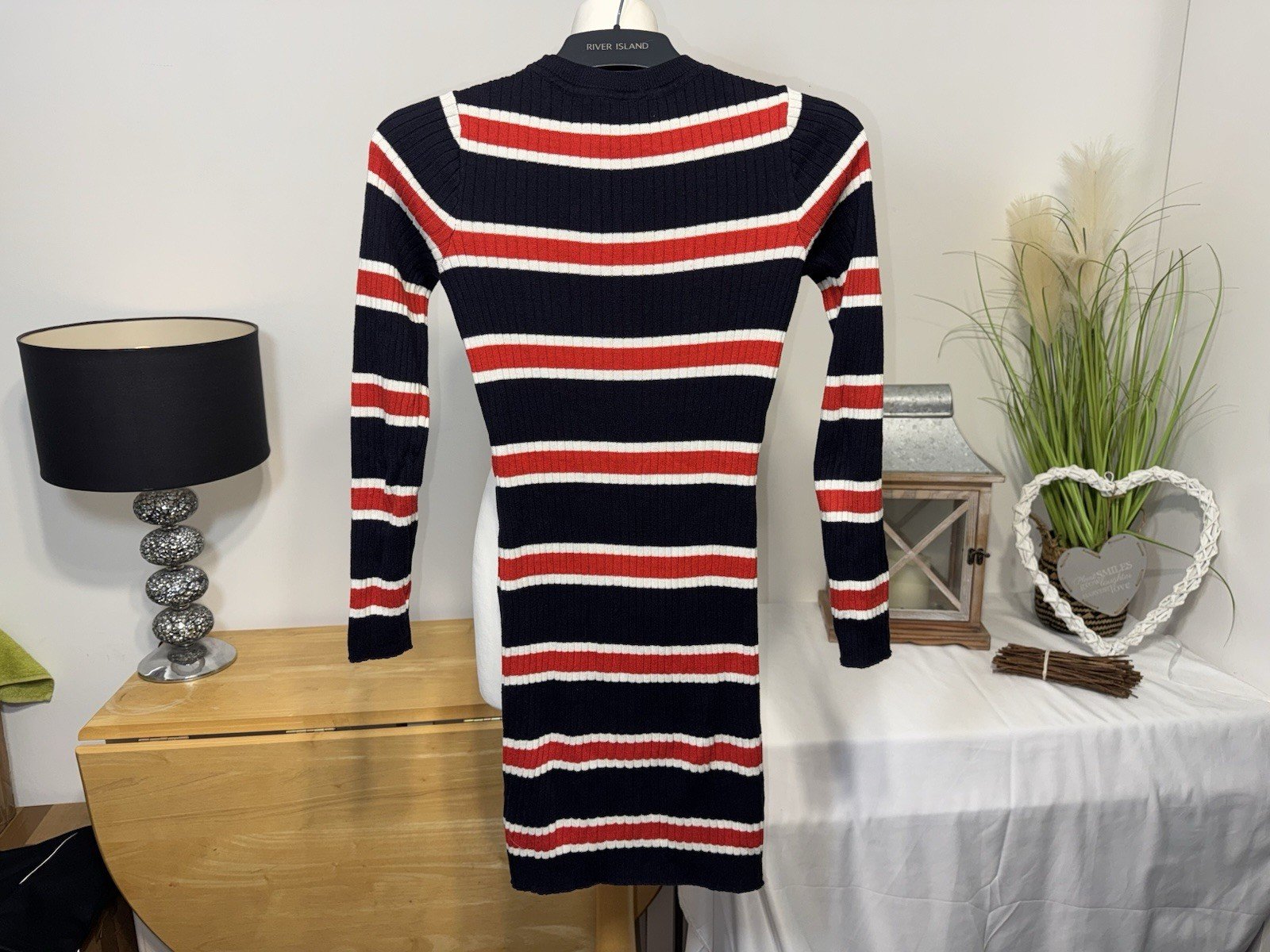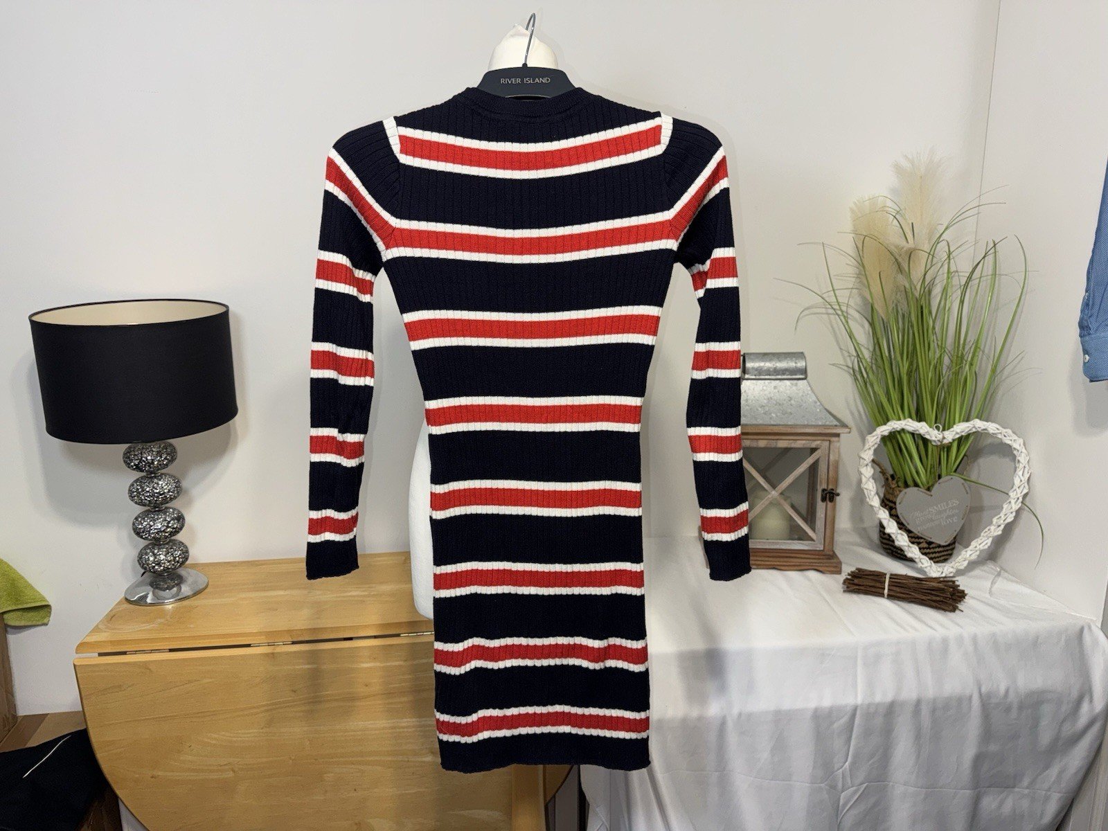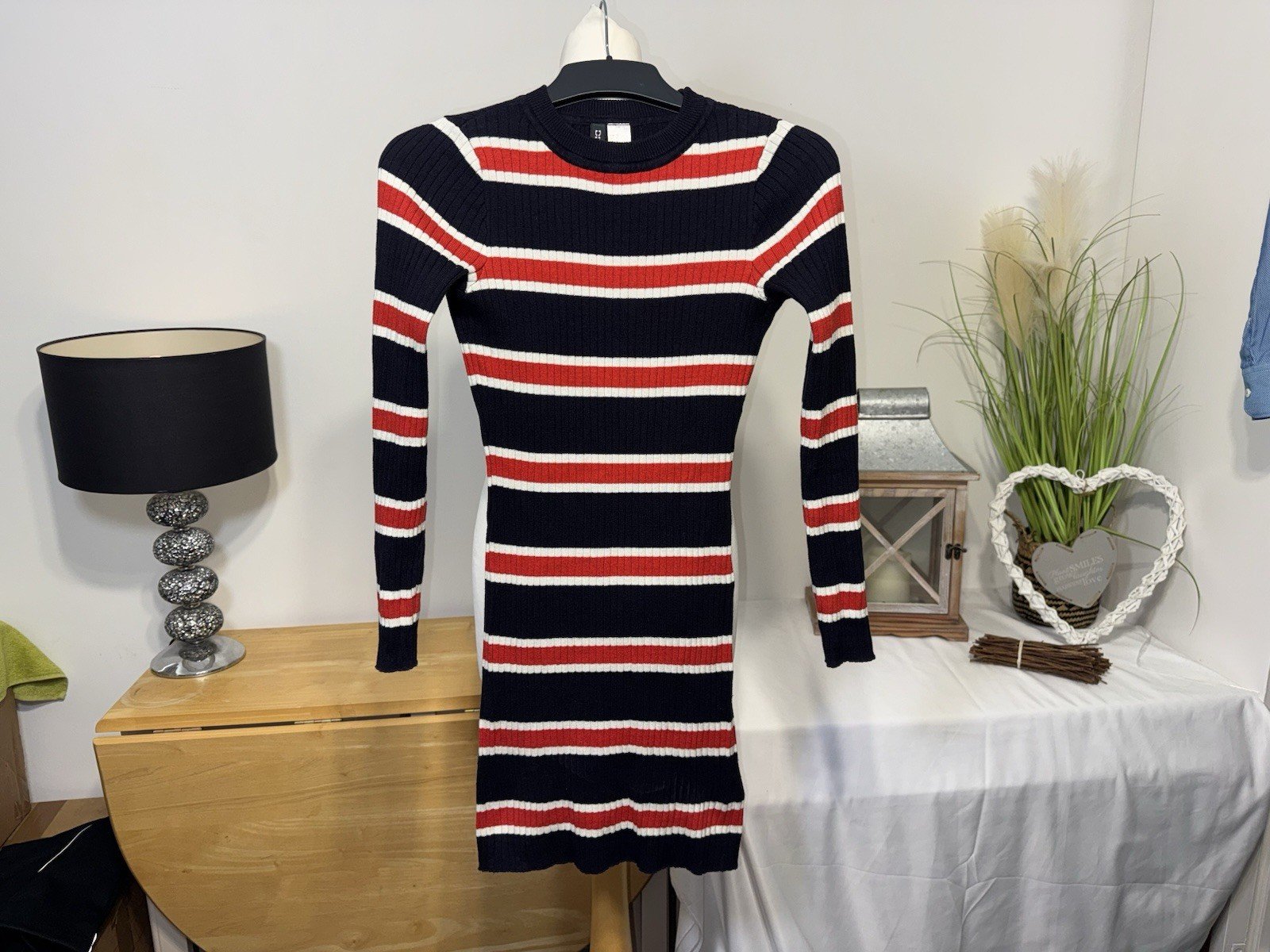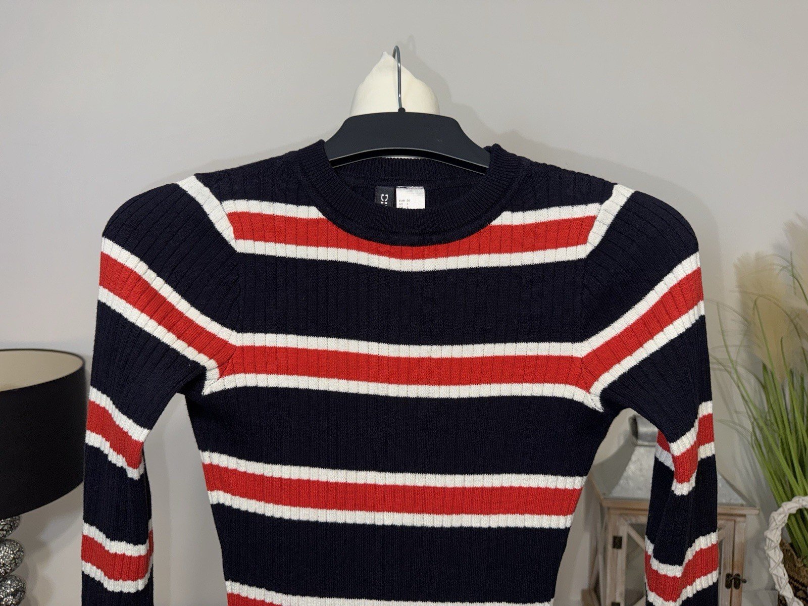 Length 32inThis Divided Ribbed Cotton Knit Mini Dress in size 8 is a stylish and comfortable option for women. With a round neck and long sleeves, this short dress is perfect for a casual day out or a night on the town. The blue and red colour combination adds a pop of colour to your wardrobe, making it a versatile piece for any occasion. Made from cotton knit fabric, this dress is not only trendy but also soft to the touch, making it a great choice for all-day wear.