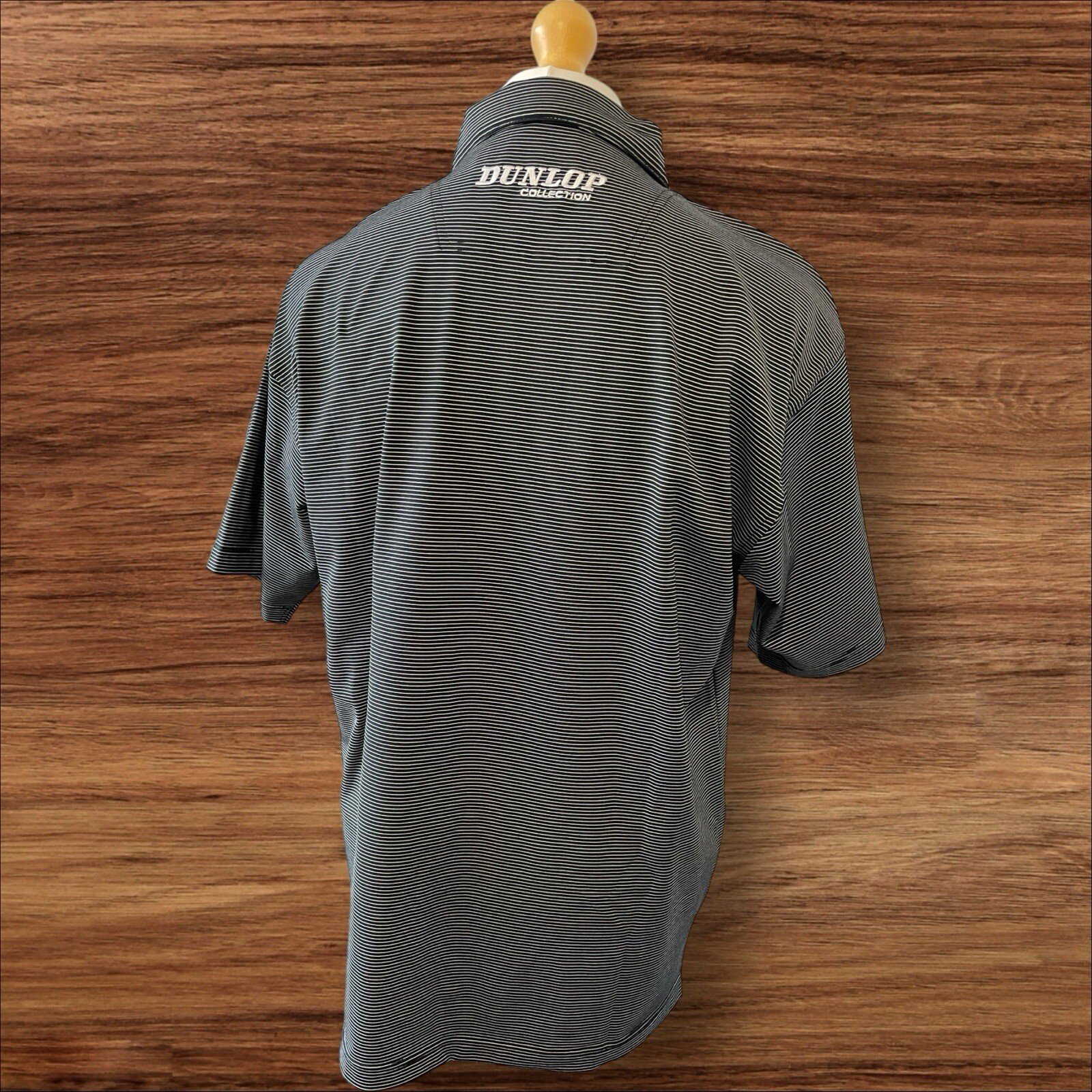 This stylish Dunlop polo shirt is perfect for any golf enthusiast. The black and white striped design is both classic and modern, making it suitable for any occasion. The relaxed fit ensures comfort and flexibility during any golfing activity, while the collared neckline and button closure add a touch of sophistication. Made with high-quality materials, this polo shirt is durable and long-lasting, making it a great investment for any golfer. The short sleeves are perfect for warm weather, and the size L ensures a comfortable fit for most men. Whether you're on the course or off, this Dunlop polo shirt is the ideal addition to any golfing wardrobe. Pit to pit 25in From a smoke and pet free home