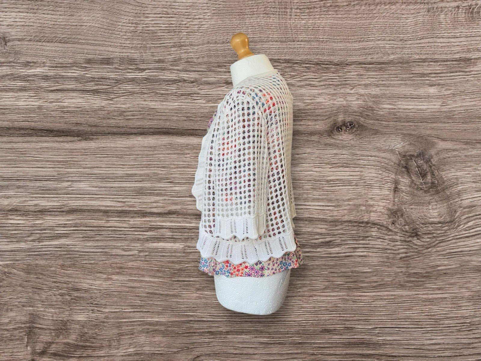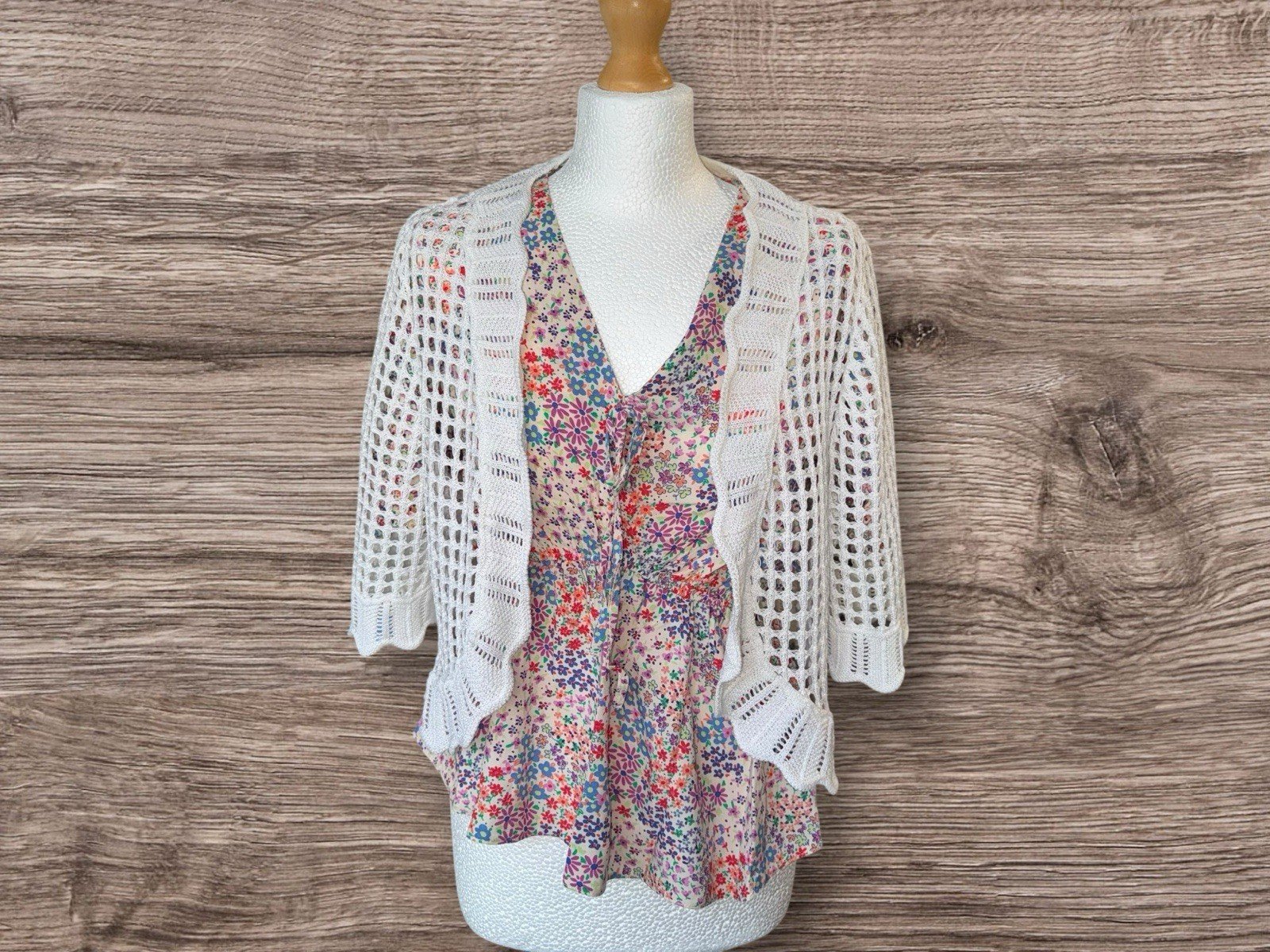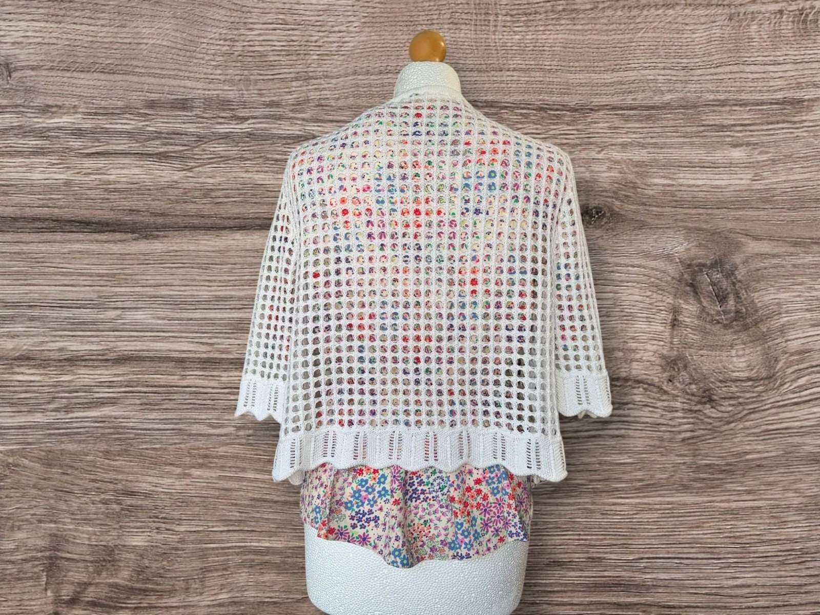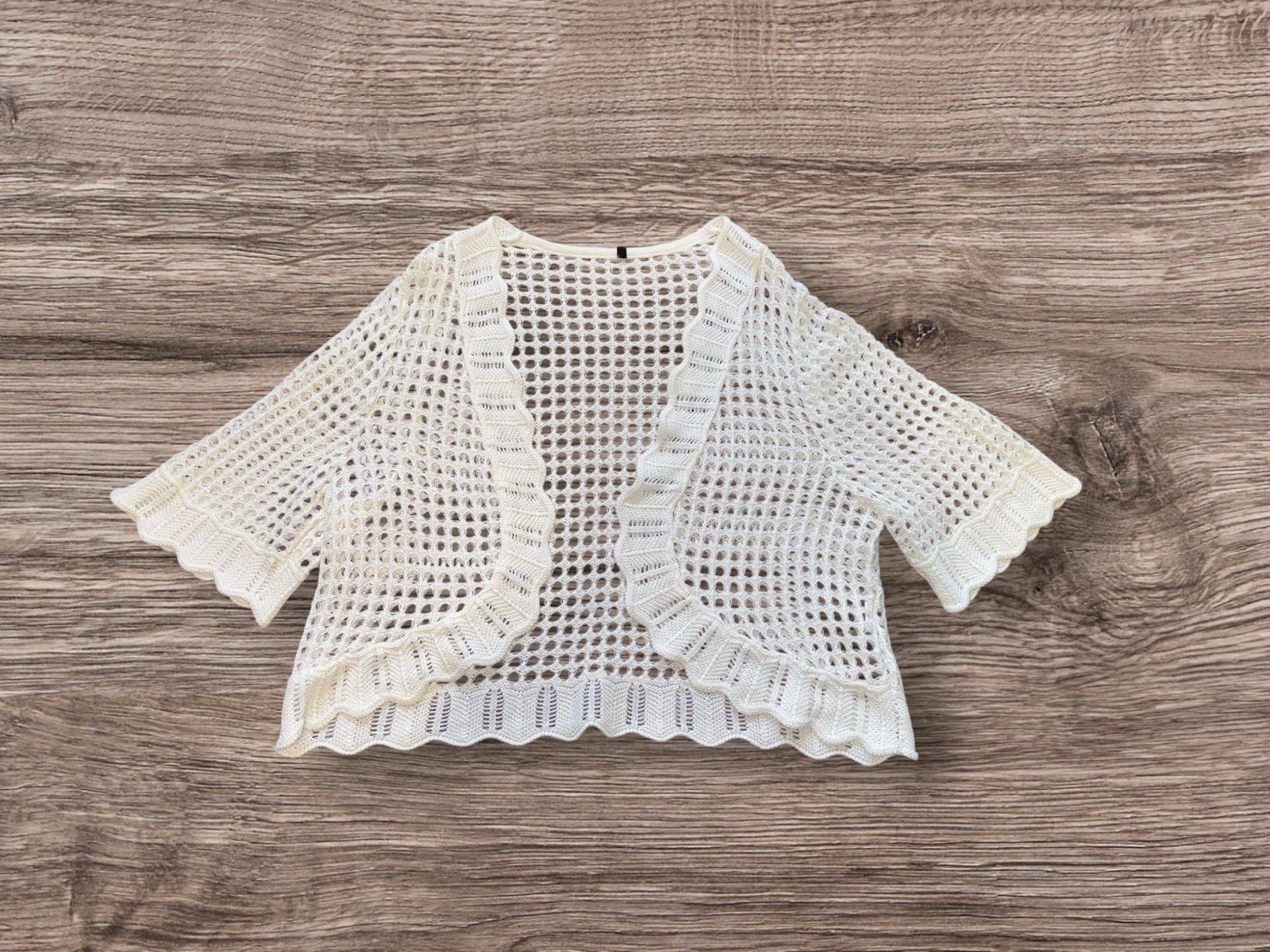 Blouse NOT included!!! Length 20inCrafted with a relaxed fit, this ecru cotton blend crochet bolero offers a blend of comfort and style. Suitable for a one-size-fits-all approach, it features a flattering frill open neckline, ideal for adding a touch of elegance to your casual ensemble. The 3/4 sleeves lend a playful yet sophisticated look, perfect for transitional weather.The bolero is unbranded, underscoring its unique, artisanal charm. Its versatile colour ensures it pairs seamlessly with a wide range of outfits, making it a staple addition to any wardrobe. Whether you're dressing up for an evening out or layering for a day in, this piece promises to enhance your look with its delicate crochet detailing.Please make sure you have checked the measurements and read the description before purchasing 😉