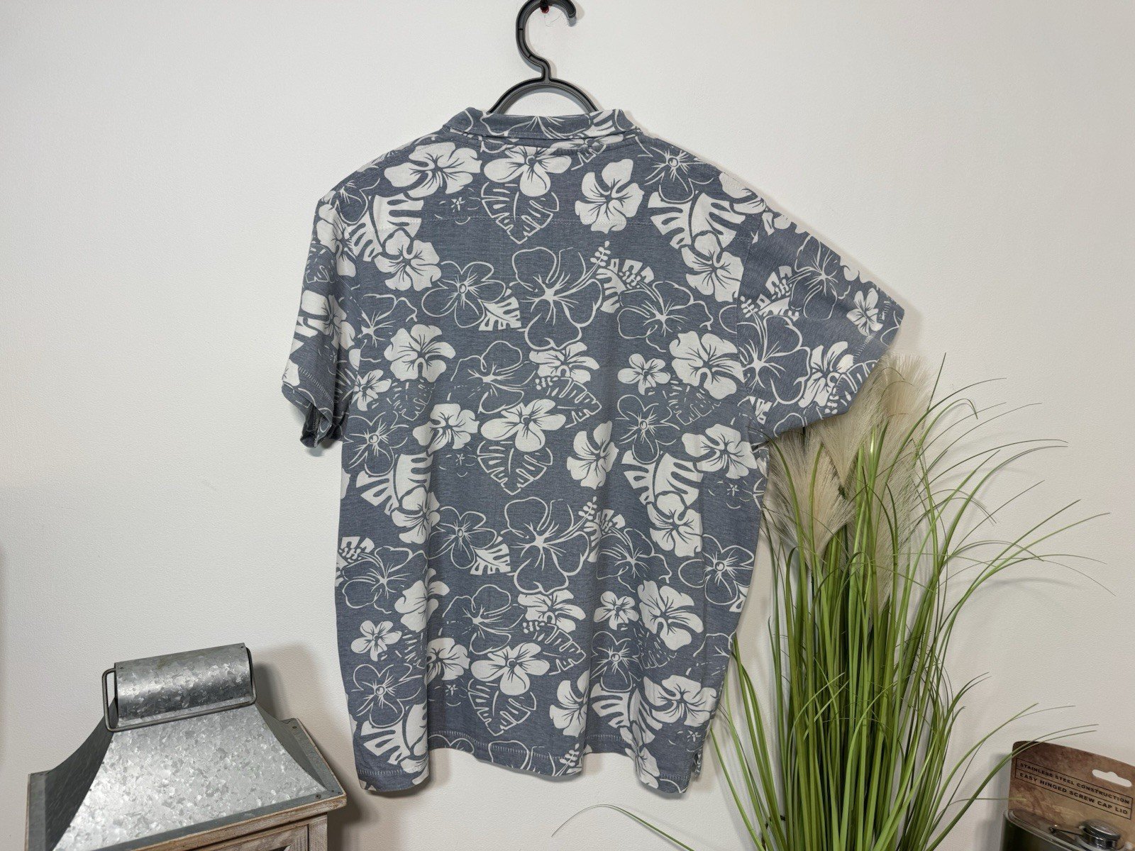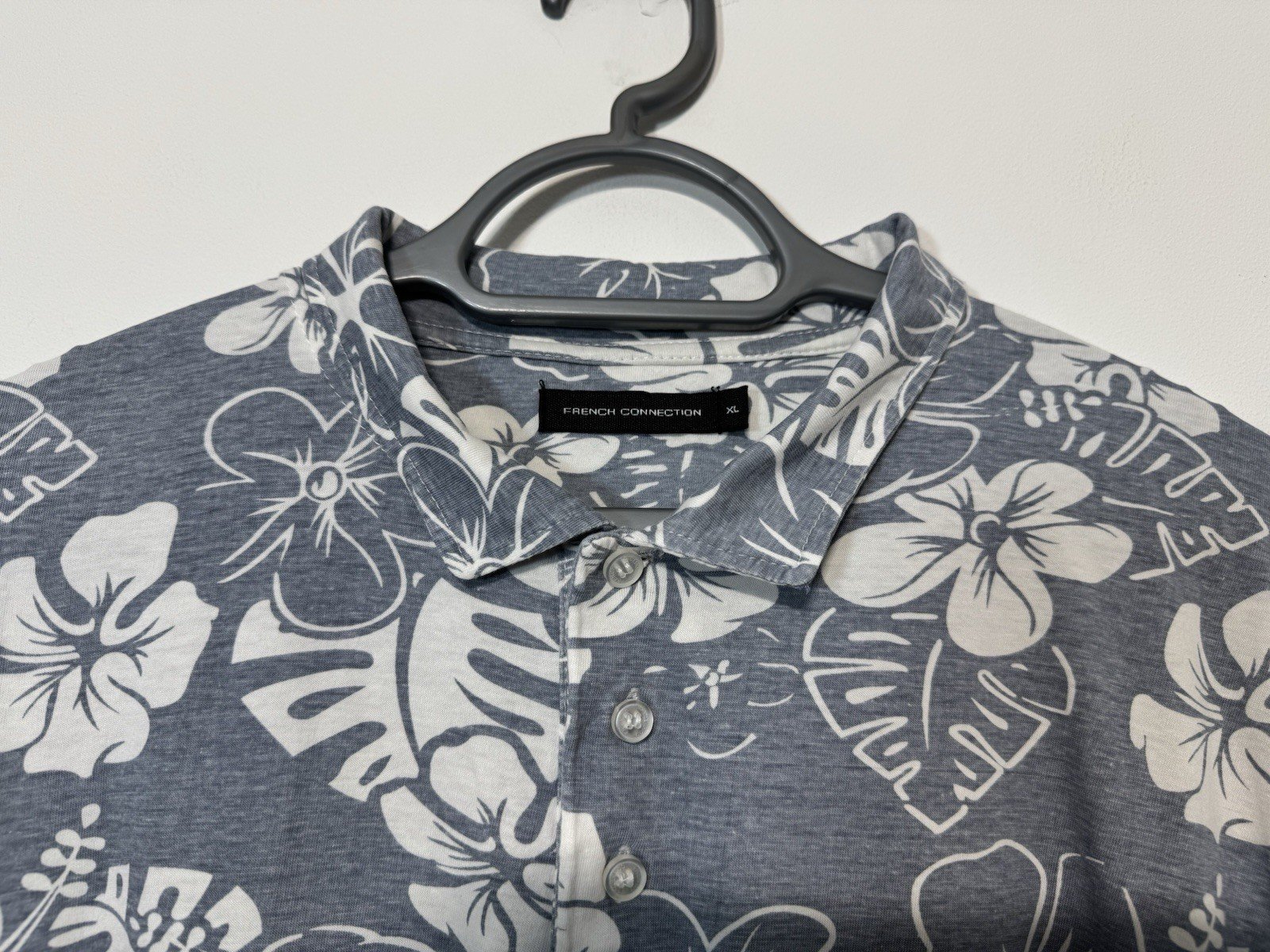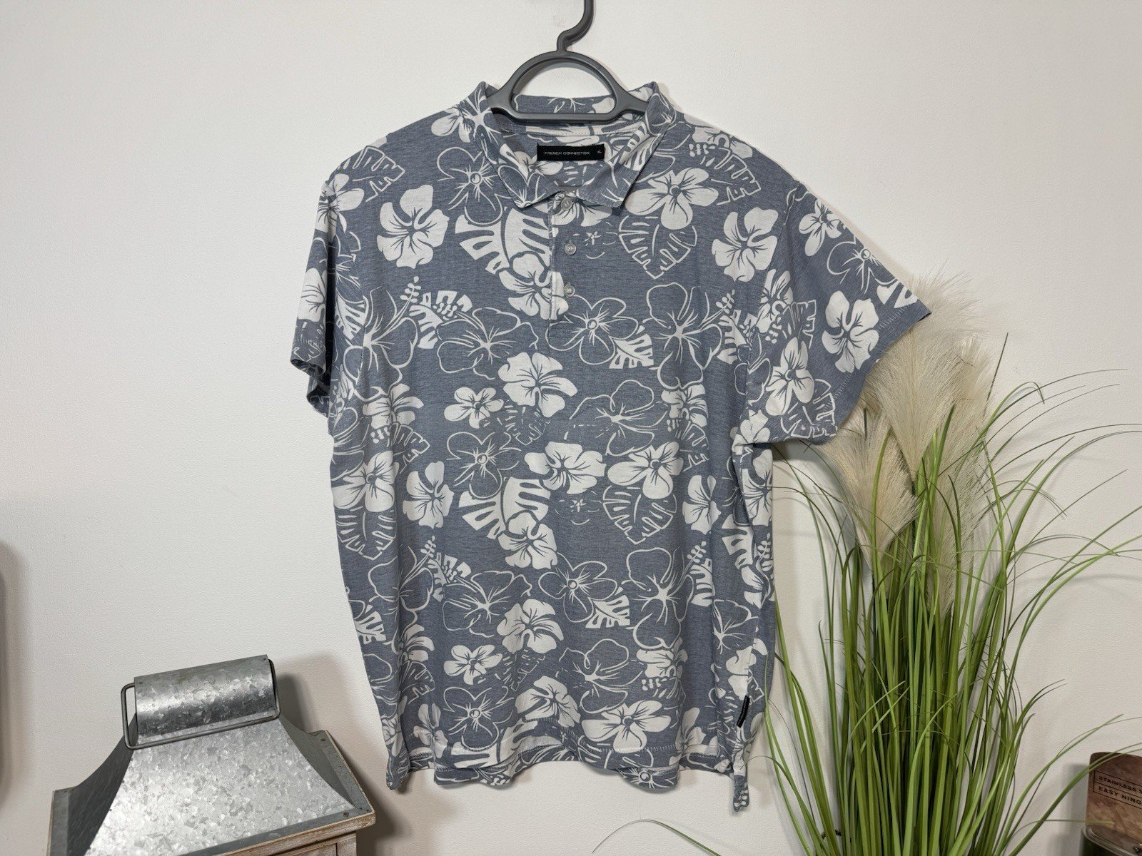 PIT-PIT 24”This French Connection Grey Floral Jersey Short Sleeve Polo Shirt in size XL is a stylish and versatile addition to any man’s wardrobe. Made from soft cotton jersey fabric, it features a collared neck with a button closure, making it suitable for casual occasions. The grey floral pattern adds a touch of flair to this classic polo shirt, perfect for the summer and spring seasons. Machine washable for easy care, this shirt is a practical and fashionable choice for any man looking for a comfortable and stylish top.