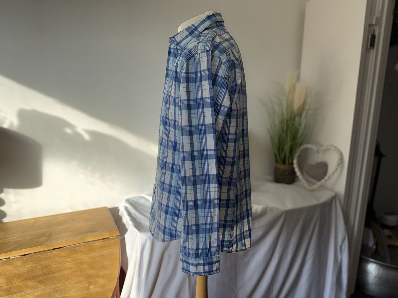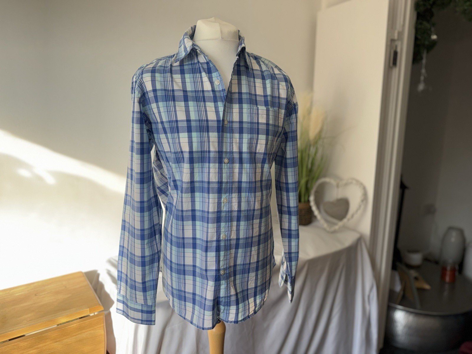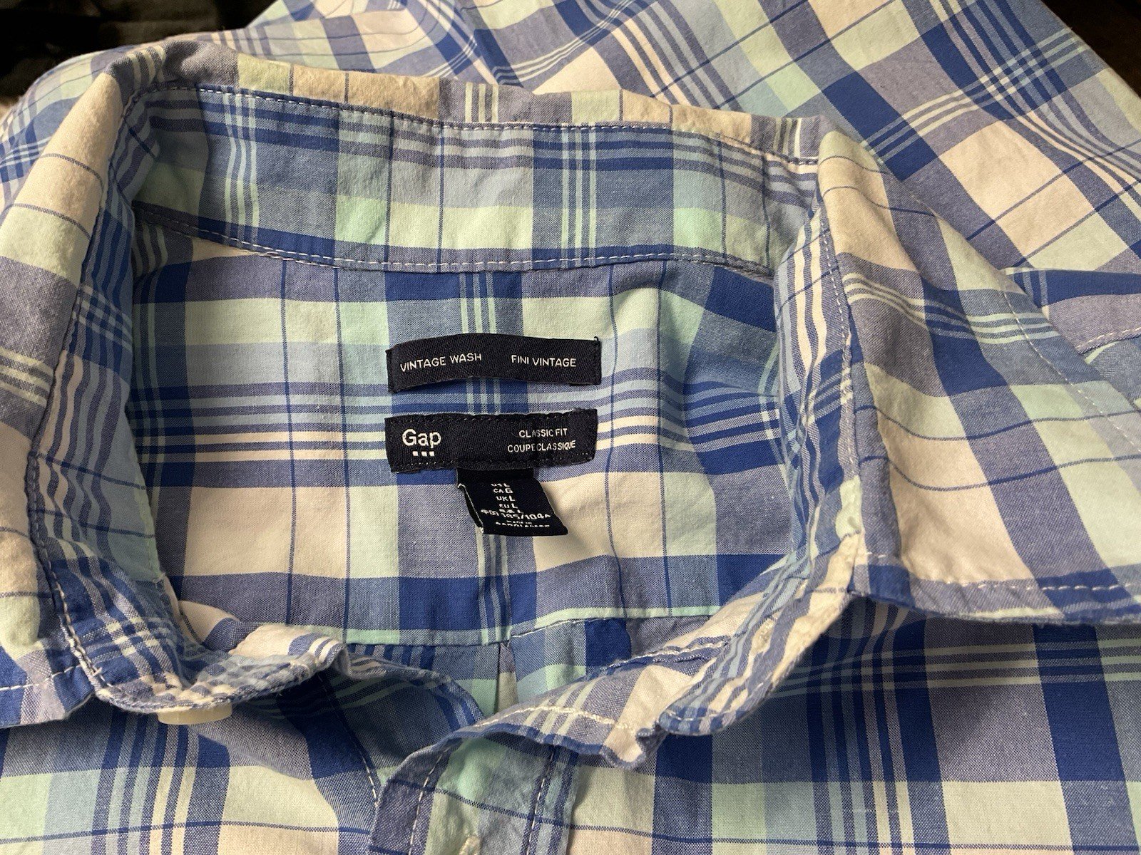 Gap  Blue Check Vintage Wash Fini Vintage Classic Fit Cotton Shirt Size L