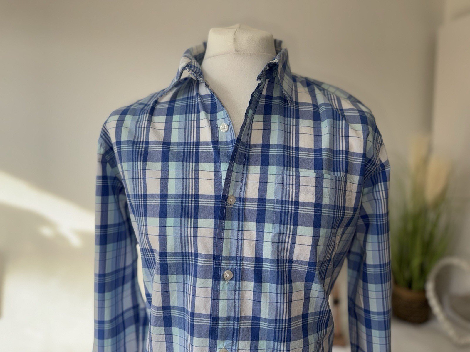 Gap Blue Check Vintage Wash Fini Vintage Classic Fit Cotton Shirt Size L