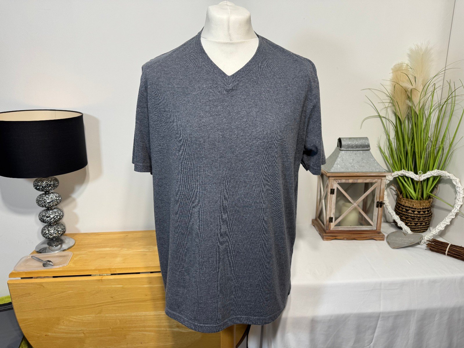 PIT-PIT 24IN. LENGTH 29INThis George V-neck t-shirt in size L is a versatile addition to any man’s wardrobe. Made from a comfortable cotton blend jersey fabric in a stylish grey fleck colour, it features a regular fit and short sleeves. The V-neck design adds a touch of sophistication, while the machine washable material makes it easy to care for. Perfect for everyday wear or dressed up with a jacket for a casual yet smart look.ref5