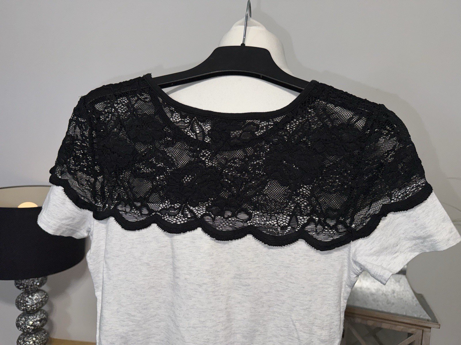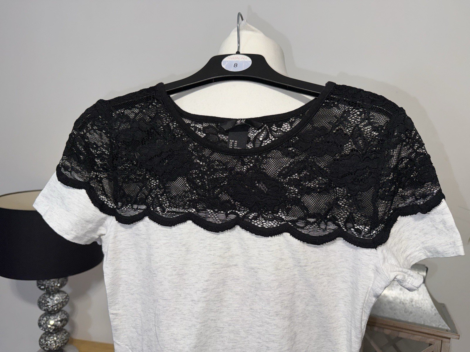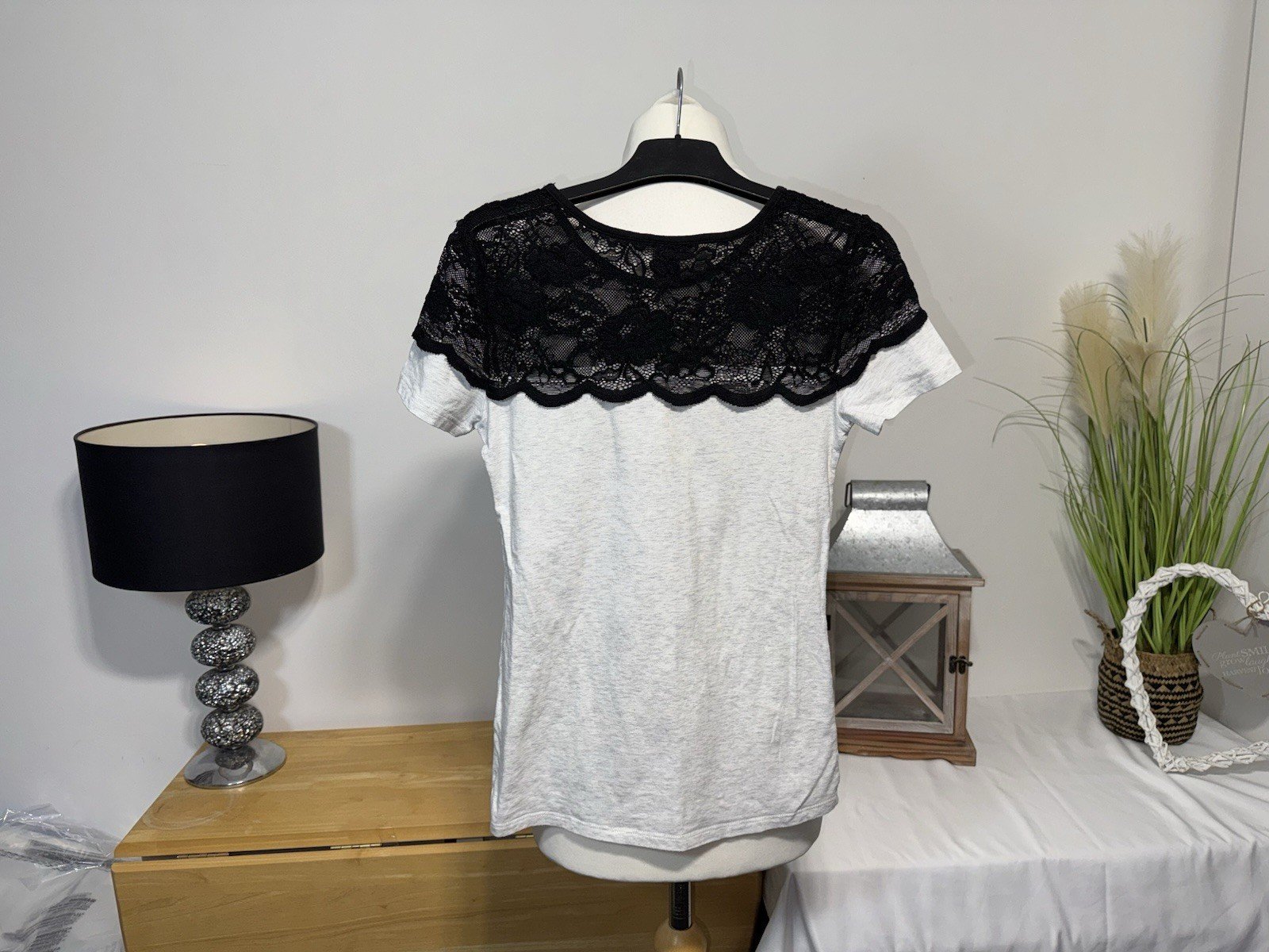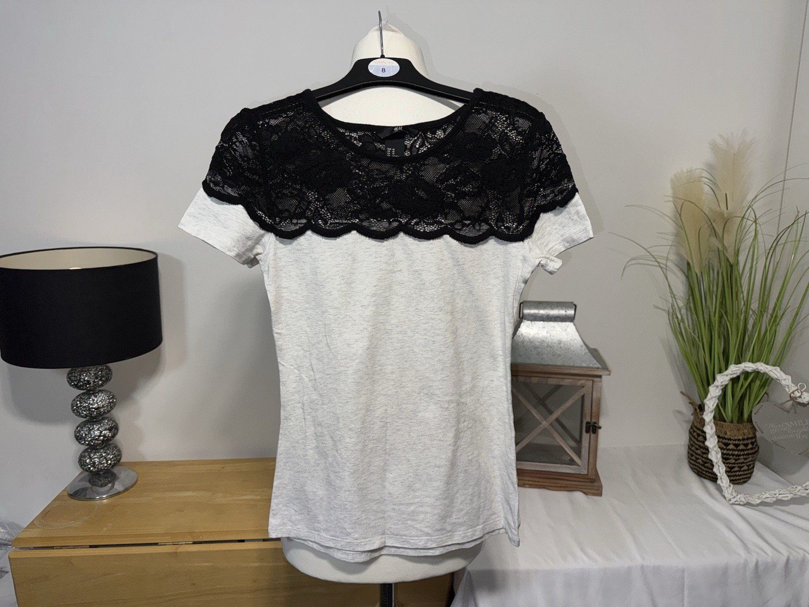 The pit-pit 15in. Length 24in H&M Grey Fleck Lace Effect Yolk Tee in size XS is a stylish and comfortable jumper for women. With a round neckline, short sleeves, and a grey colour with a lace effect detail, this tee is a versatile and chic addition to any wardrobe. The XS size ensures a flattering fit, making it a perfect choice for a casual yet trendy look. Perfect for layering or wearing on its own, this H&M tee is a must-have for any woman's clothing collection.