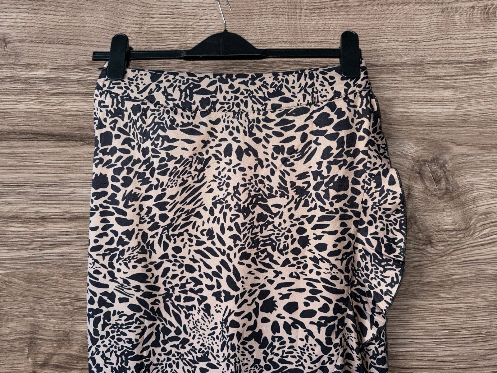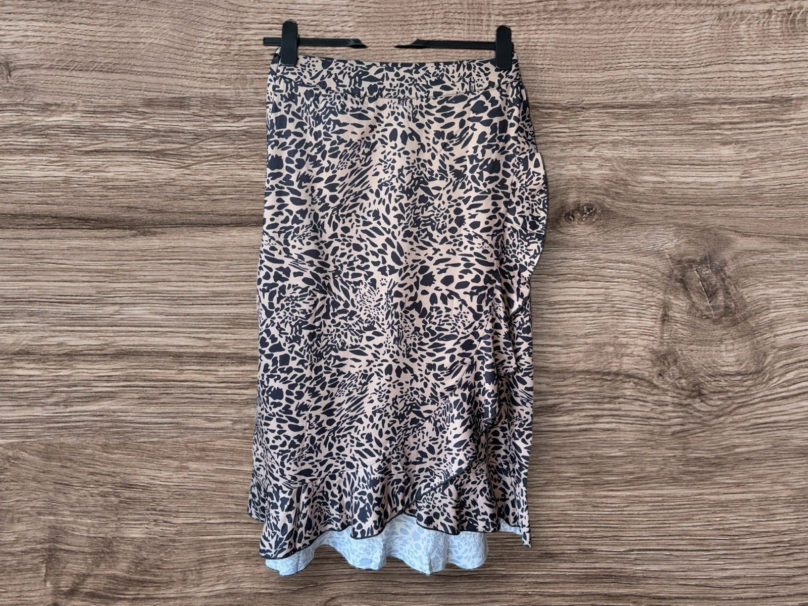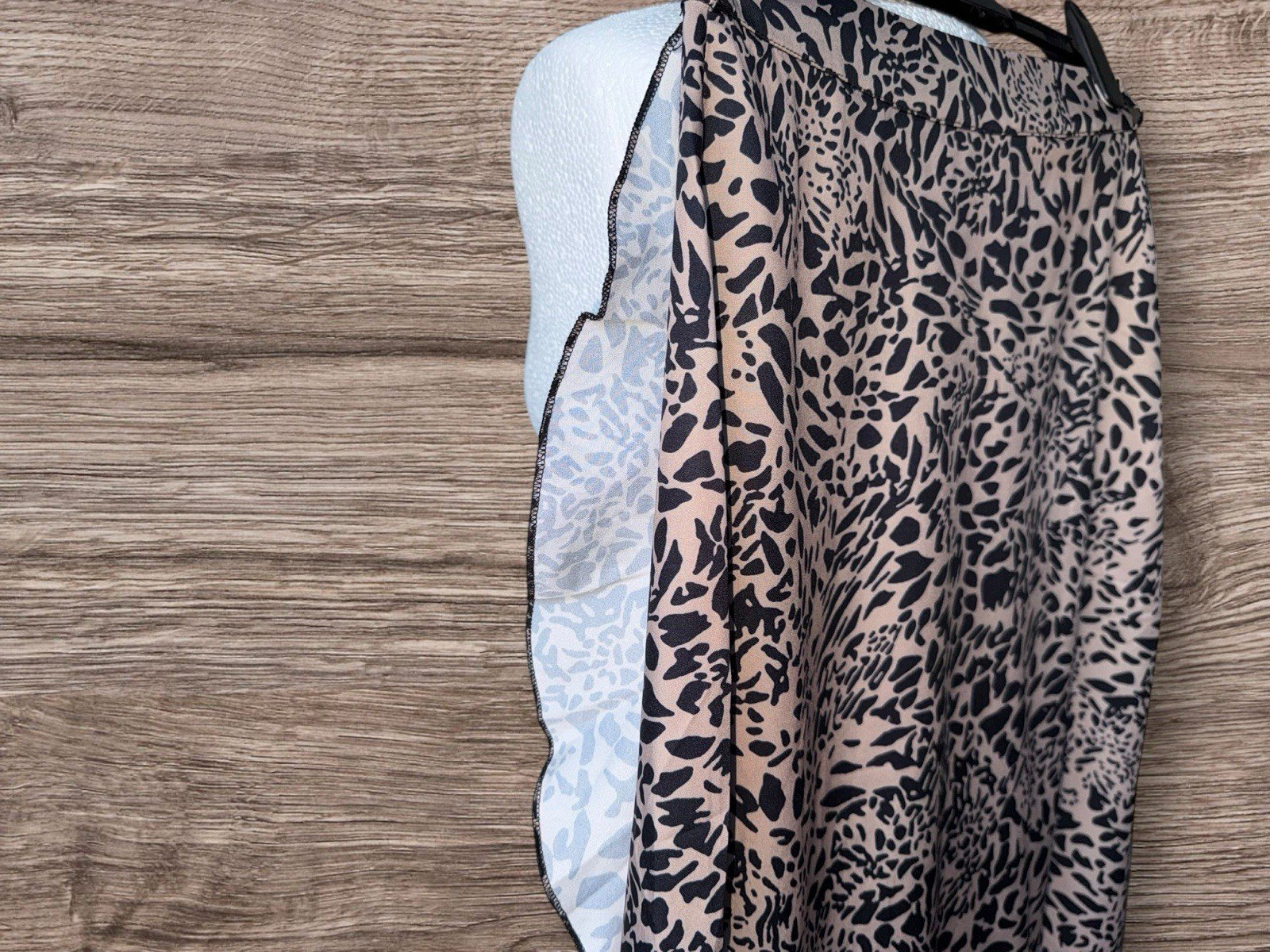 The skirt does have a waistbandWaist 27in. Length 32.5inElevate your wardrobe with this trendy leopard print skirt from Shein. The wrap effect and frill edge design add a touch of sophistication to your outfit, while the black beige colour palette makes it versatile enough to pair with any top. This skirt features a zip closure and is a size 8, with a length of 32.5 inches.Ideal for a day out with friends or a special occasion, this skirt is perfect for women who want to make a statement with their fashion. The leopard print theme adds a fun and bold touch to your look, while the wrap style gives a flattering and comfortable fit. Upgrade your style with this chic and fashionable skirt today!Please make sure you have checked the measurements and read the description before purchasing 😉