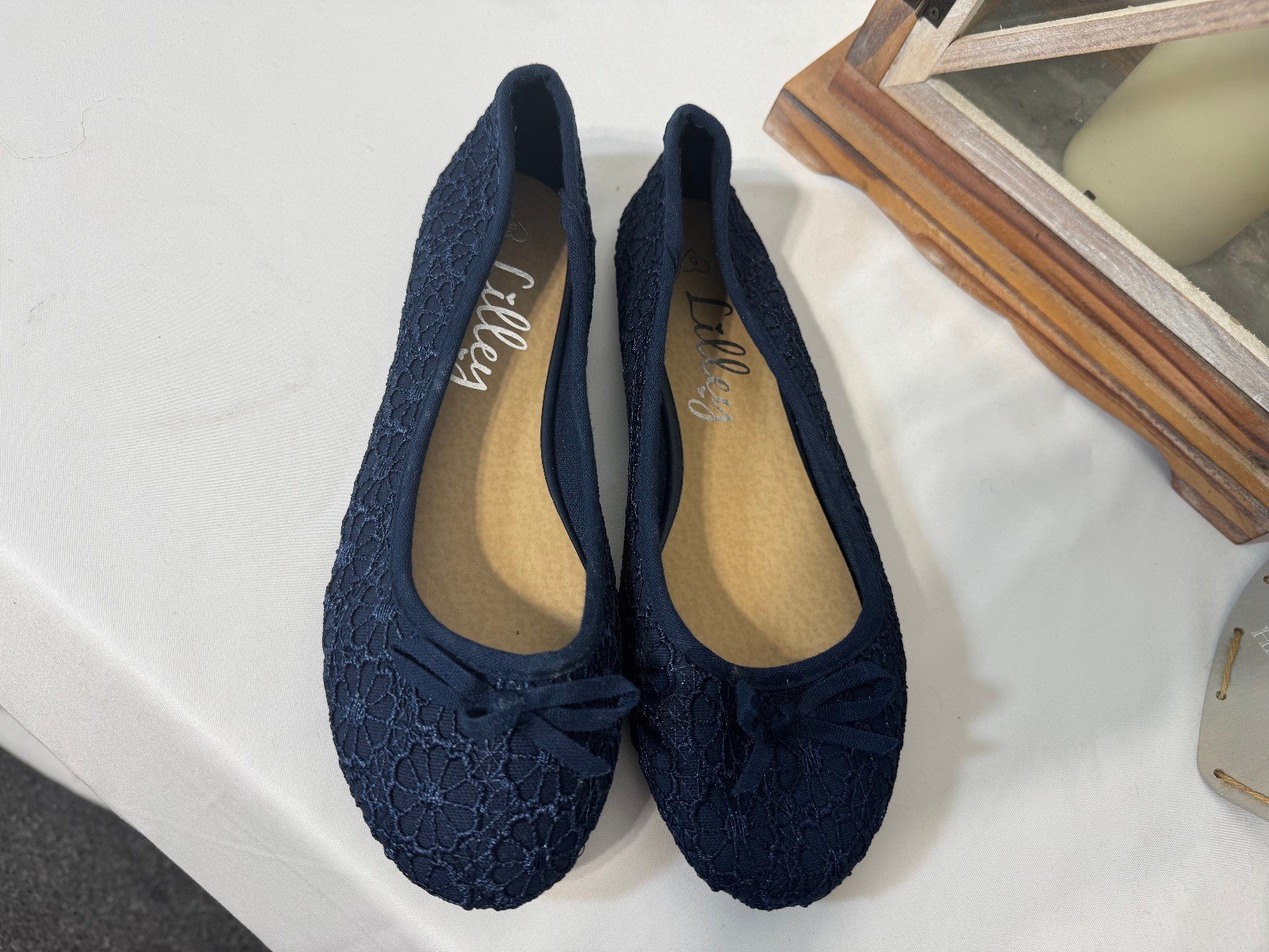 The Lilley Navy Floral Ballet Pumps in size 5 are a stylish and comfortable choice for casual occasions. Featuring a round toe, slip-on closure, and standard shoe width, these flat shoes are perfect for everyday wear. The blue floral pattern adds a touch of femininity to the classic ballet style, making them a versatile addition to any woman’s wardrobe. Made from synthetic upper material and rubber outsole, these shoes combine durability and fashion effortlessly.