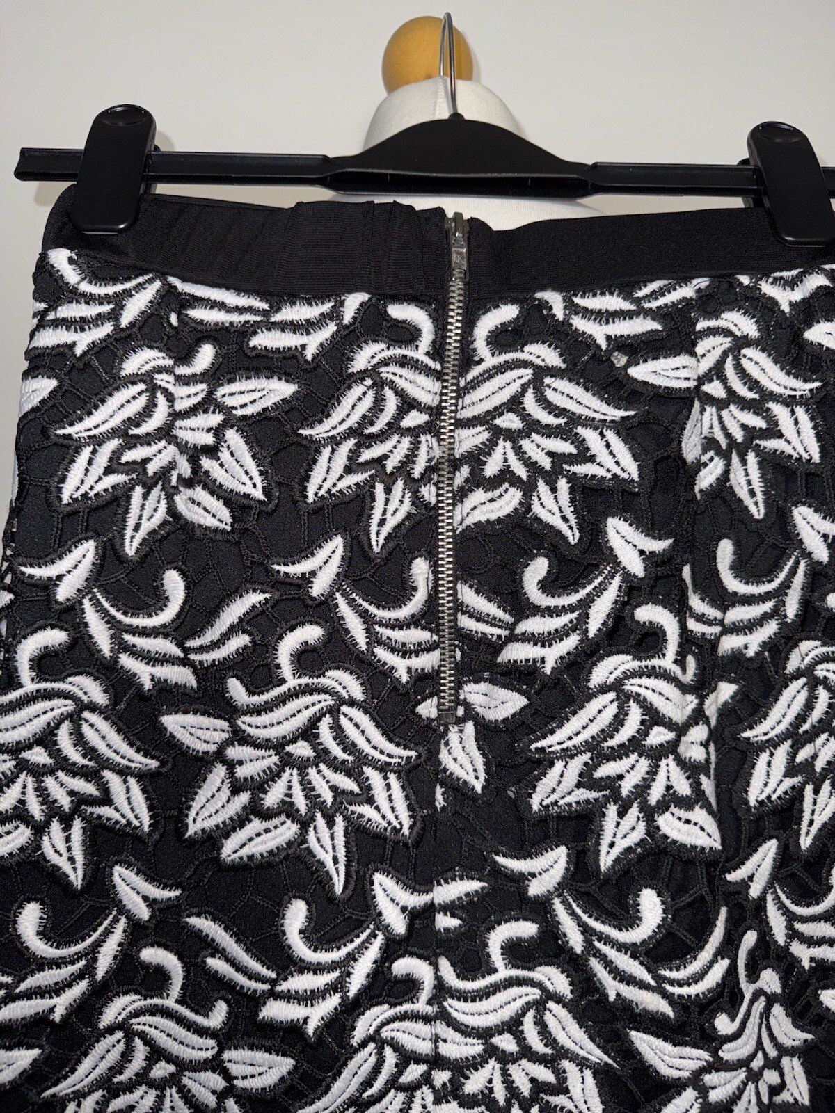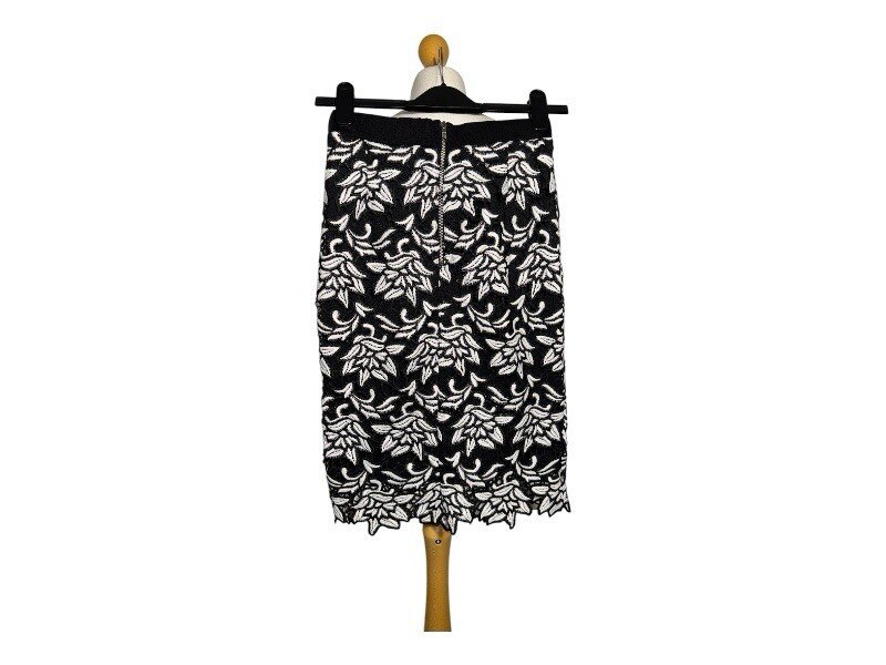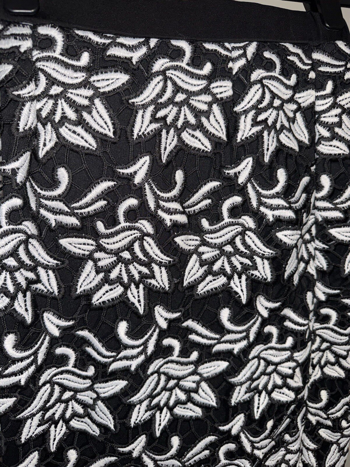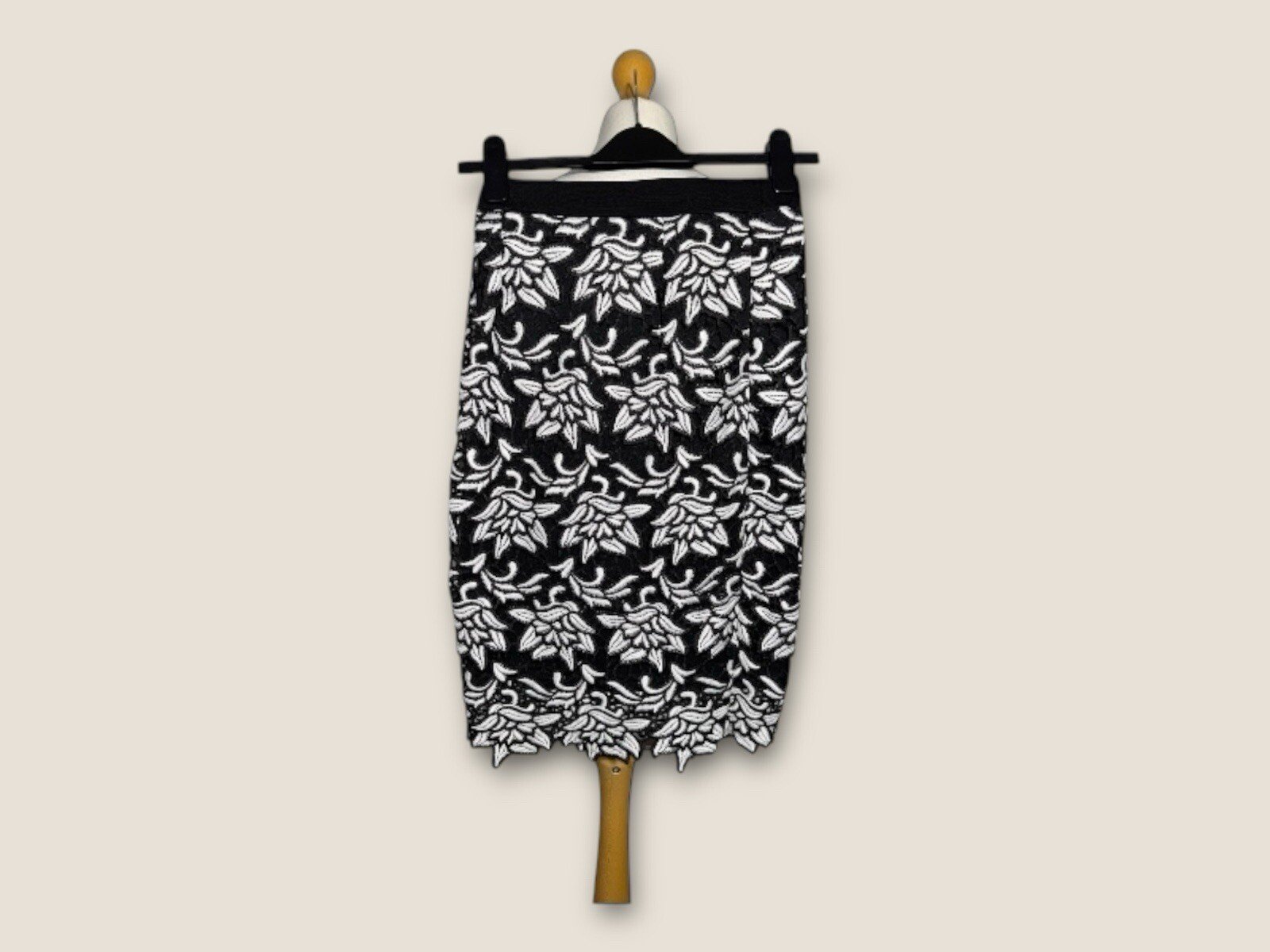 Excellent condition. Embossed shell. Lined. Elastic waistband with back zip. Pencil skirt. Waist 25 in. Not stretched. Length 25in