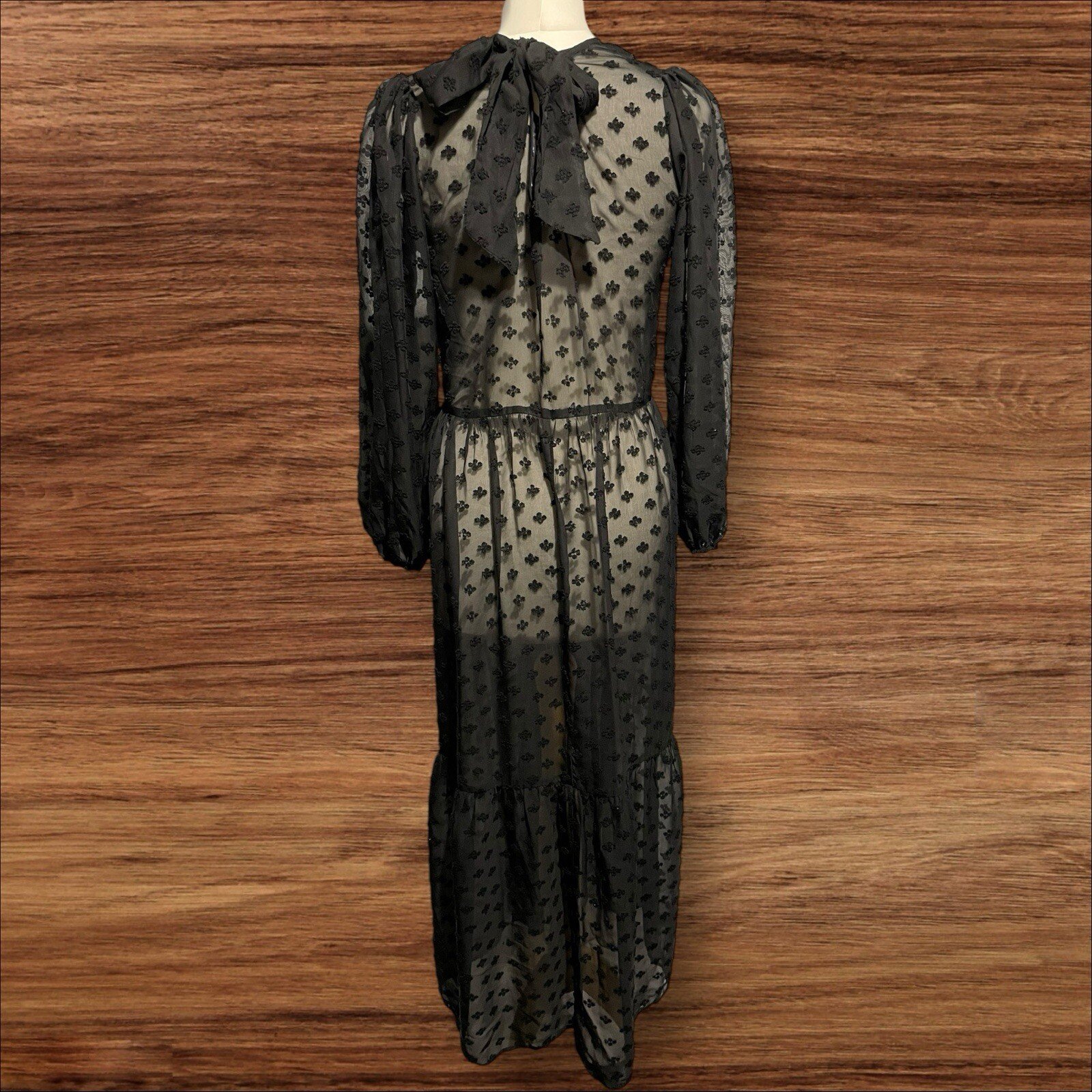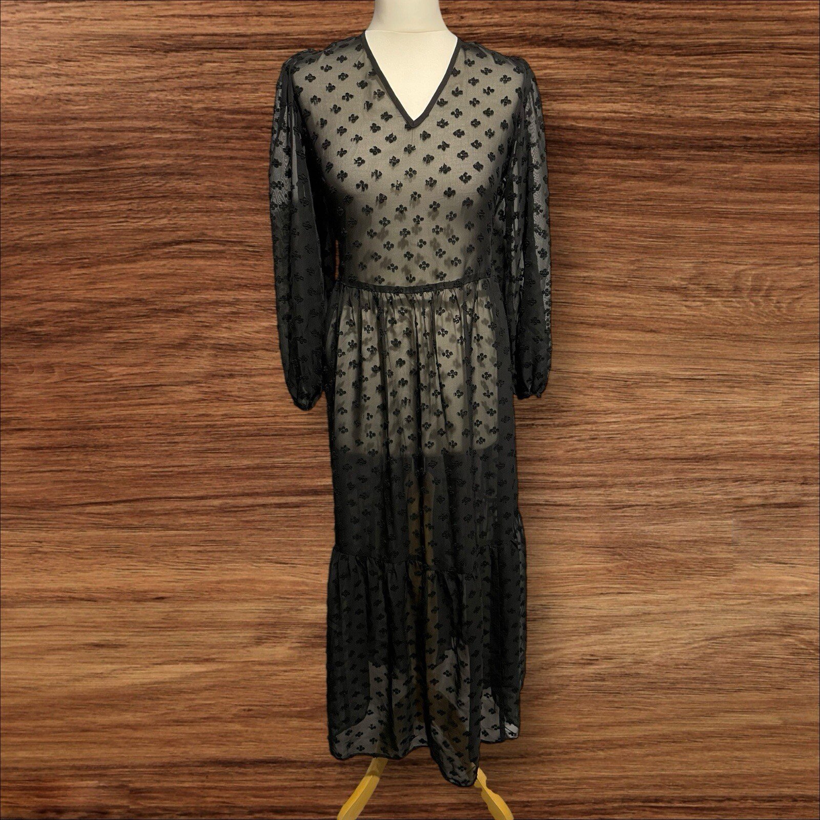 Long Black Beach Dress Frill Hem Vneck With Tie 3 Quarter Balloon Sleeve S10