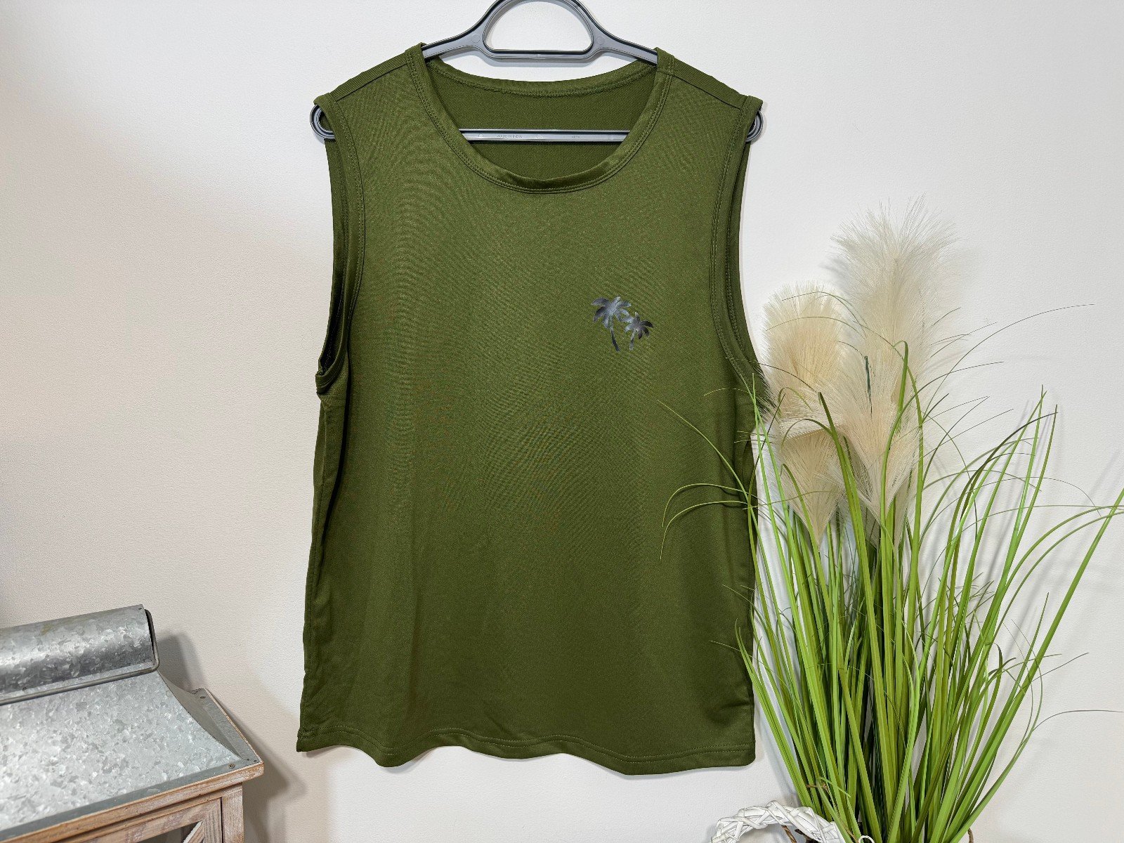 PIT-PIT 22″. LENGTH 27″The Manfinity Khaki graphic Vest in size S is a stylish and comfortable sleeveless t-shirt for men. Featuring a regular fit, round neckline, and a graphic print design in khaki colour, this vest is perfect for casual wear. The vest from Manfinity is a versatile addition to any man’s wardrobe, suitable for various occasions and easy to style with different outfits.R11
