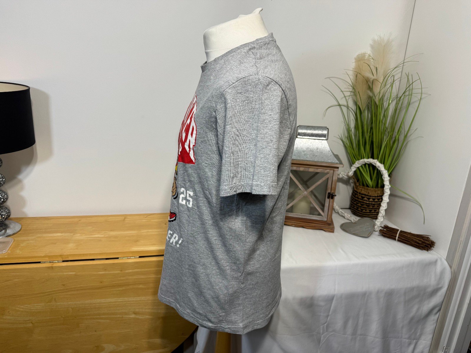 PIT-PIT 21IN. LENGTH 27INThe Marl Grey Christmas XD 25 Graphic T-shirt in size M by George is a festive addition to any man’s wardrobe. Made from a blend of viscose and cotton, this regular fit t-shirt features a round neck and short sleeves, making it comfortable to wear during the holiday season. The Christmas theme adds a touch of cheer, with the grey colour giving it a stylish and versatile look that can be dressed up or down for various occasions. Perfect for spreading some Christmas joy in style.ref6
