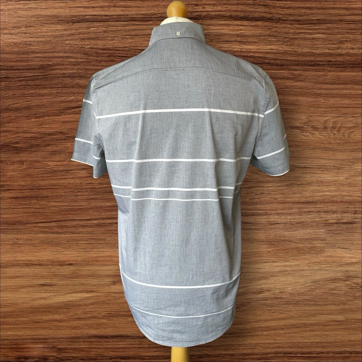 Elevate your casual wear with this stylish grey stripe shirt by NEXT. The regular fit shirt is perfect for men who love comfort and style. Made of a soft blend of cotton and lycra, the shirt is designed to keep you comfortable throughout the day. The button-up shirt features short sleeves, a button-down collar, and a collared neckline that gives it a classic look. The shirt comes in size M and has a grey colour that makes it easy to pair with any outfit. Ideal for any casual occasion, this shirt is a must-have in any men's wardrobe. Pit to pit 22in Excellent condition. From a smoke and pet free home