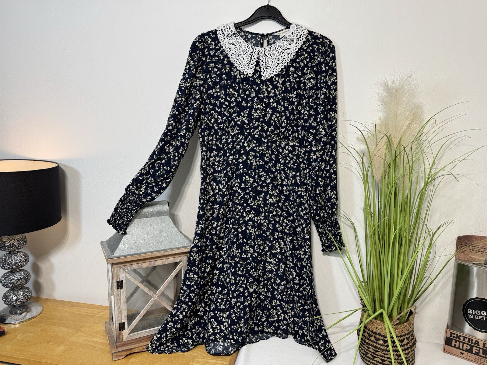 The Monsoon Navy Ditsy Floral Dress is a stylish and elegant choice for a party or cocktail event. With a flattering fit and flare style, long balloon sleeves, and a beautiful lace fabric, this knee-length dress exudes a feminine and summery vibe. The elasticated cuff adds a touch of detail, while the zip closure ensures a comfortable fit. Easy to care for with its machine washable material, this dress in size 8 is a perfect addition to any woman’s wardrobe, especially for those who love a blue floral print.