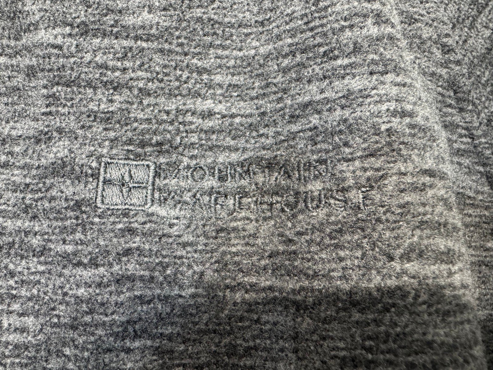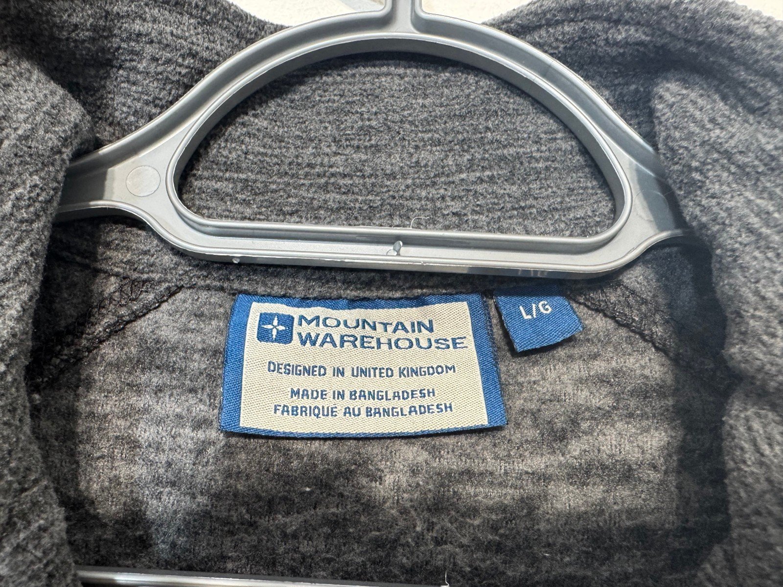 PIT-PIT 23IN.  LENGTH 27.5INThe Mountain Warehouse 1/4 Zip High Neck fleece in size L is a stylish and practical choice for the autumn and winter seasons. Made from cozy polyester fleece fabric, this pullover jumper features a high neck with a 1/4 zip accent for added warmth and style. The grey colour and Mountain Warehouse logo add a touch of outdoor charm, making it perfect for casual occasions. With its regular fit and machine washable care instructions, this fleece is a versatile and comfortable addition to any wardrobe.R10