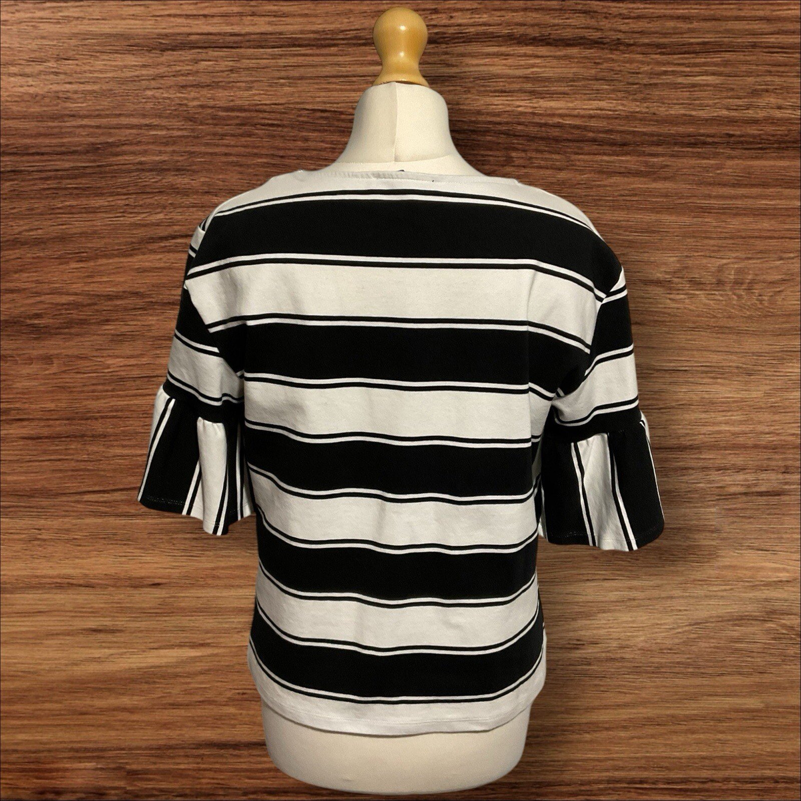 M&S Black & White Strip Top Short Flare Sleeves Relaxed Fit Size 12