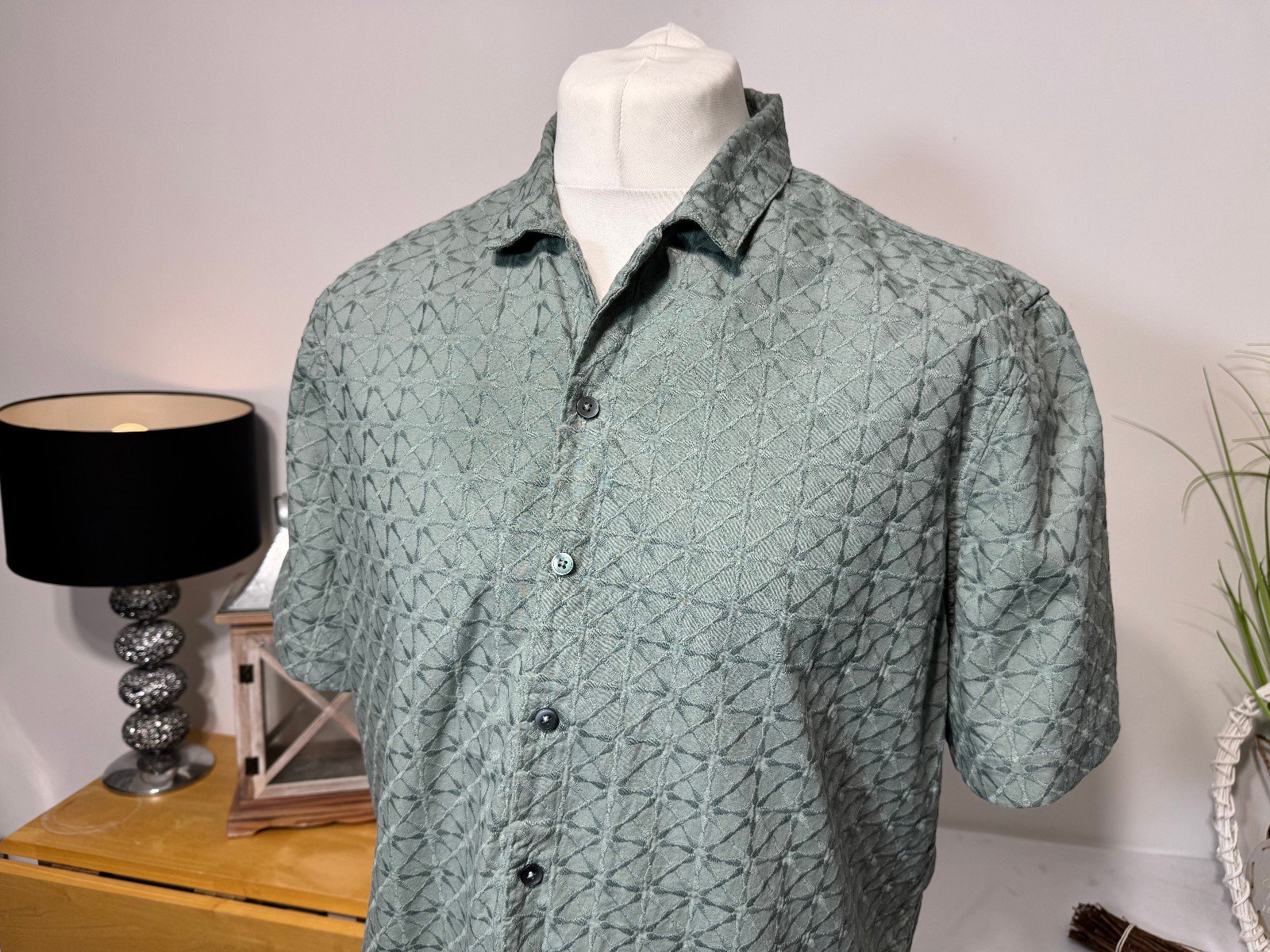 PIT-PIT 25IN. LENGTH 29INThis M&S Khaki Thick Textured Open Neck Shirt in size XL is a stylish and versatile addition to any man’s wardrobe. Made by Marks & Spencer, a trusted brand in quality clothing, this shirt features a regular fit with an open collar neckline for a modern and relaxed look. The khaki colour adds a touch of sophistication to any outfit, making it suitable for both casual and more formal occasions. The thick texture gives it a premium feel, making it a timeless and classic piece for any man’s closet.R9