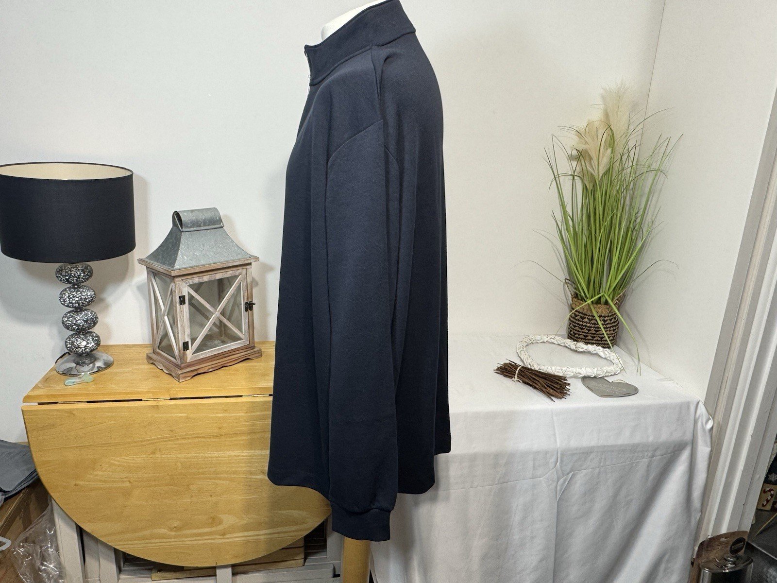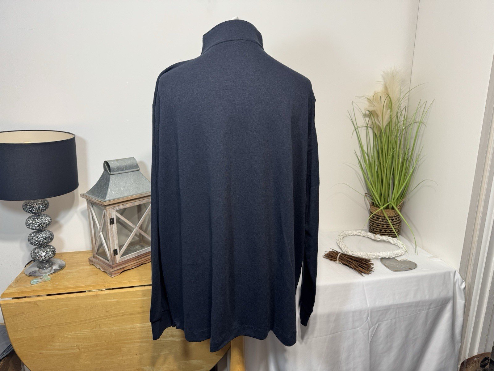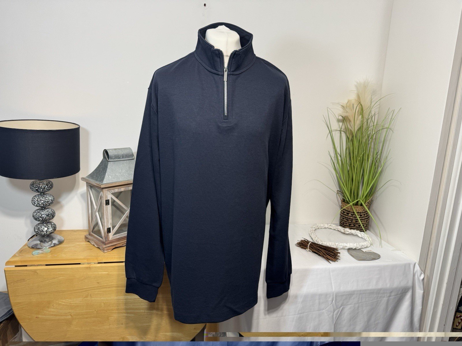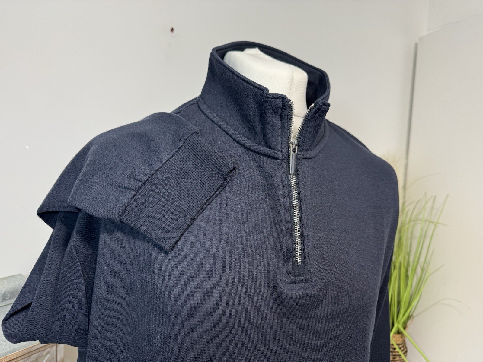 Navy 1/4 Zip High Neck Jersey Knit Top Size 3 XL