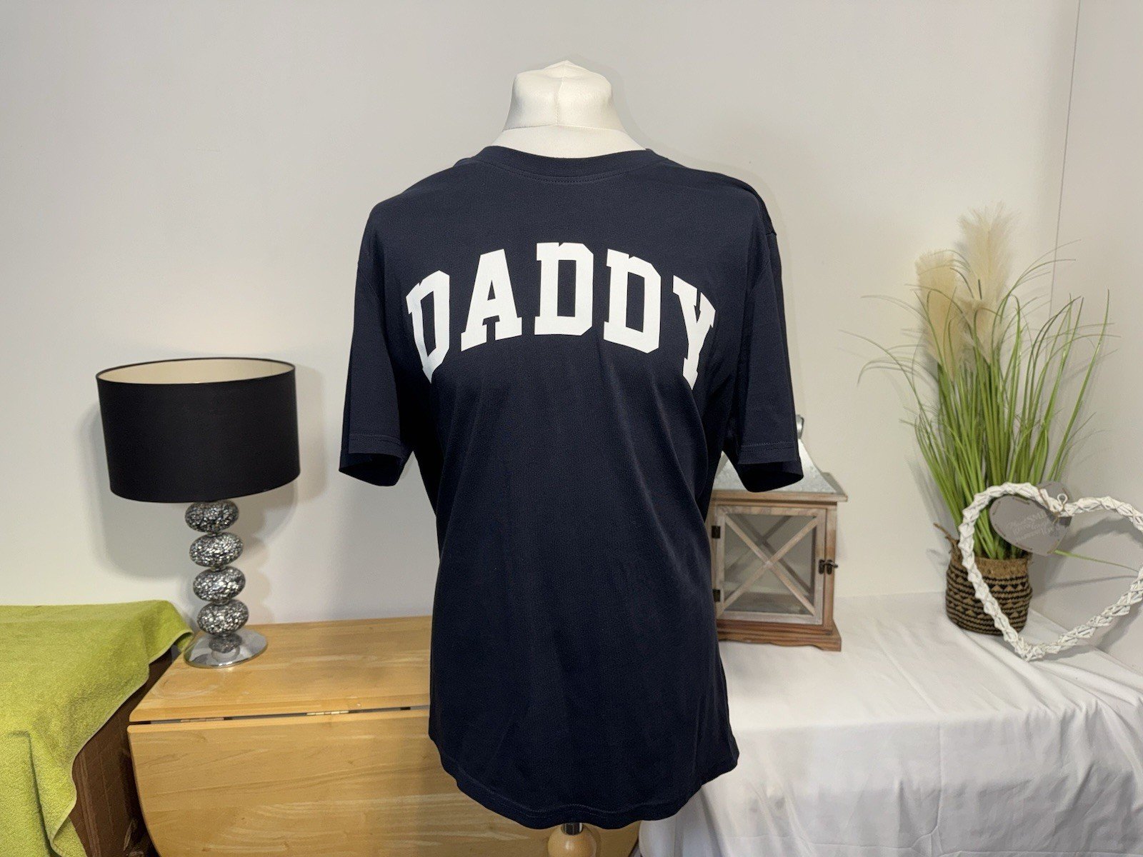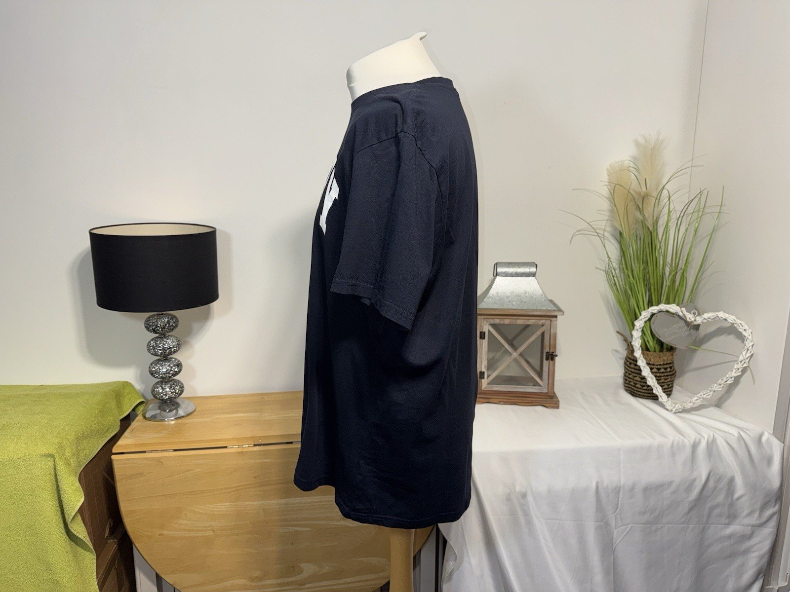 Pit-pit 25in. Length 30inThis Navy Blue Graphic Cotton Tee in size XL is a stylish and comfortable T-Shirt from the brand George. Made from cotton material, this regular fit shirt features a round neck and short sleeves, making it the perfect choice for casual wear. The classic navy blue colour adds a versatile touch to any outfit, making it a must-have staple in any man's wardrobe.