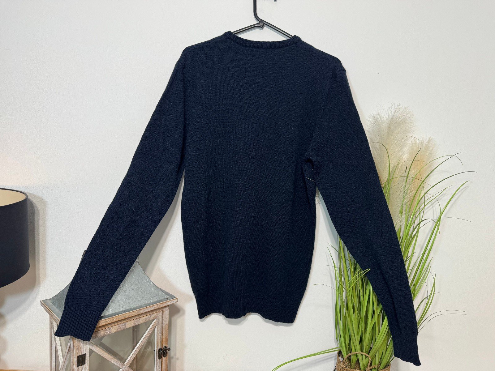PIT-PIT 20IN.  LENGTH 29INThis Navy Lambswool V-Neck Jumper in size M is a stylish and cosy addition to any man’s wardrobe. The tight-knit fabric and long sleeves make it perfect for the winter season, while the V-neck adds a classic touch to the pullover style. Crafted from high-quality lambswool, this jumper from F&F offers a regular fit for ultimate comfort. The rich blue colour is versatile and easy to pair with a variety of outfits, making it a must-have piece for any stylish man.R10