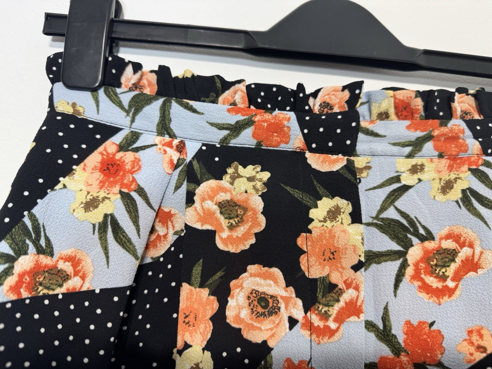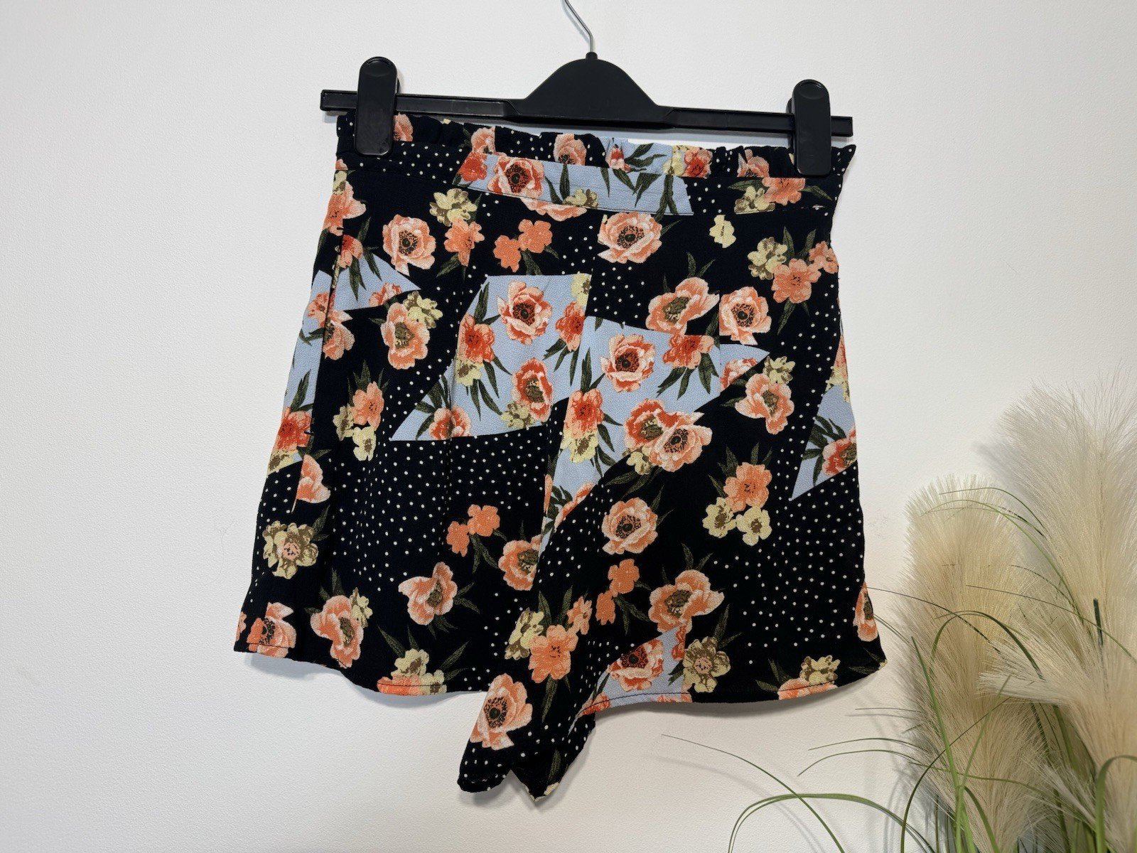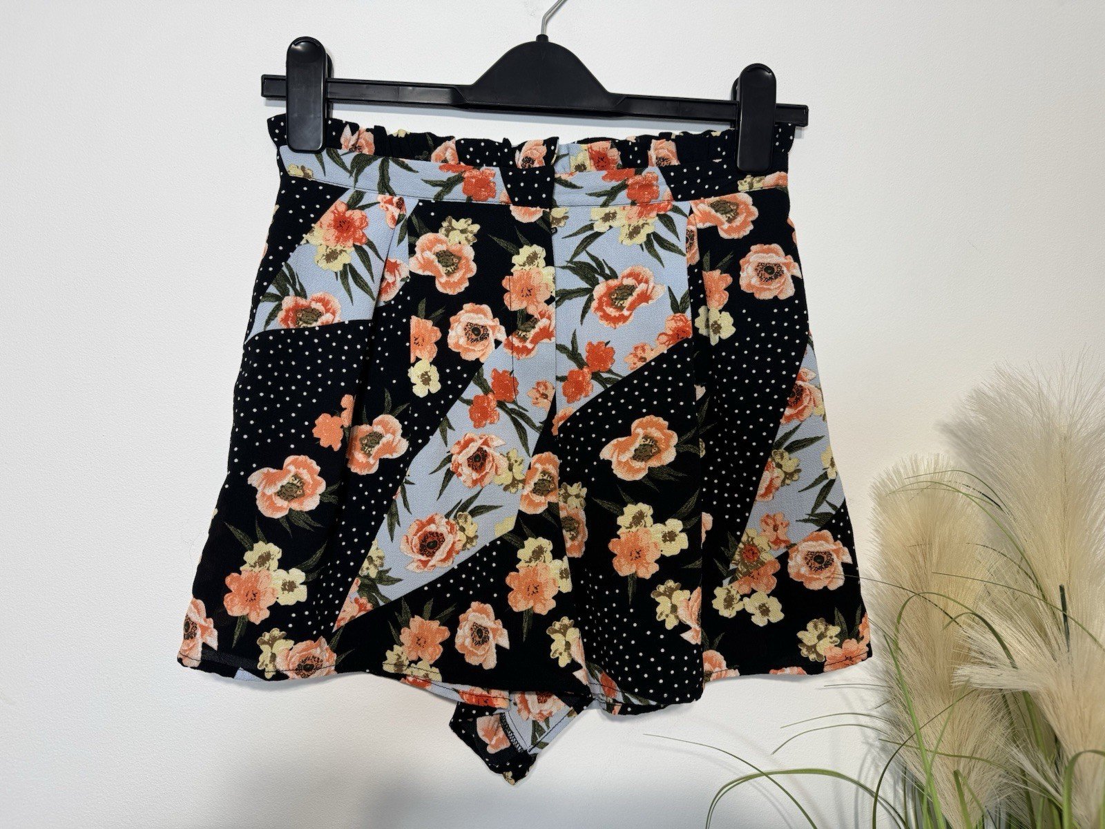 These New Look black floral design high-waisted shorts in size S are perfect for the summer season. Made from polyester, they feature a stylish zip closure and a regular fit. The hot pants style adds a trendy touch, while the machine washable material makes them easy to care for. Pair them with a simple top for a casual occasion, and enjoy the vibrant floral pattern standing out in contrast to the classic black colour. Perfect for women who want to make a fashion statement with their wardrobe choices.