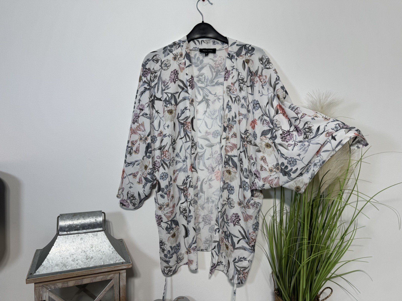 New Look Ecru Floral Waterfall Kimono Size 14