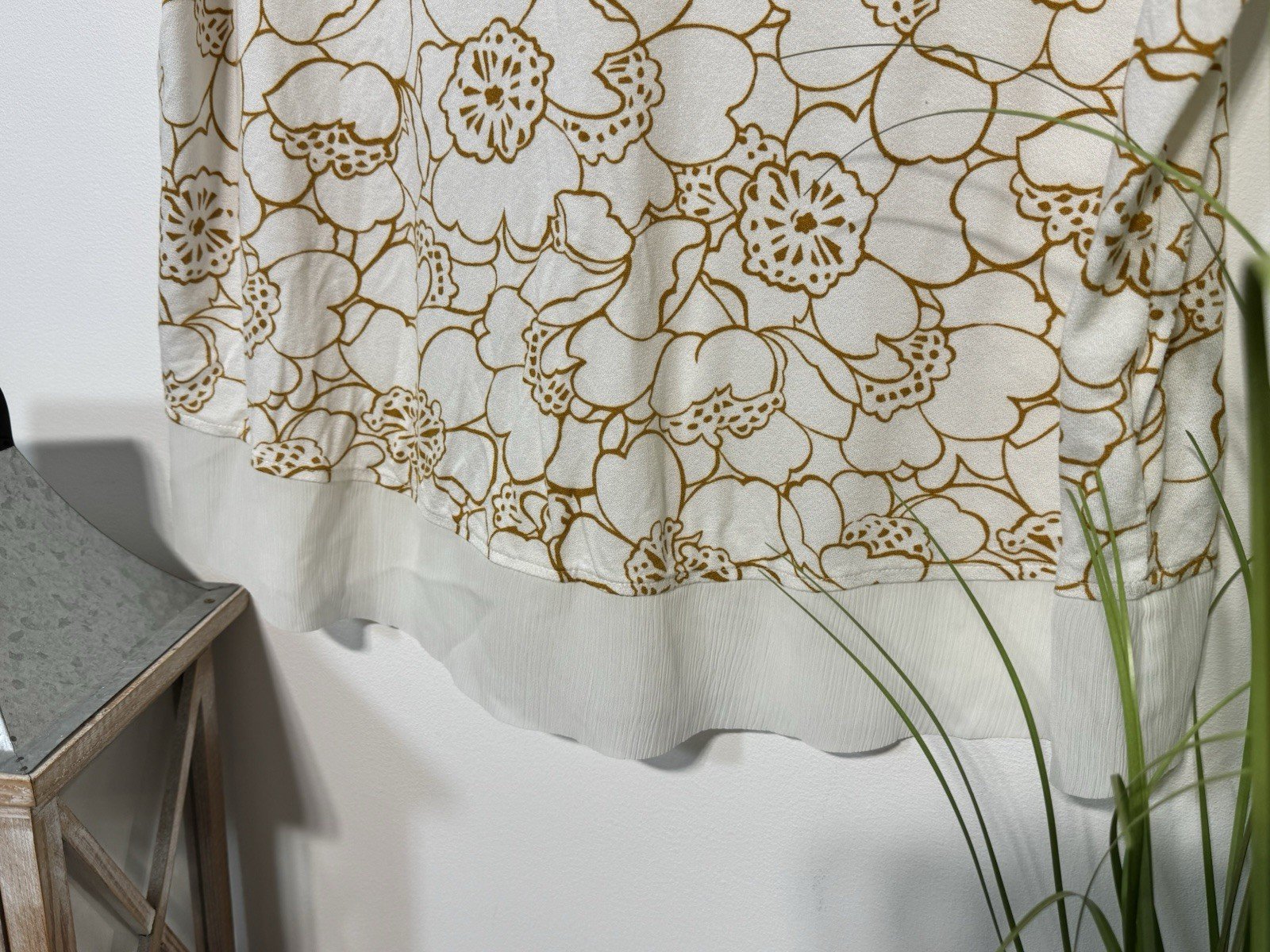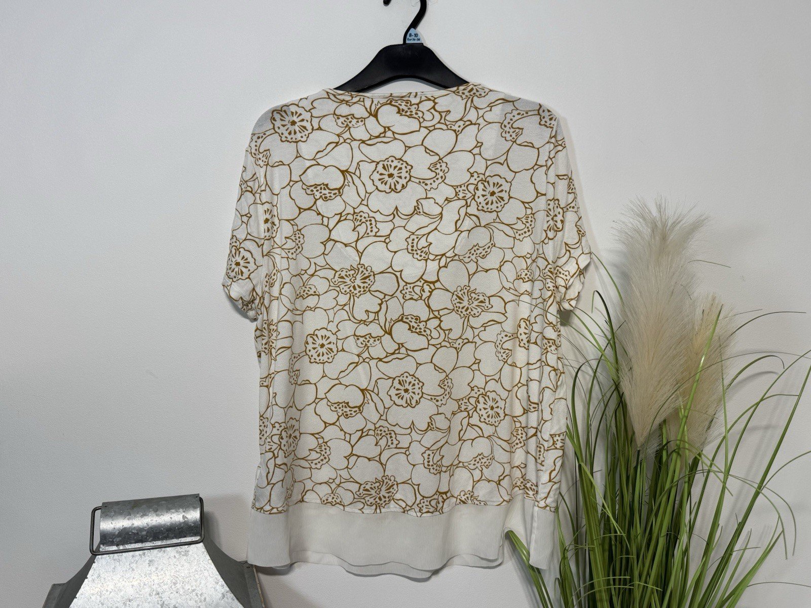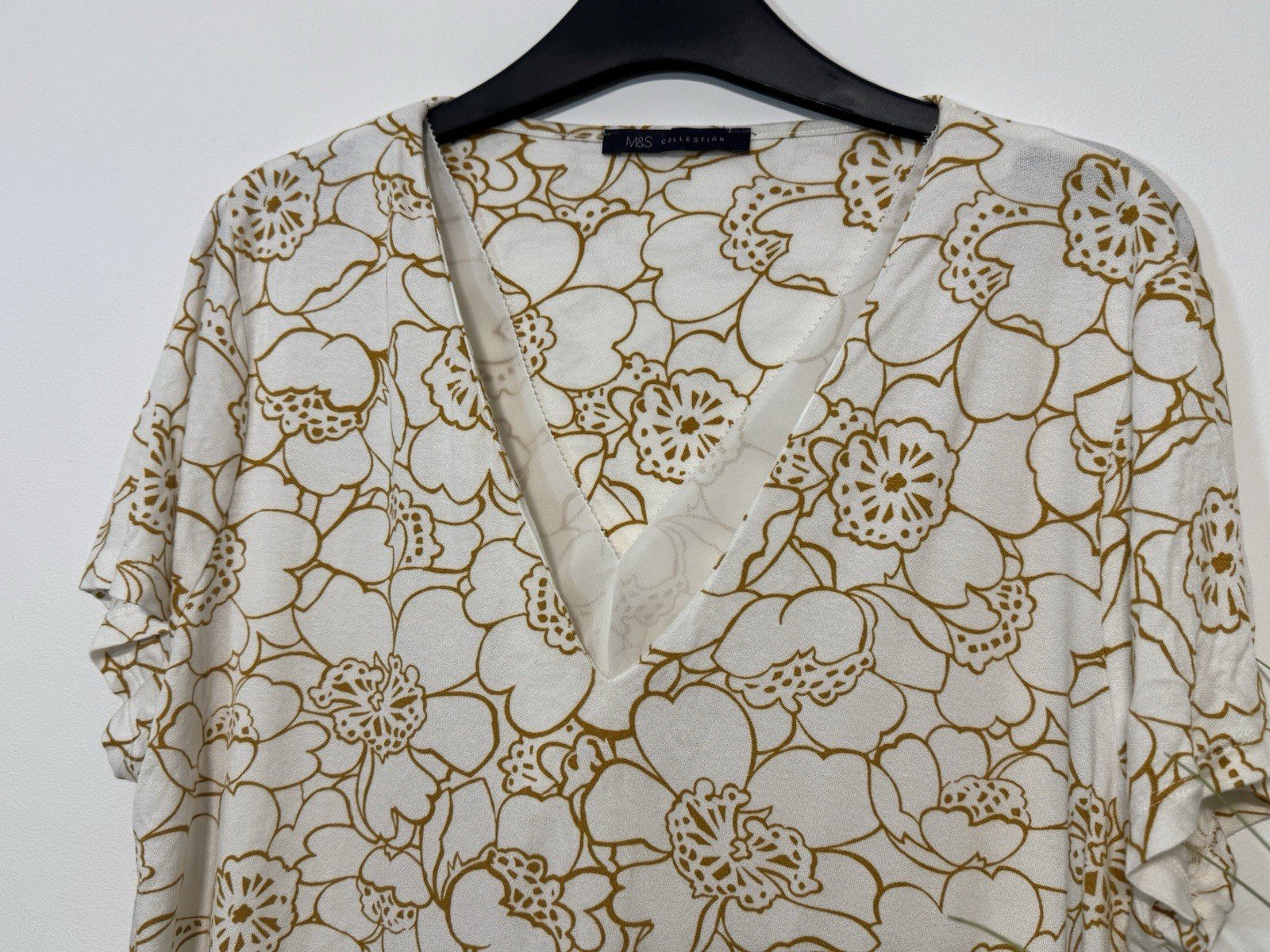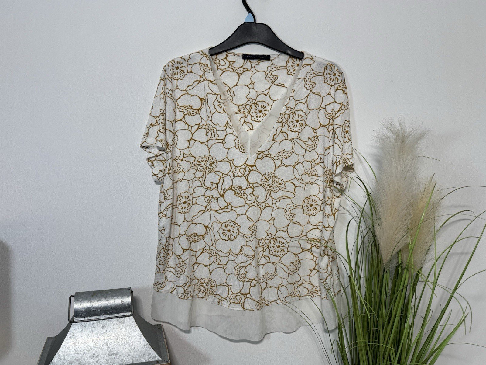 The Next Cream Floral Print V-Neck Blouse in size 18 is a stylish and versatile addition to any woman’s wardrobe. Made from polyester, this short-sleeve blouse features a flattering V-neckline and a lovely cream gold floral pattern, perfect for casual occasions during the summer season. With its regular fit and basic style, this blouse from NEXT is easy to care for with machine washable instructions, making it a practical and fashionable choice for everyday wear.