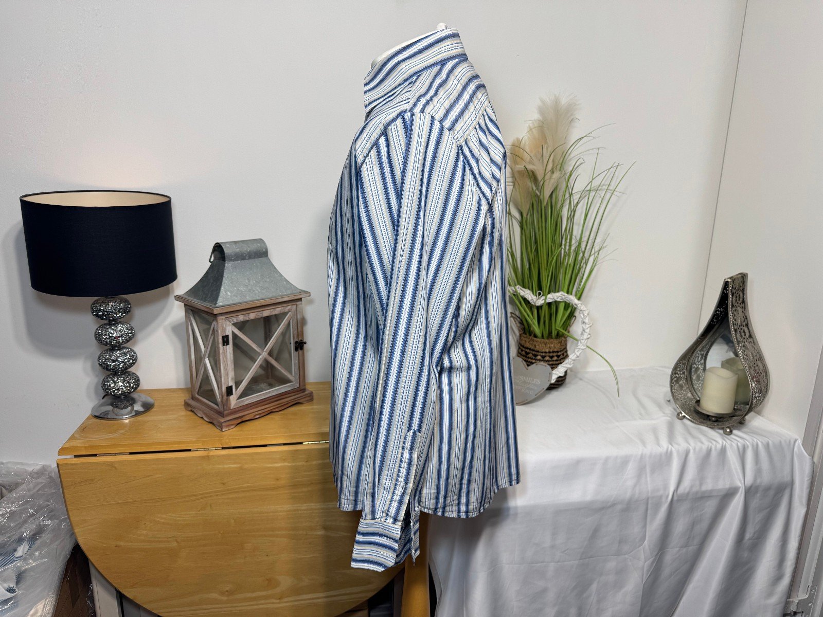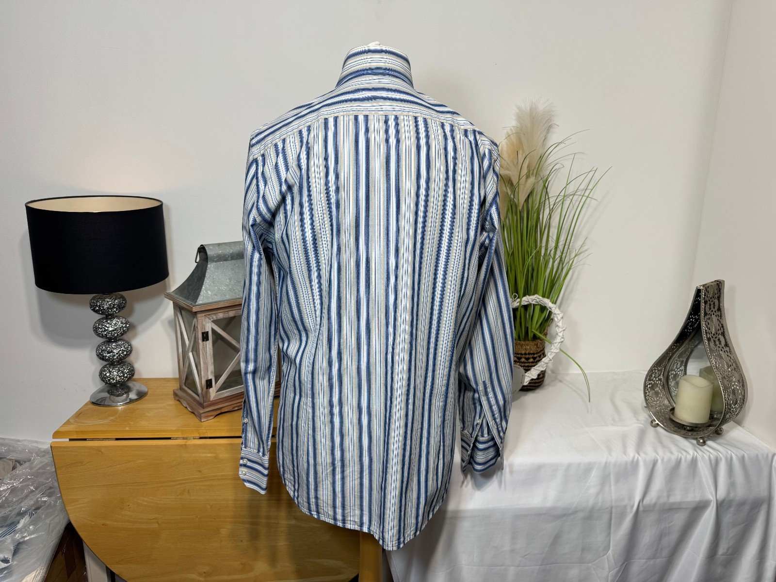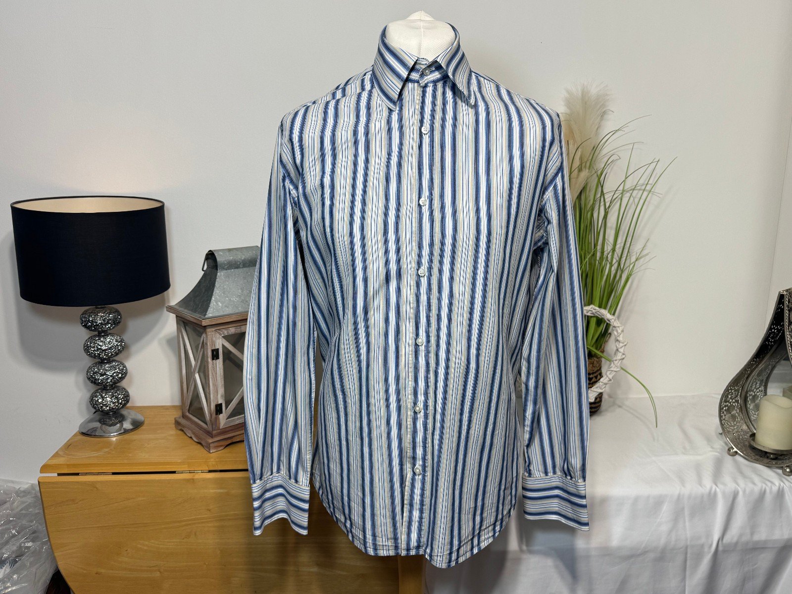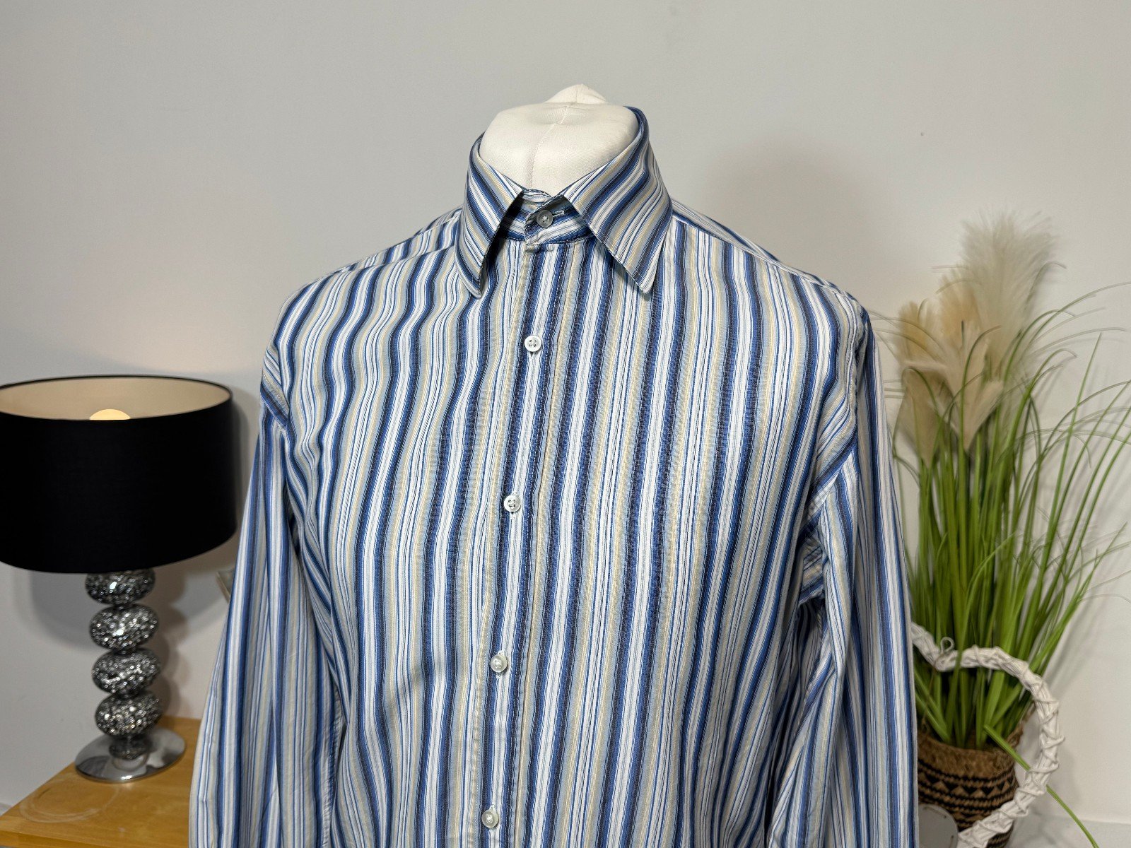 PIT-PIT 23IN. LENGTH 30INThis Next Iron Stripe Long Sleeve Shirt in size L is a classic and versatile addition to any man’s wardrobe. Made from soft cotton fabric with a woven texture, this shirt features a stylish striped pattern in multicoloured hues, perfect for a casual yet put-together look. The collared neckline, button closure, and regular fit make it suitable for a range of occasions, while the machine washable material ensures easy care and maintenance. With its quality brand and timeless design, this shirt is a must-have for any man looking for a reliable and stylish top.R9