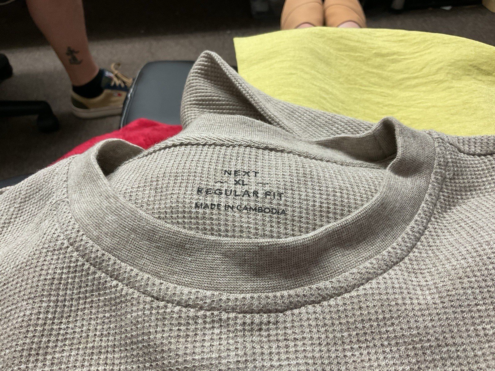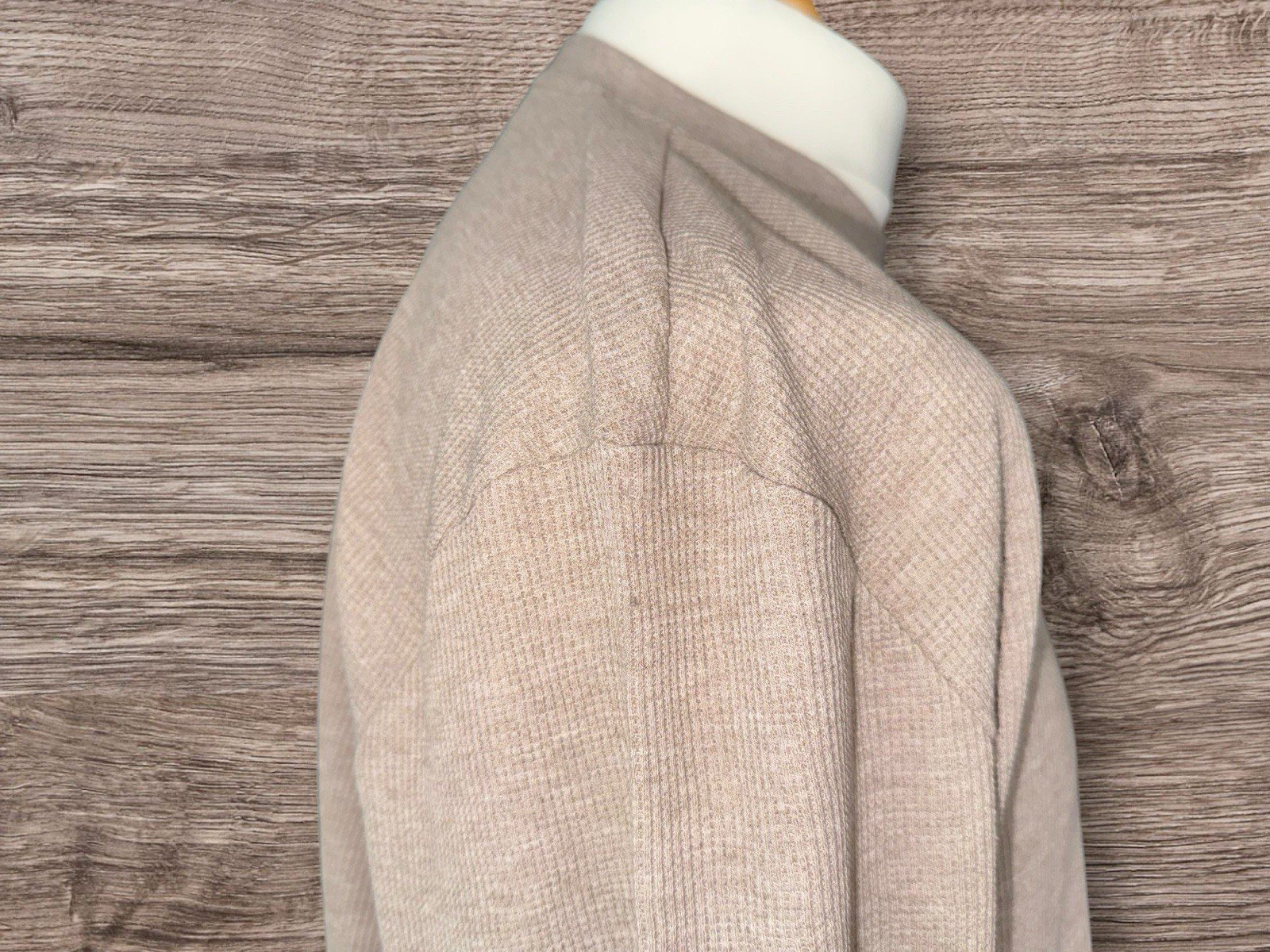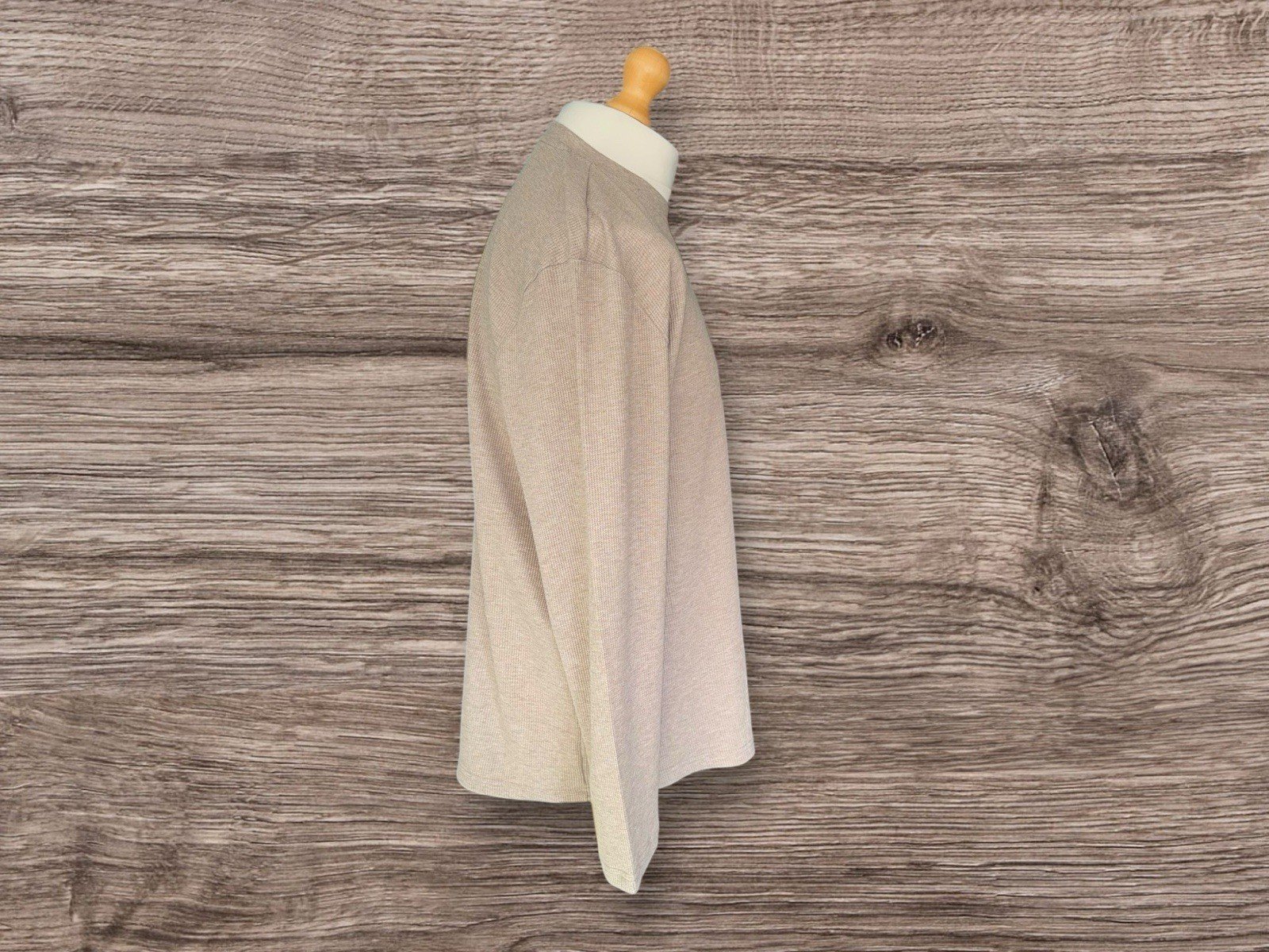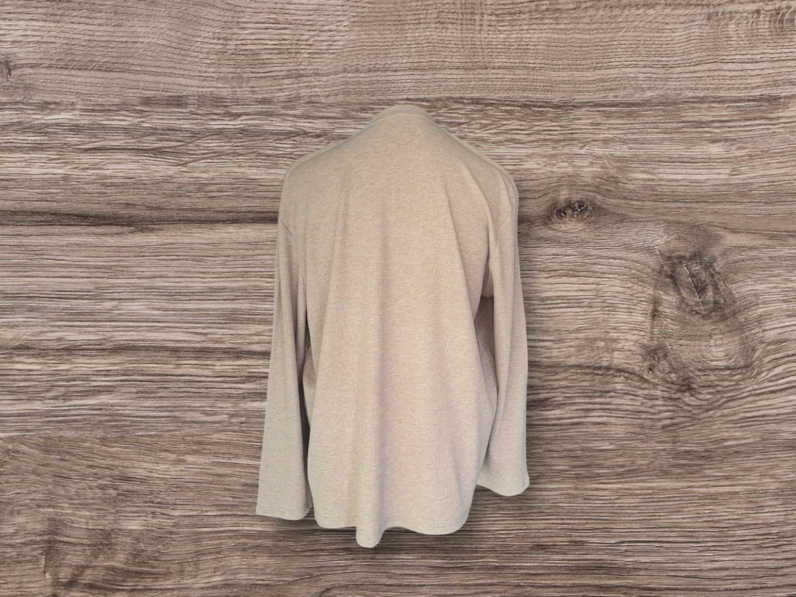 Elevate your wardrobe with the Next taupe waffle style loose fit long sleeve top, a versatile piece tailored for both comfort and style. The relaxed silhouette ensures a laid-back feel, perfect for casual outings or relaxed evenings at home. Crafted with a blend of cotton and polyester, this top promises durability alongside a soft touch.The round neck design adds a touch of classic elegance, complemented by the long sleeves that offer added warmth on cooler days. Suitable for unisex adults, this size XL top is a stylish addition to any outfit, whether paired with jeans for a casual look or dressed up with smart trousers for a more formal ensemble.Pit-pit 27in. Length 30in