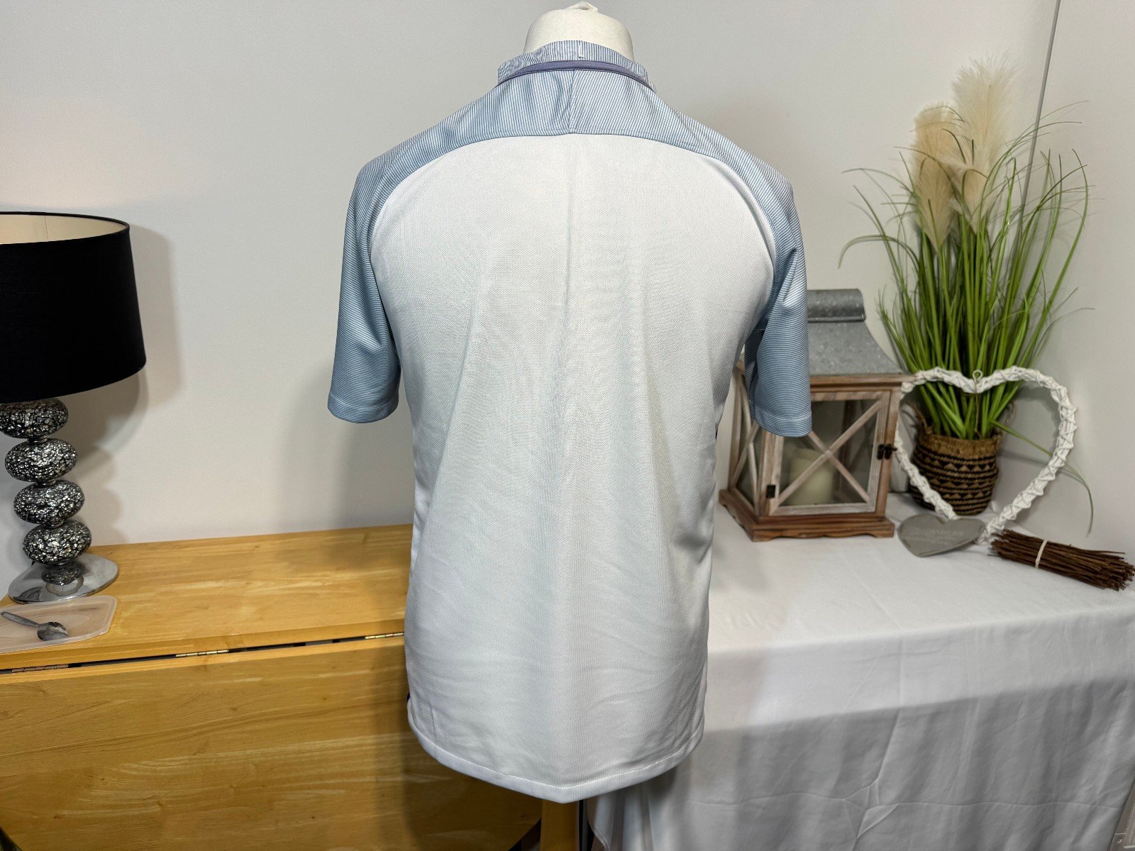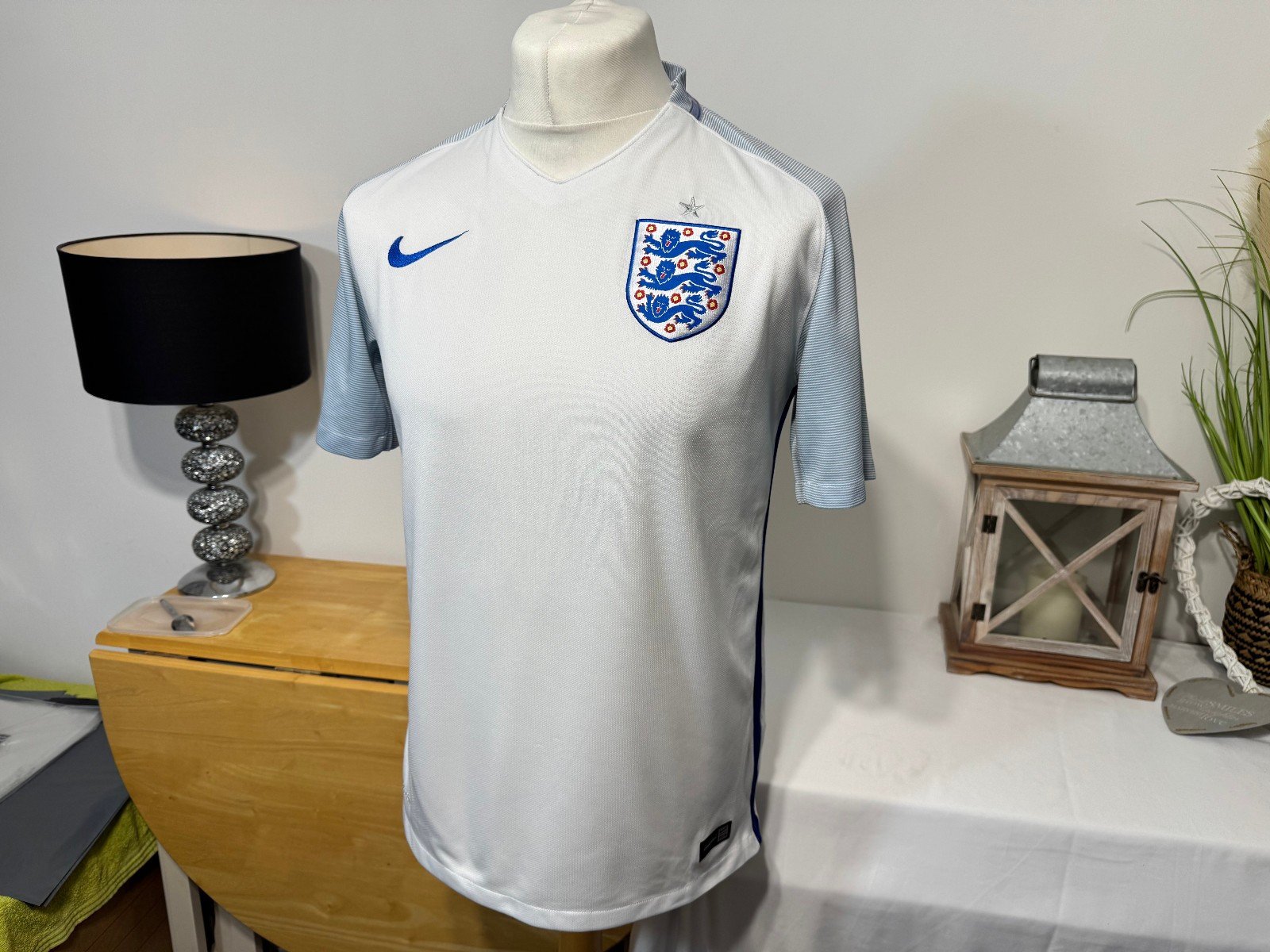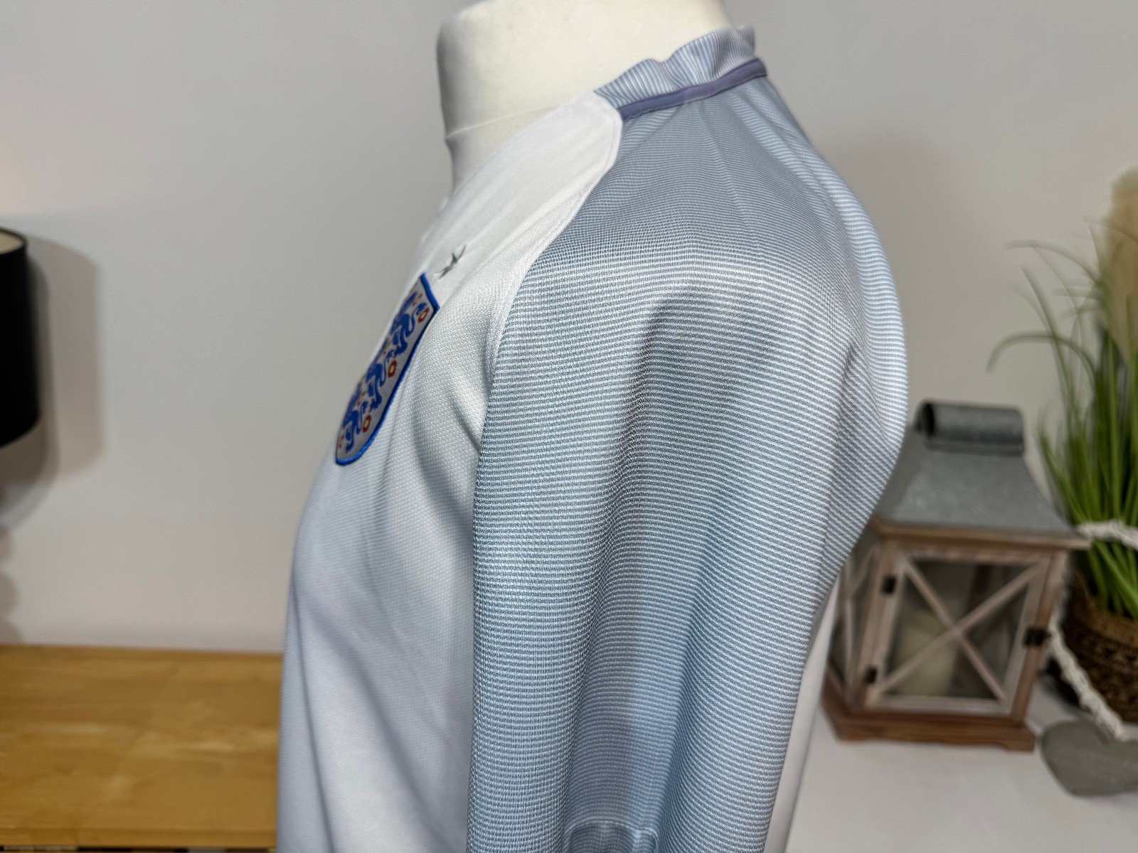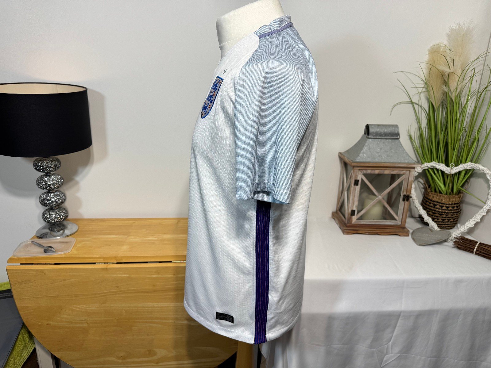 PIT-PIT 21IN LENGTH 29INThe Nike England Graphic Football Shirt in size S/M is a white shirt with short sleeves, designed for adult fans of the England national football team. Made by Nike in England, this home kit is perfect for showing support for the team during matches or casual wear. The shirt features the iconic Nike branding and the England national team’s graphic, making it a must-have item for any avid football fan wanting to display their patriotism on the pitch or in the stands.ref5