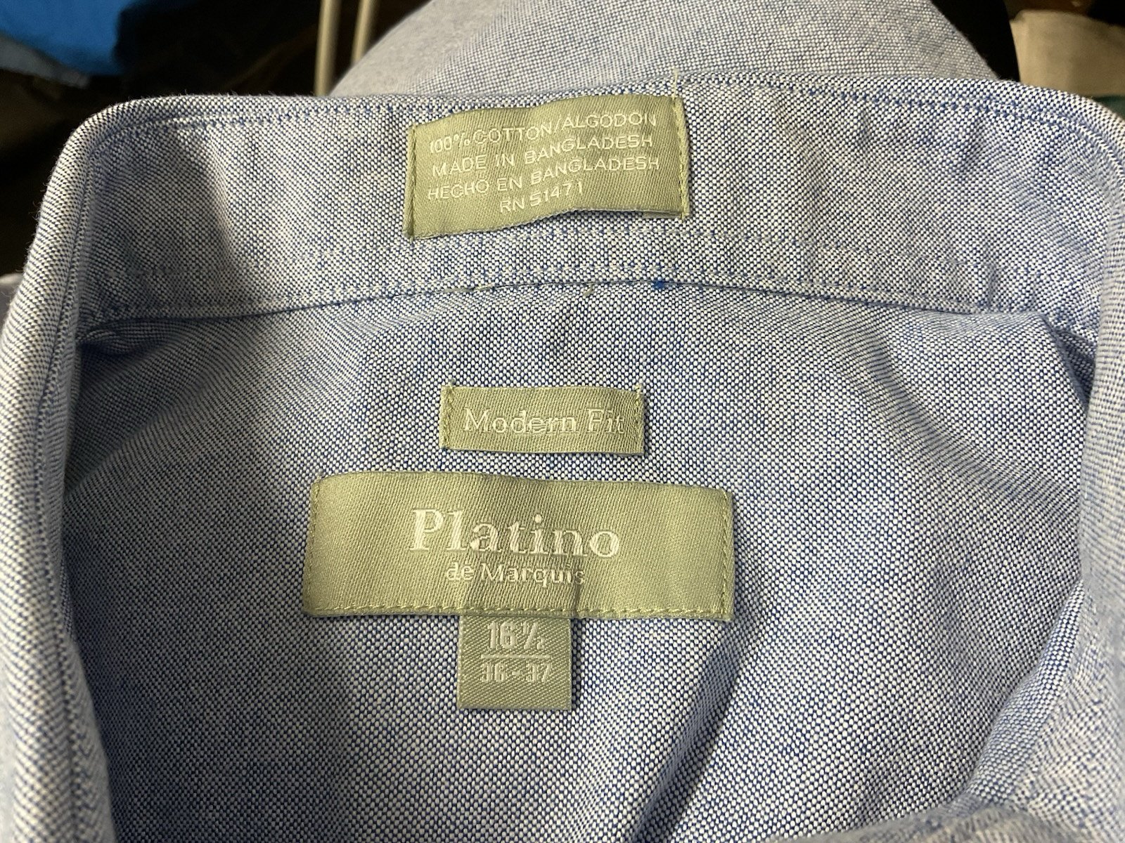 Platino de Marquis 100% Cotton Modern Fit Shirt Pale Blue Textured Neck 16.5