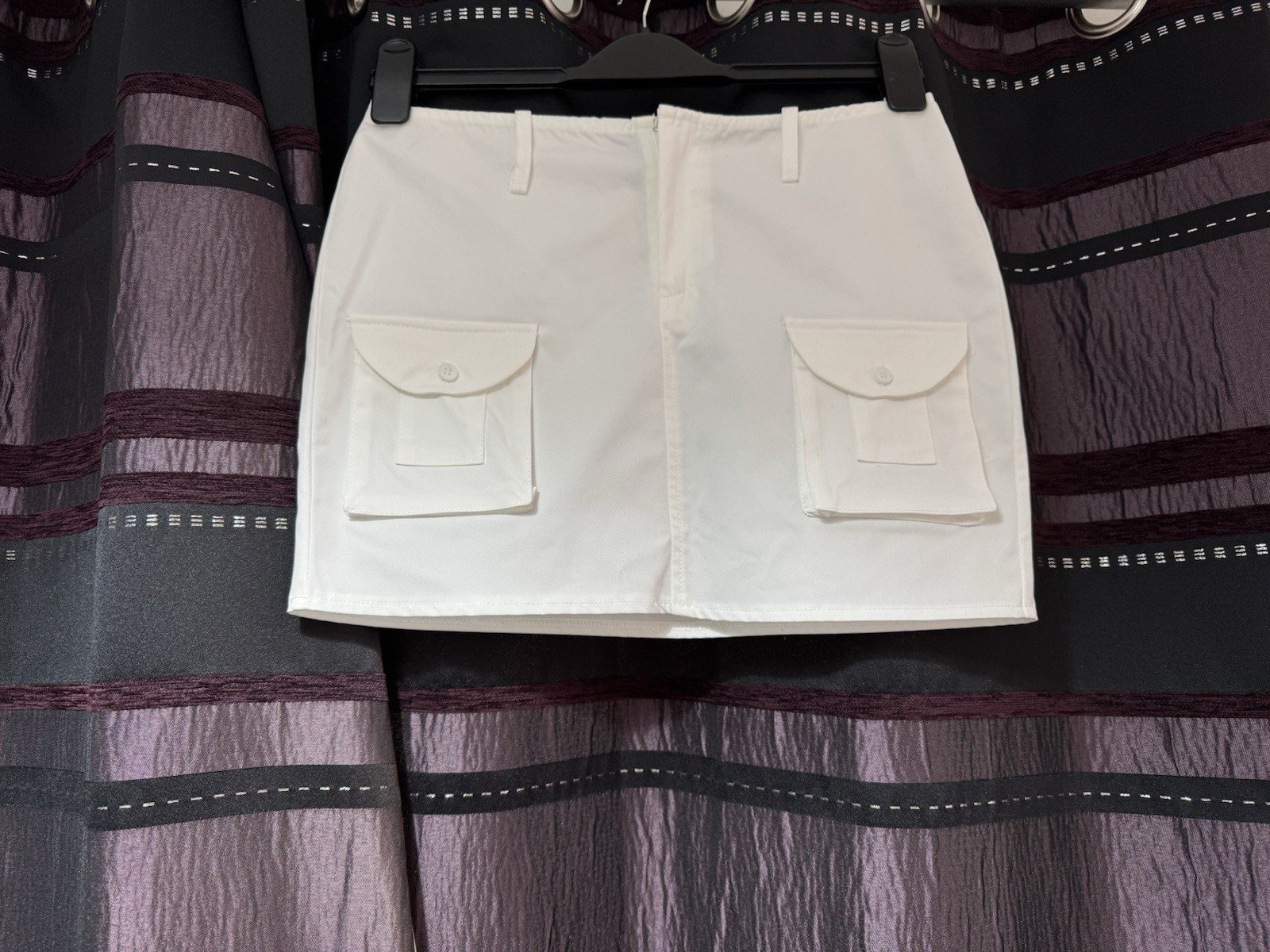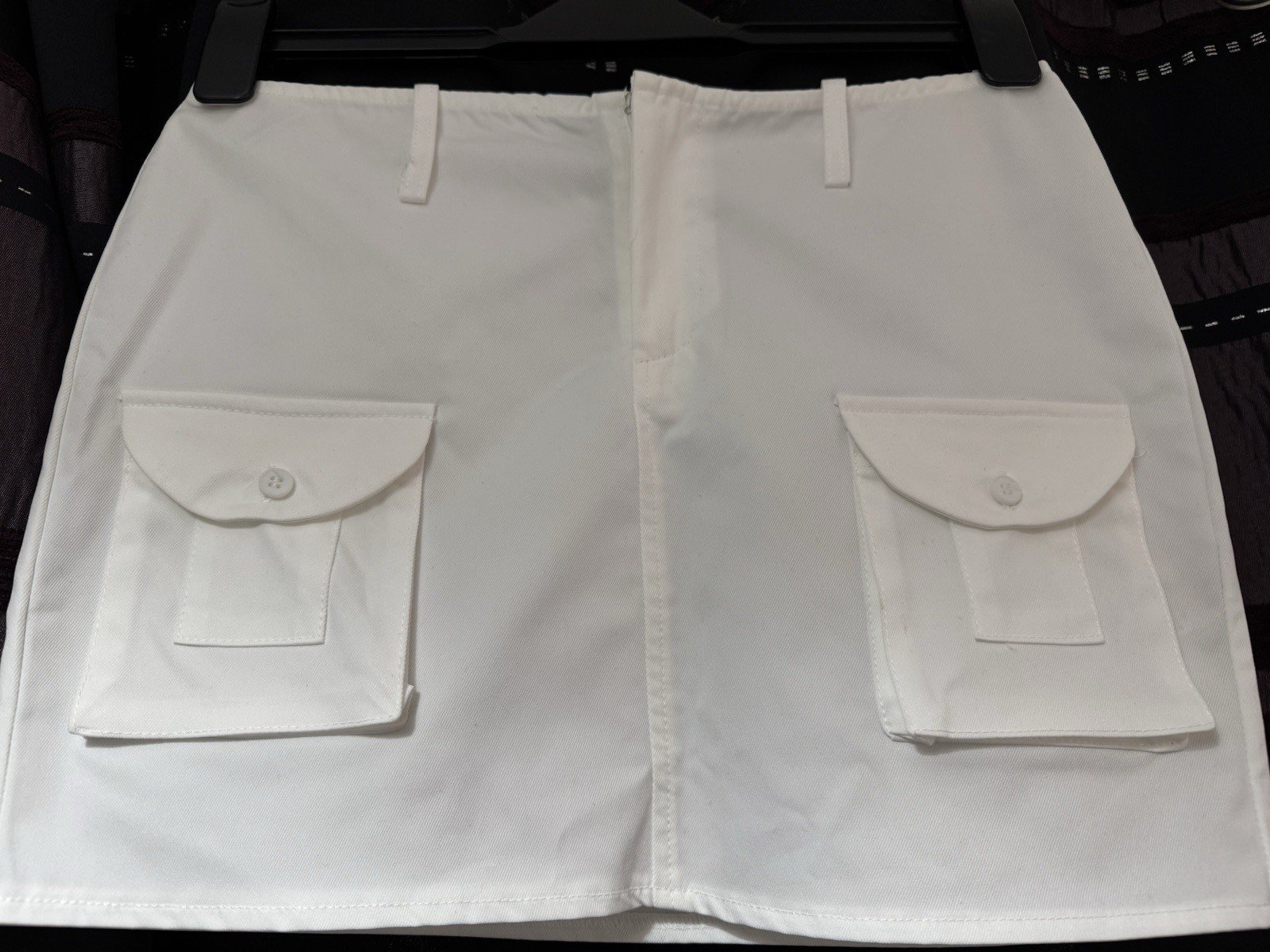 Elevate your casual wardrobe with this chic white cargo style mini skirt from PLT. The skirt features a zip hook and eye closure for a secure fit and is made of durable polyester material that is sure to last you for seasons to come. With a stylish cargo design, this skirt is perfect for adding a touch of edginess to any outfit.This versatile skirt has a 13-inch length and is ideal for women who wear size 6. Whether you're dressing up or down, this PLT skirt is the perfect addition to your wardrobe. Get your hands on this trendy piece today and upgrade your style game!Waist 28in. Length 13in